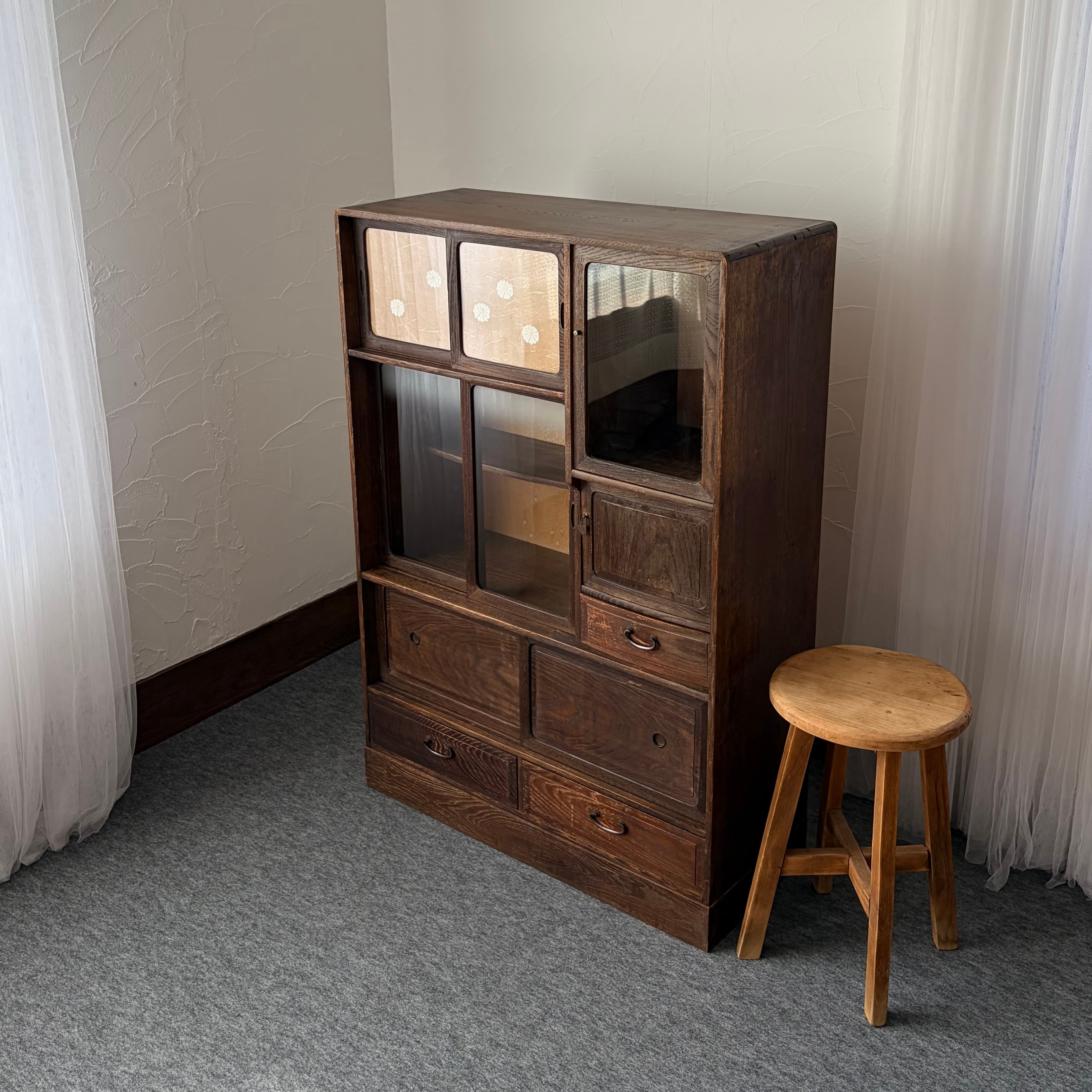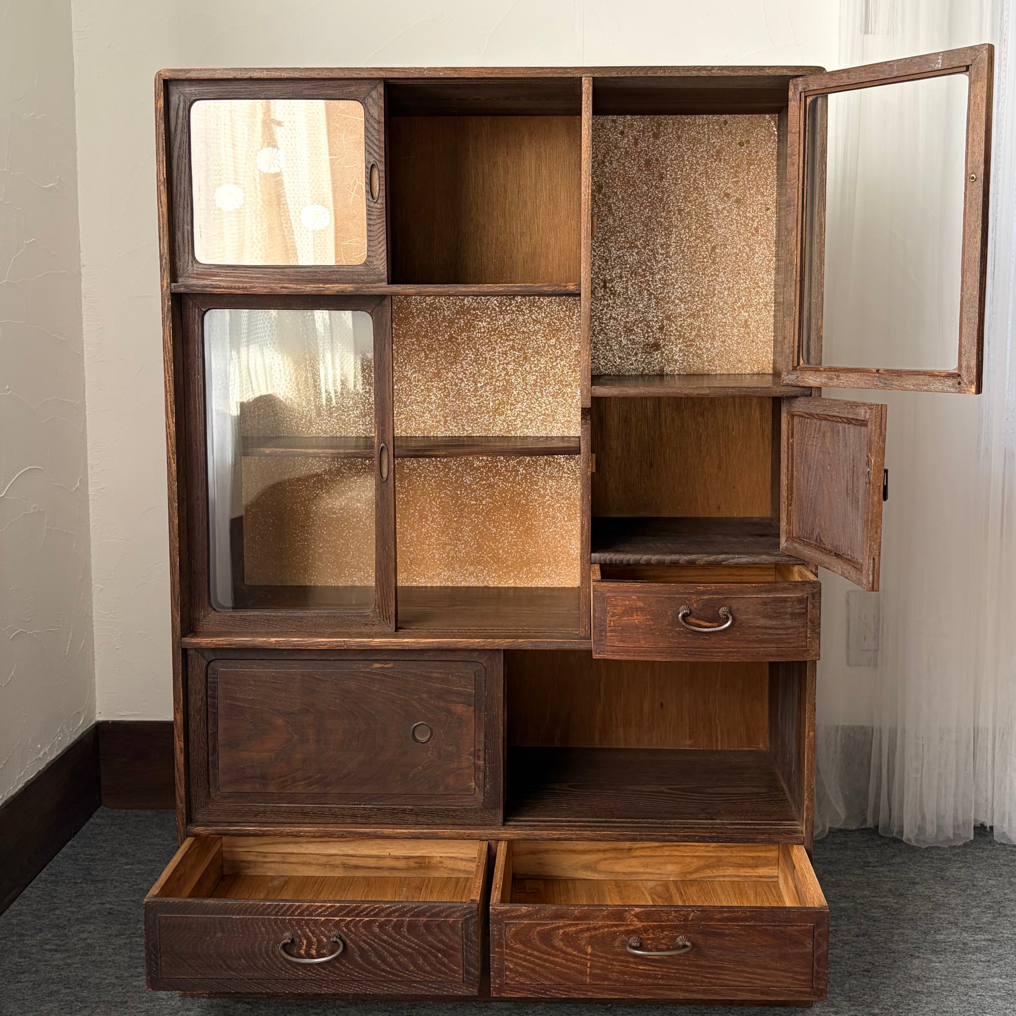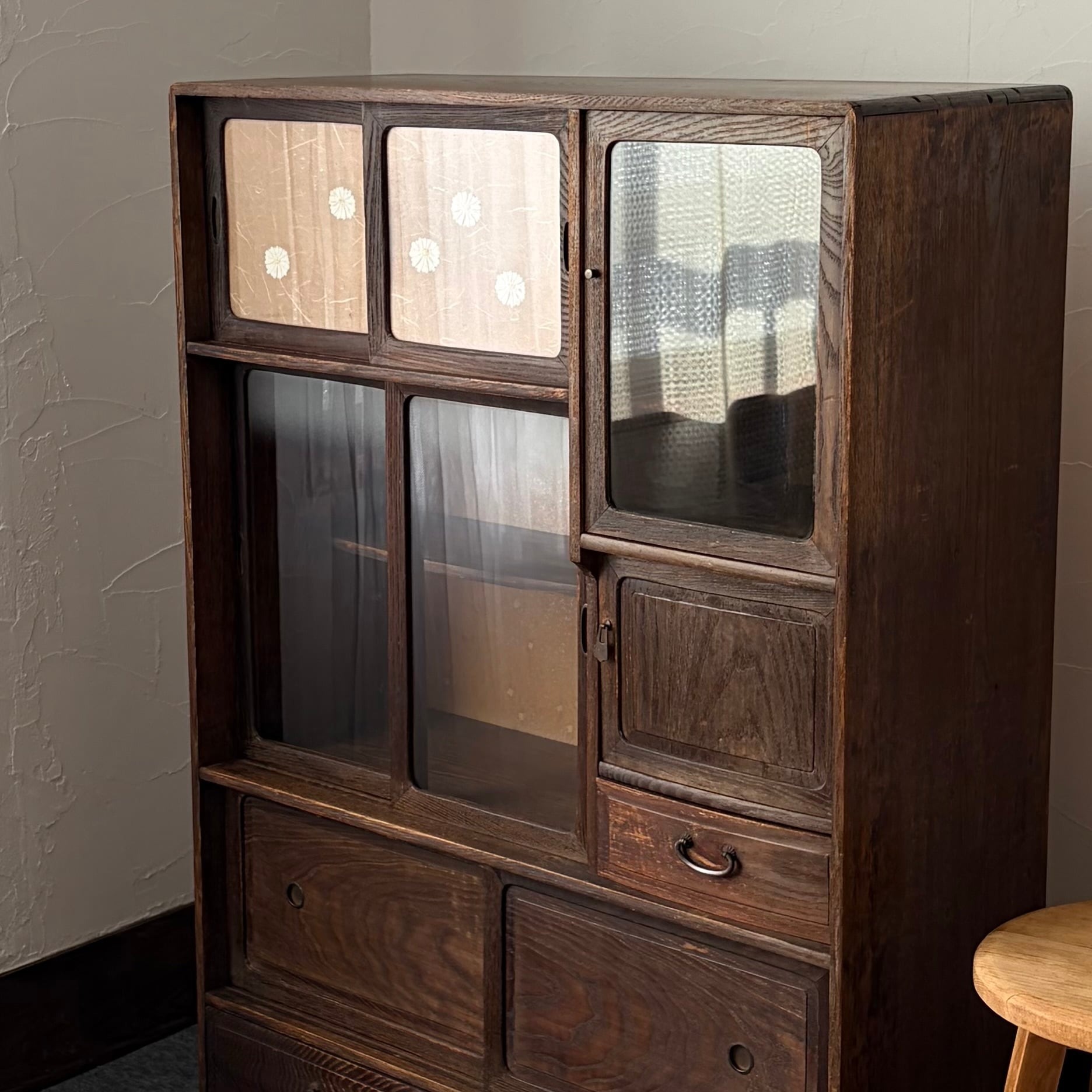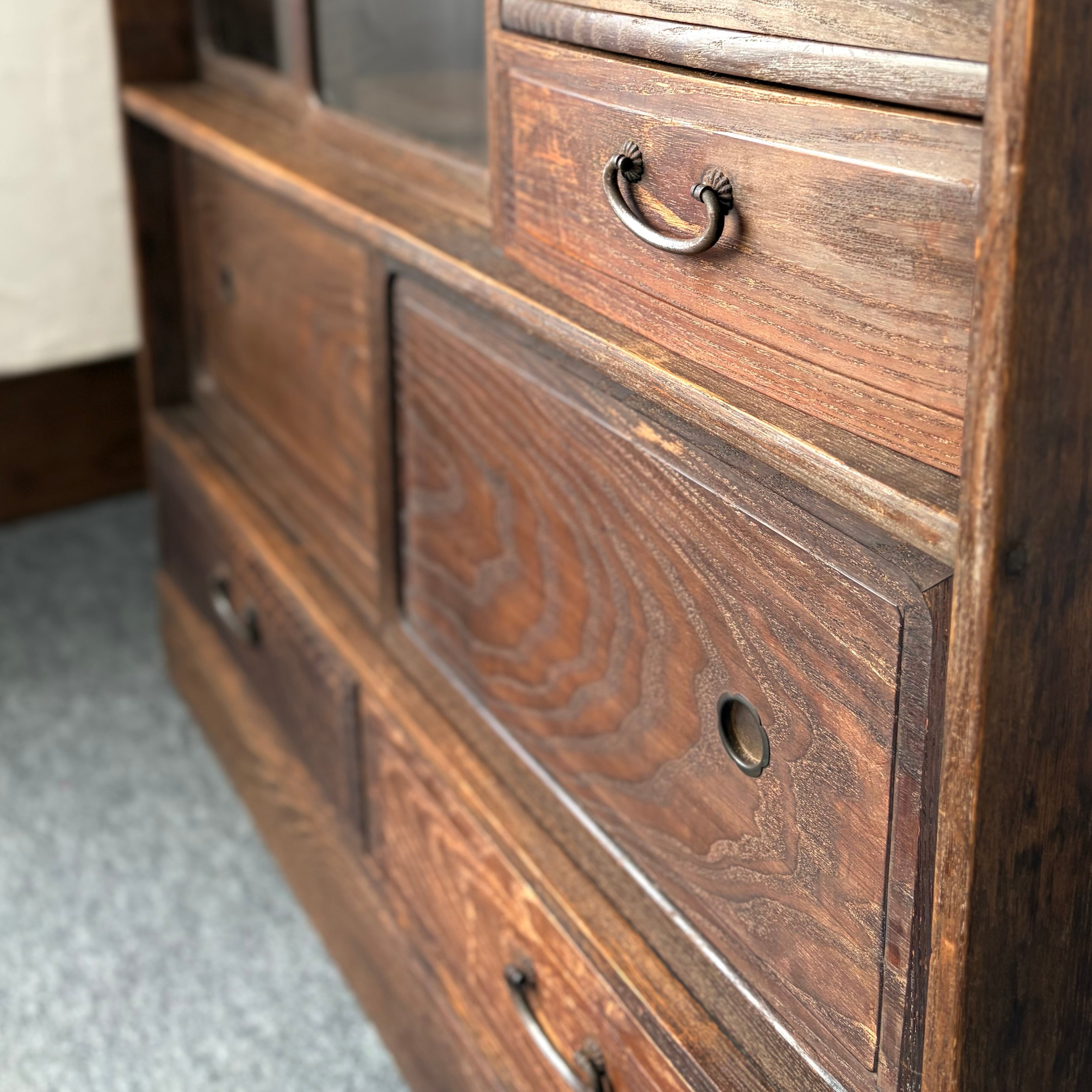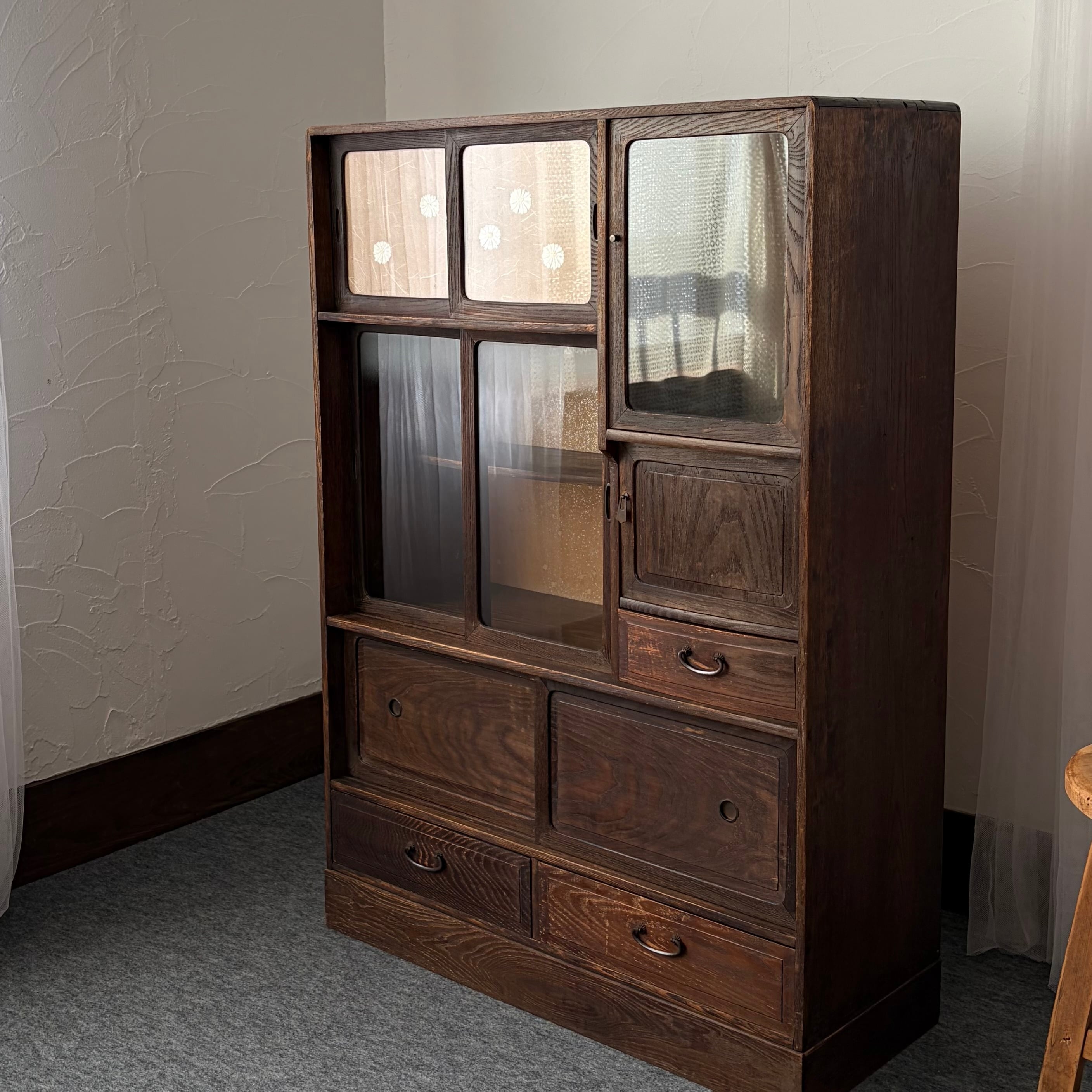 茶箪笥 飾り棚 昭和初期頃◆古家具 日本のアンティーク