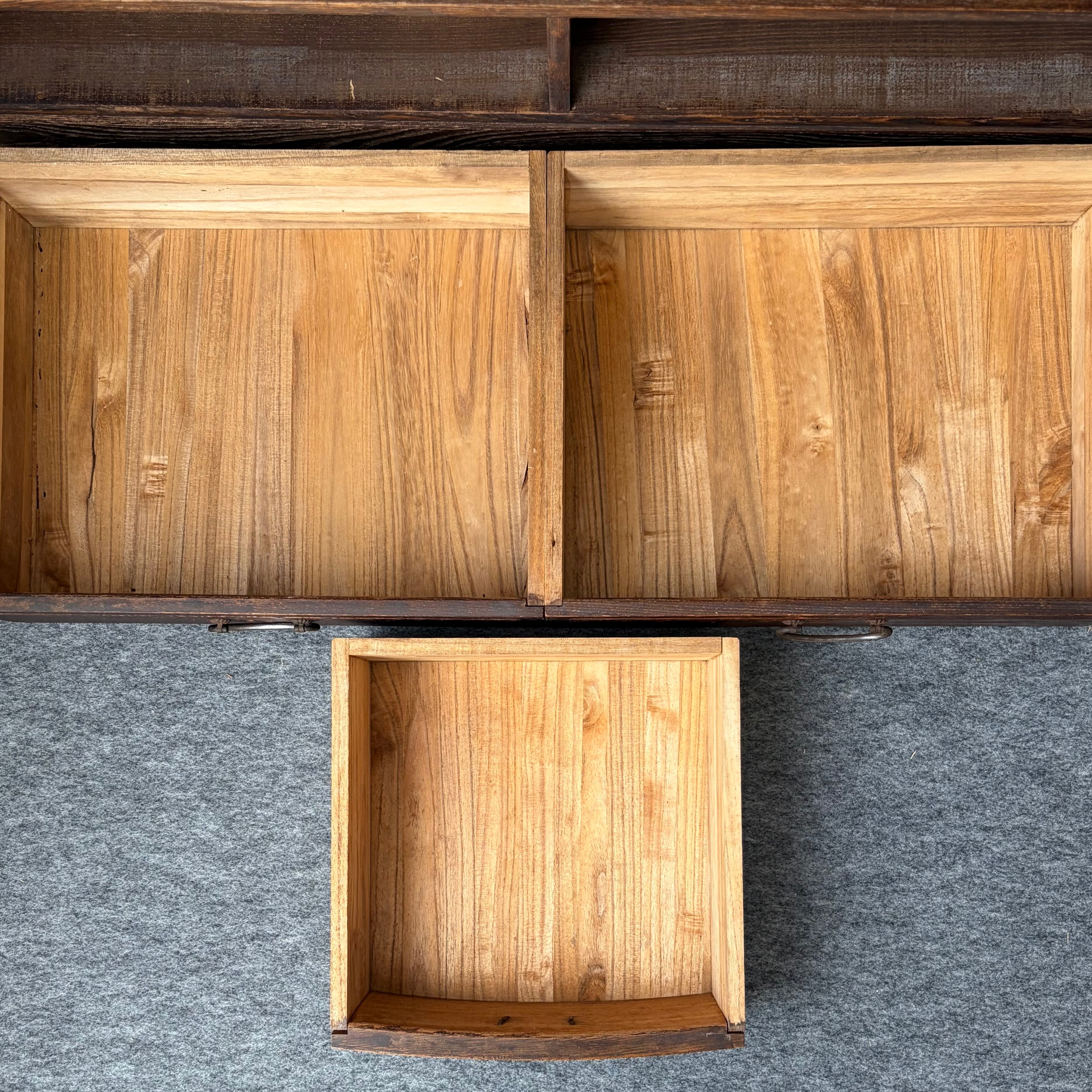 ・中段右小さな引出しの前面の板に少しの反り返りが生じております。引出しの開け閉めや使用に問題はございません。(画像11枚目)