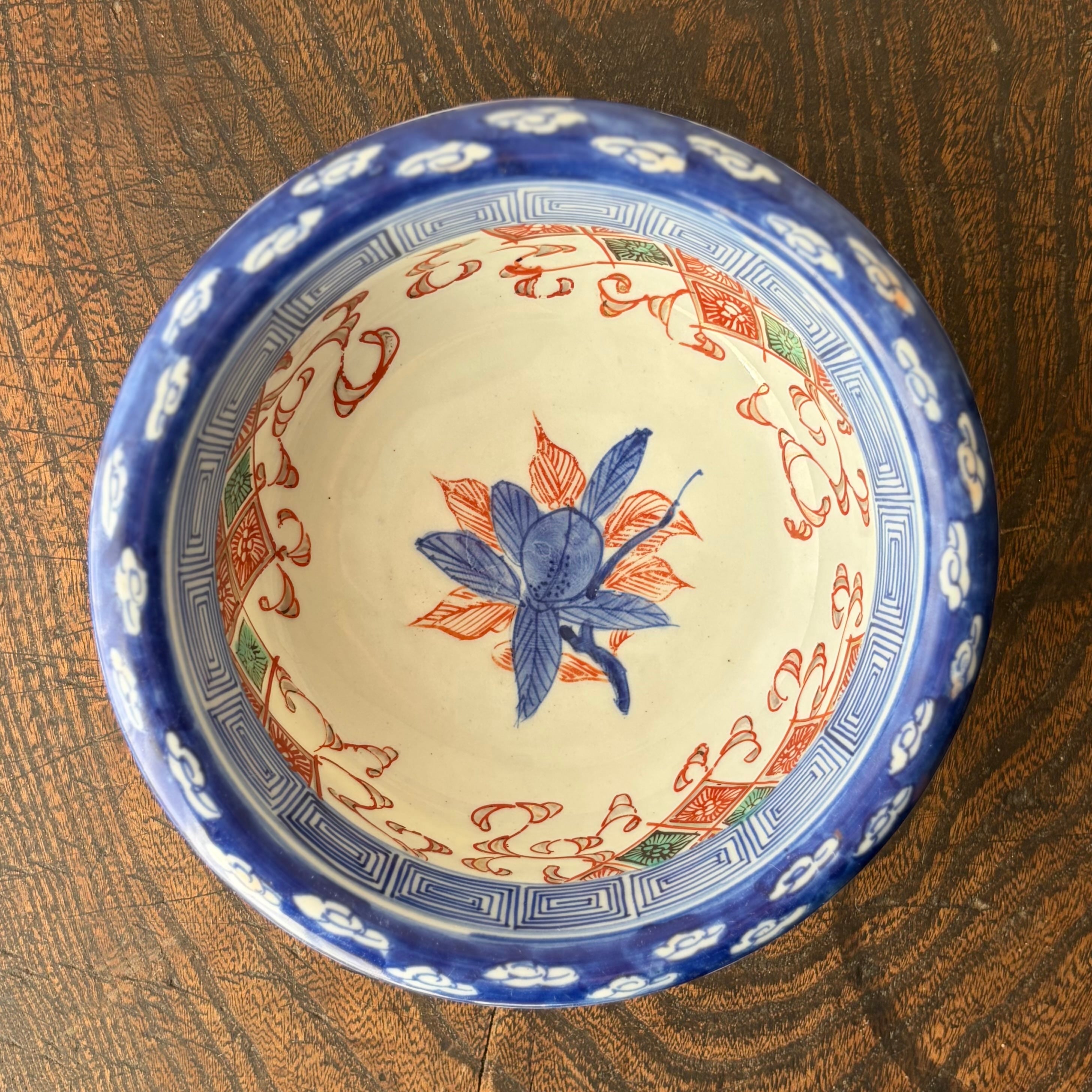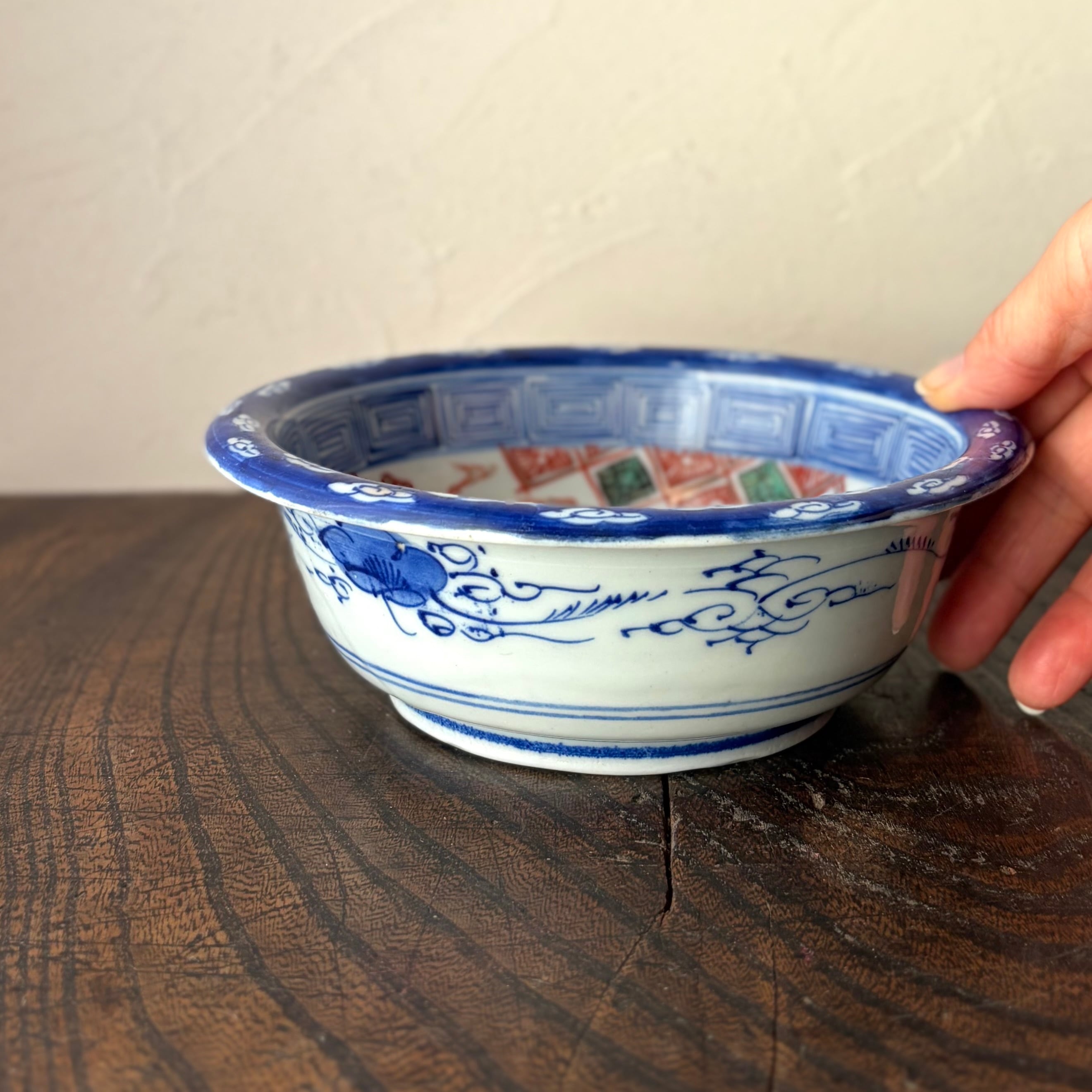 【見込みにビワの実 6寸鉢 染付 金彩 赤絵◆明治期】