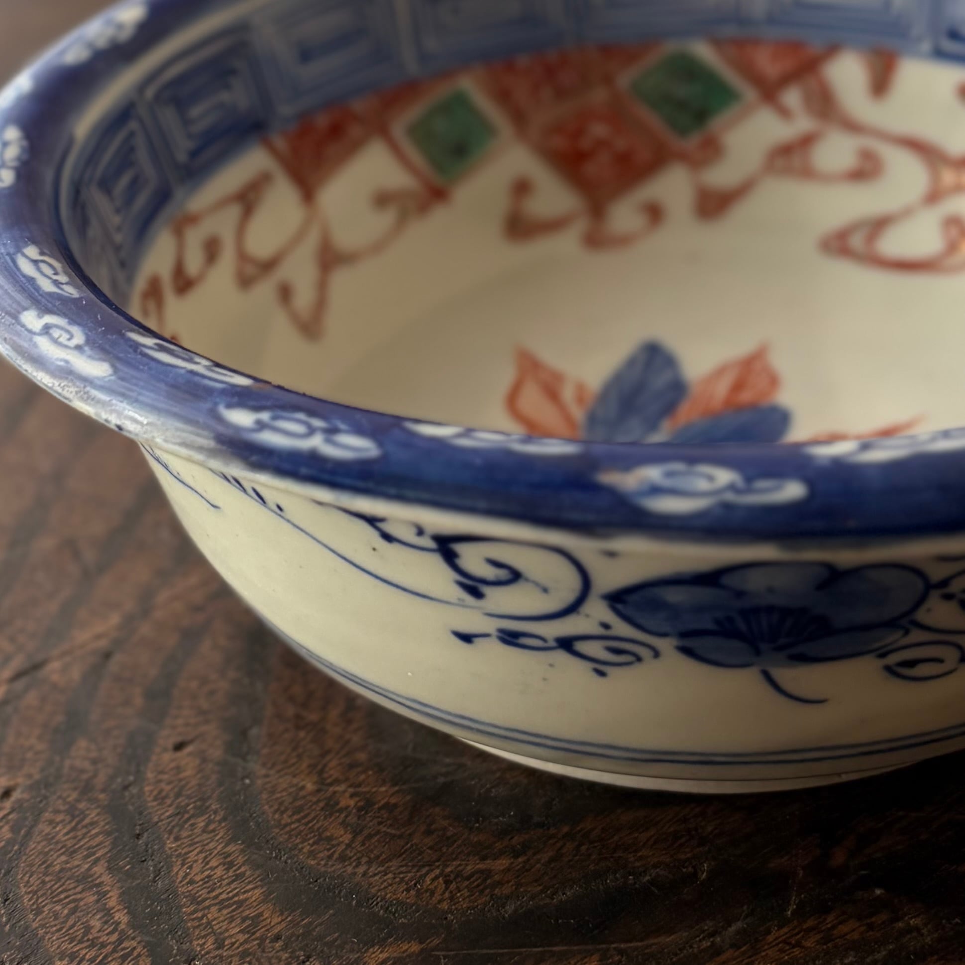 ・手作りの大変古いお品です。染料や釉薬のムラ、黒点、ピンホール、フリモノなどの窯傷(焼成時の傷)が見られます。古いものの特性、味わいとして愉しんでいただけたらと思います。