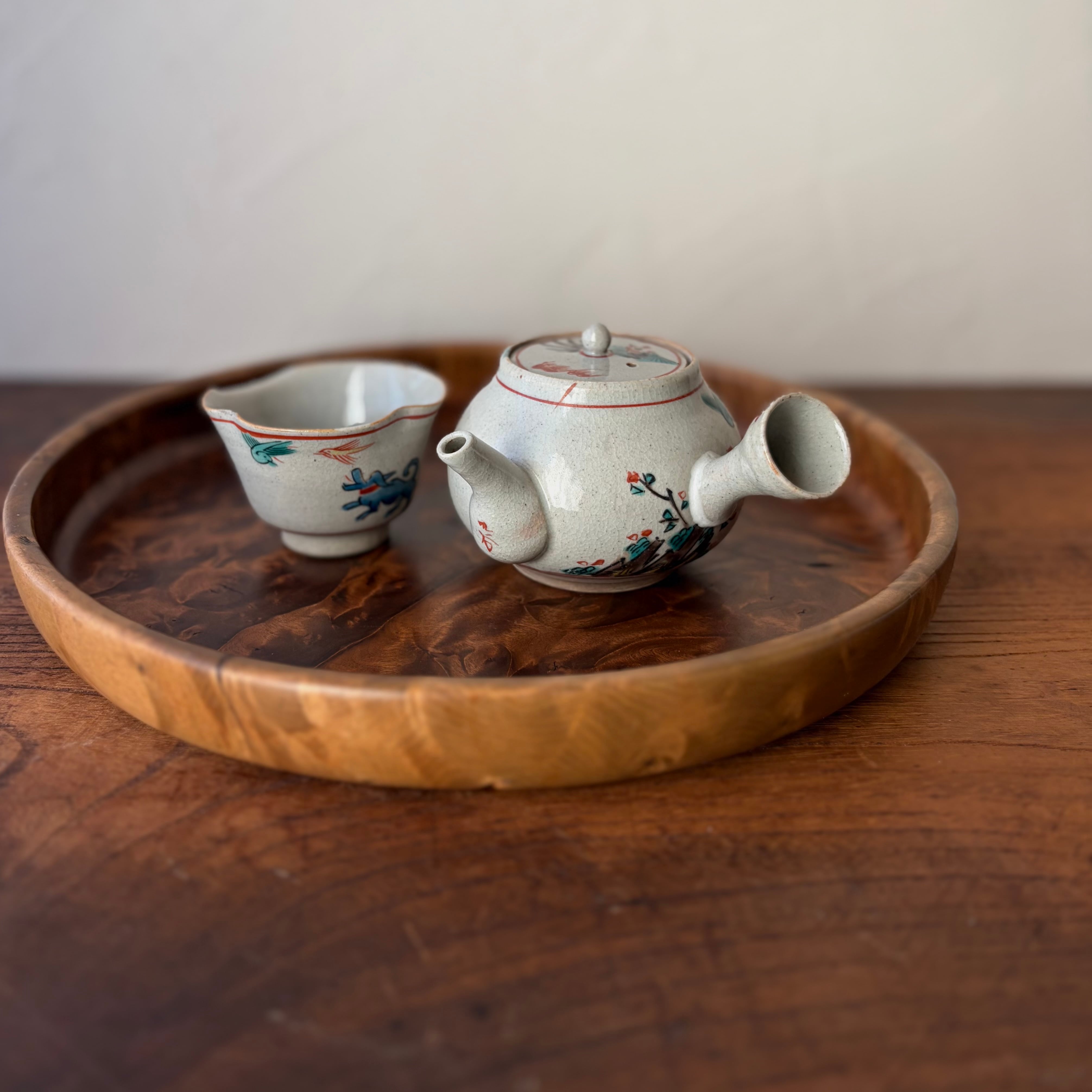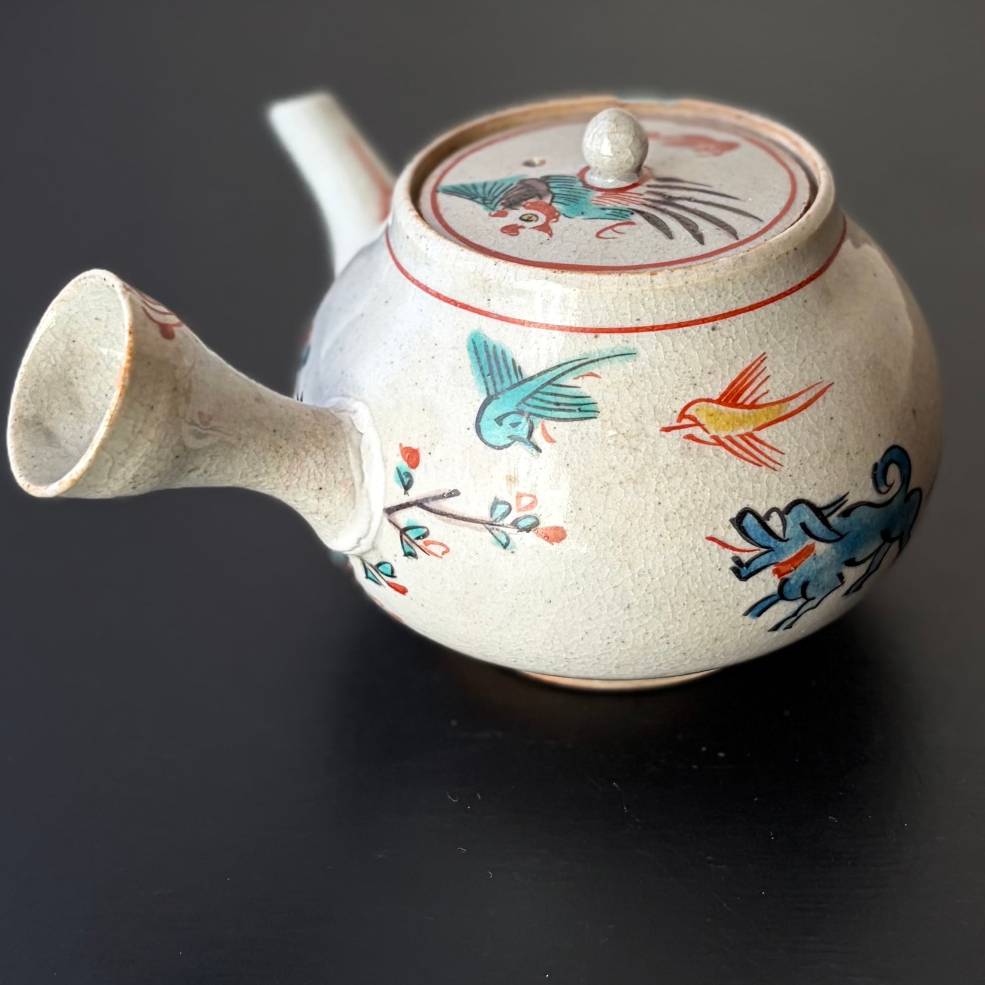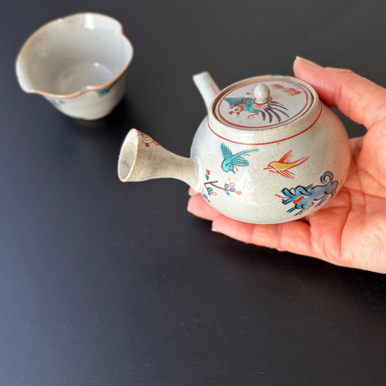 九谷 色絵茶器 犬を連れた唐子 急須と湯冷し