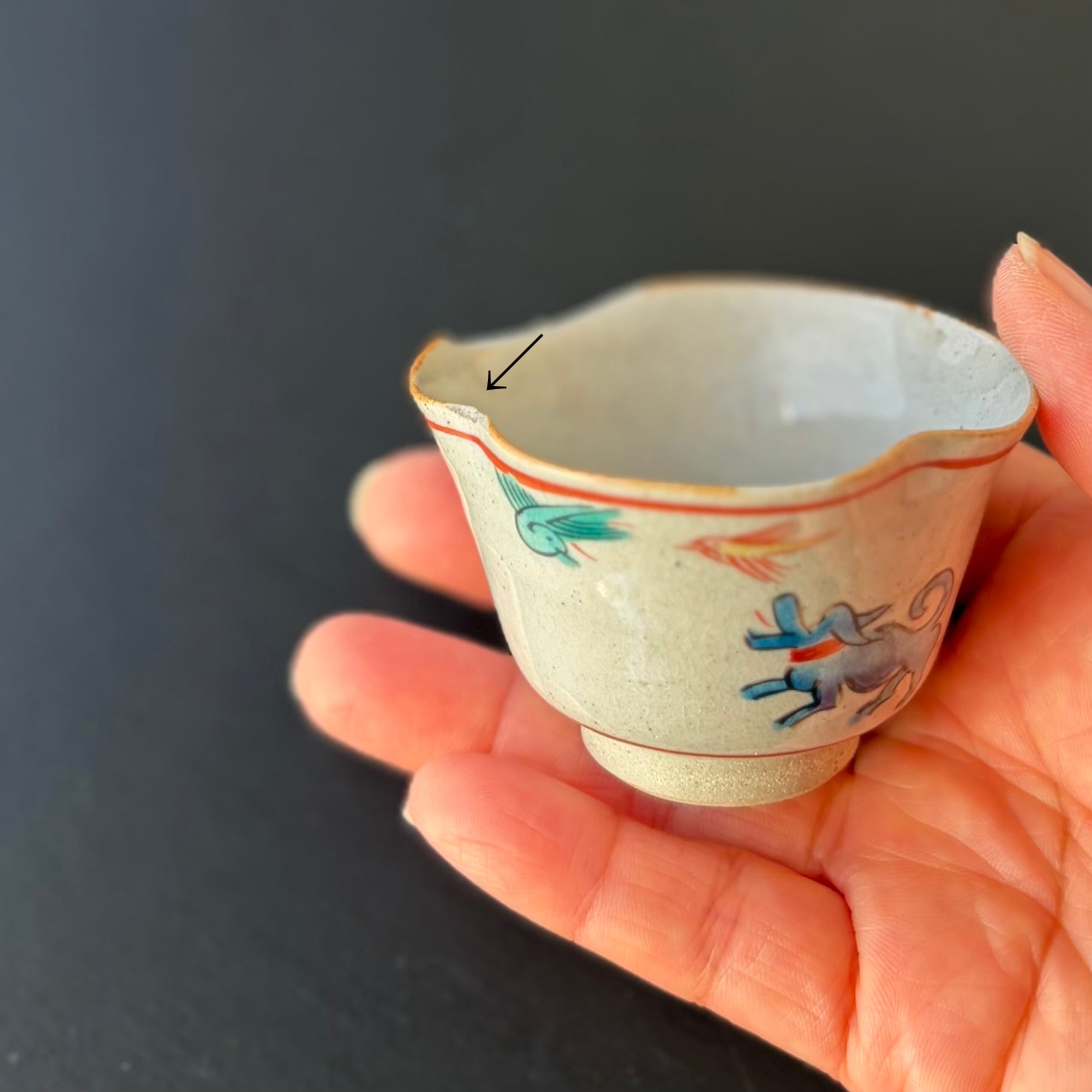 ・湯冷しにの縁に小さな欠け(ソゲ)が見られます。(画像9枚目)