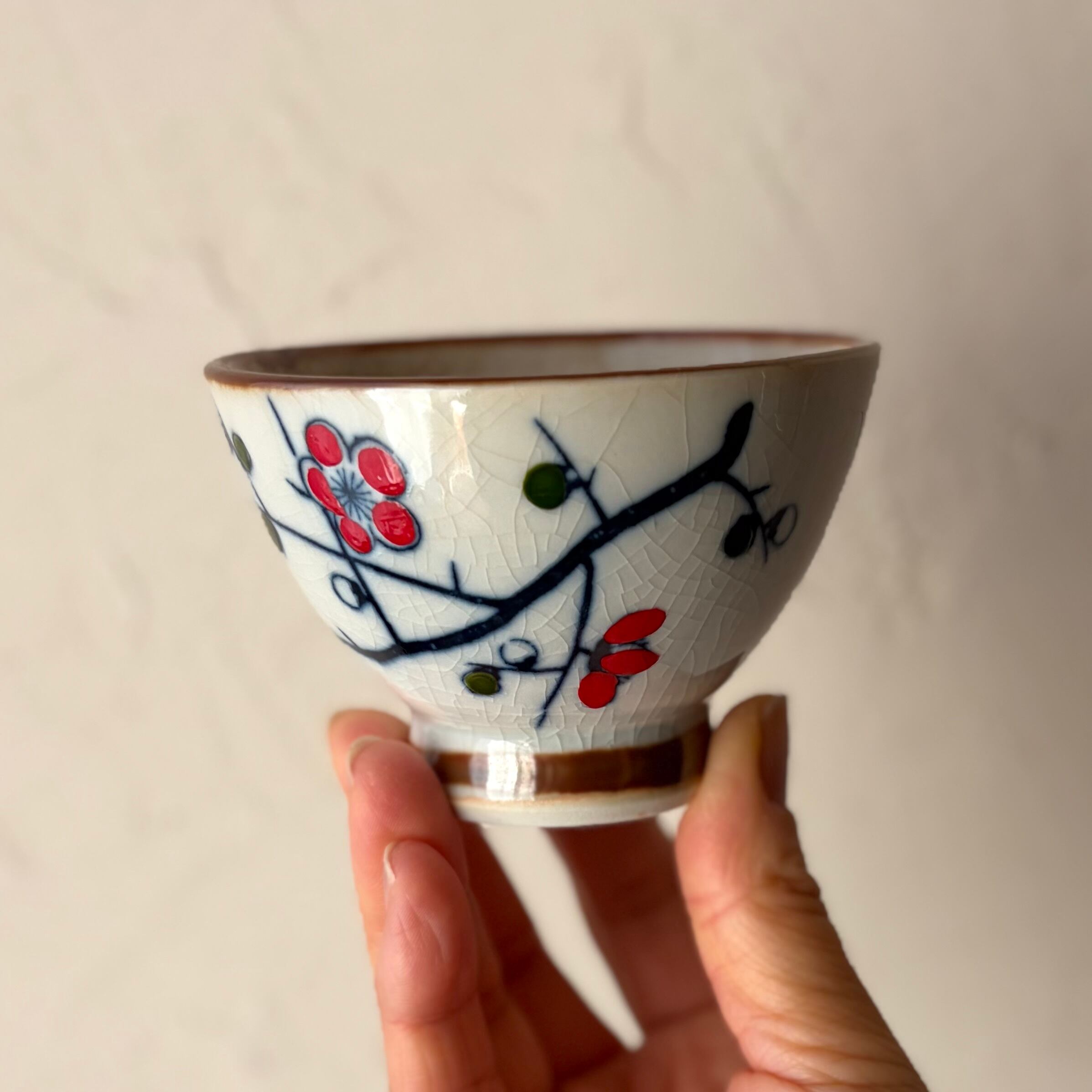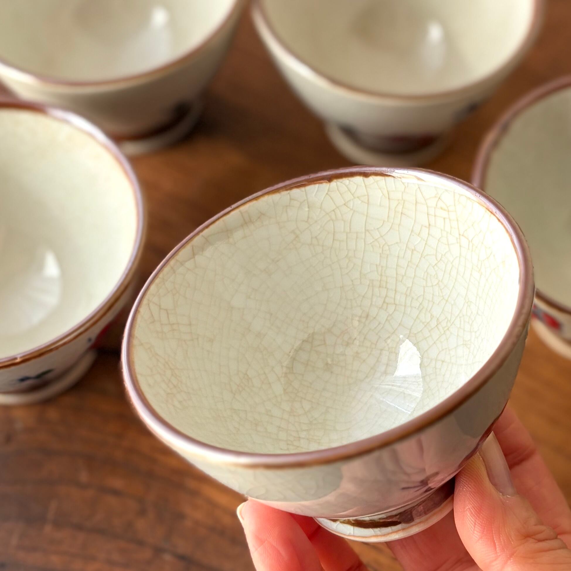 梅の花が描かれた湯呑5点のセット。