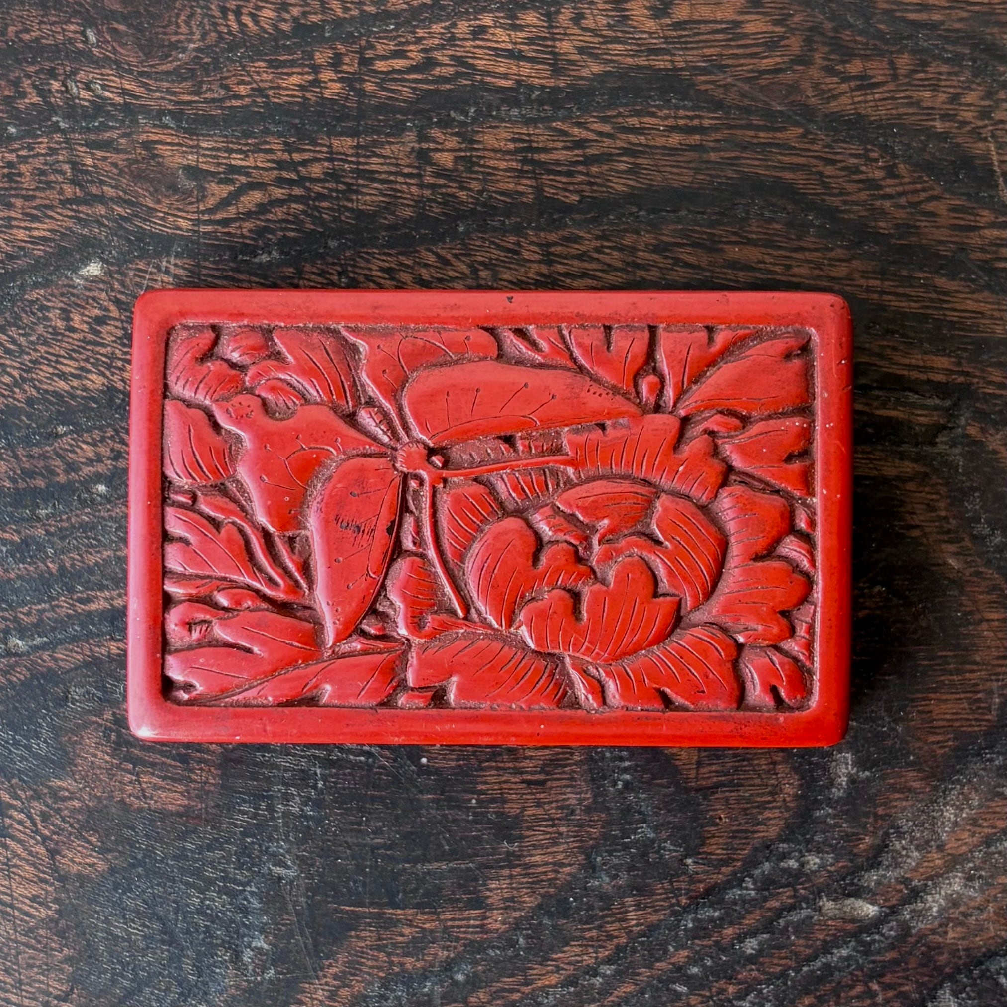 堆朱 爪楊枝入れ 蝶に牡丹◆明治期