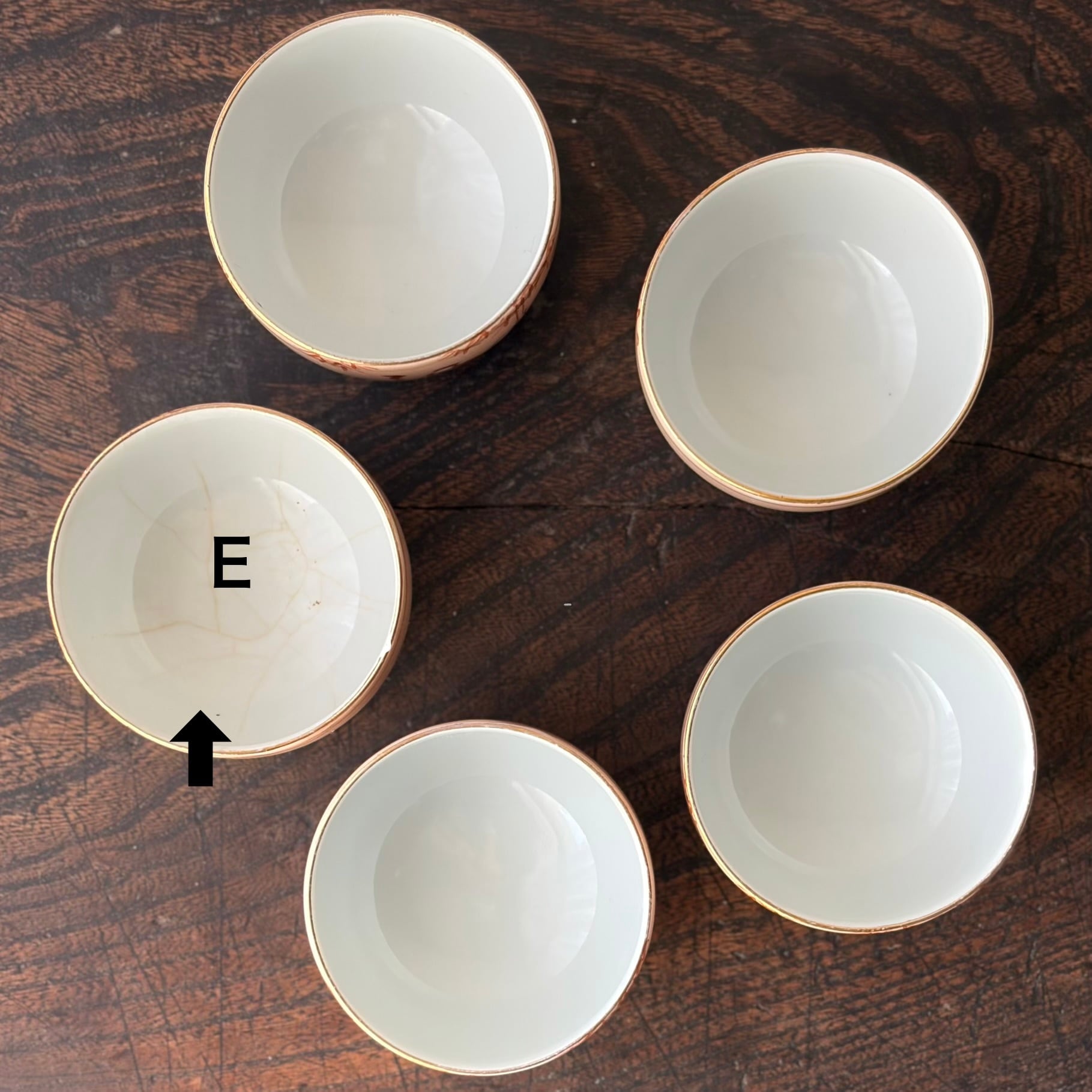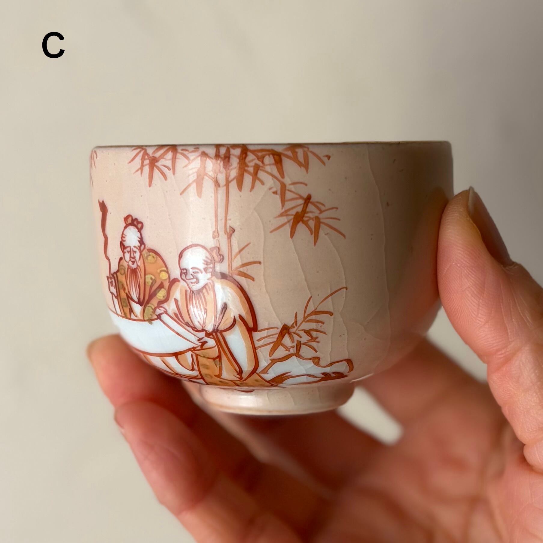 湯呑5個のうち C、Dの2個には