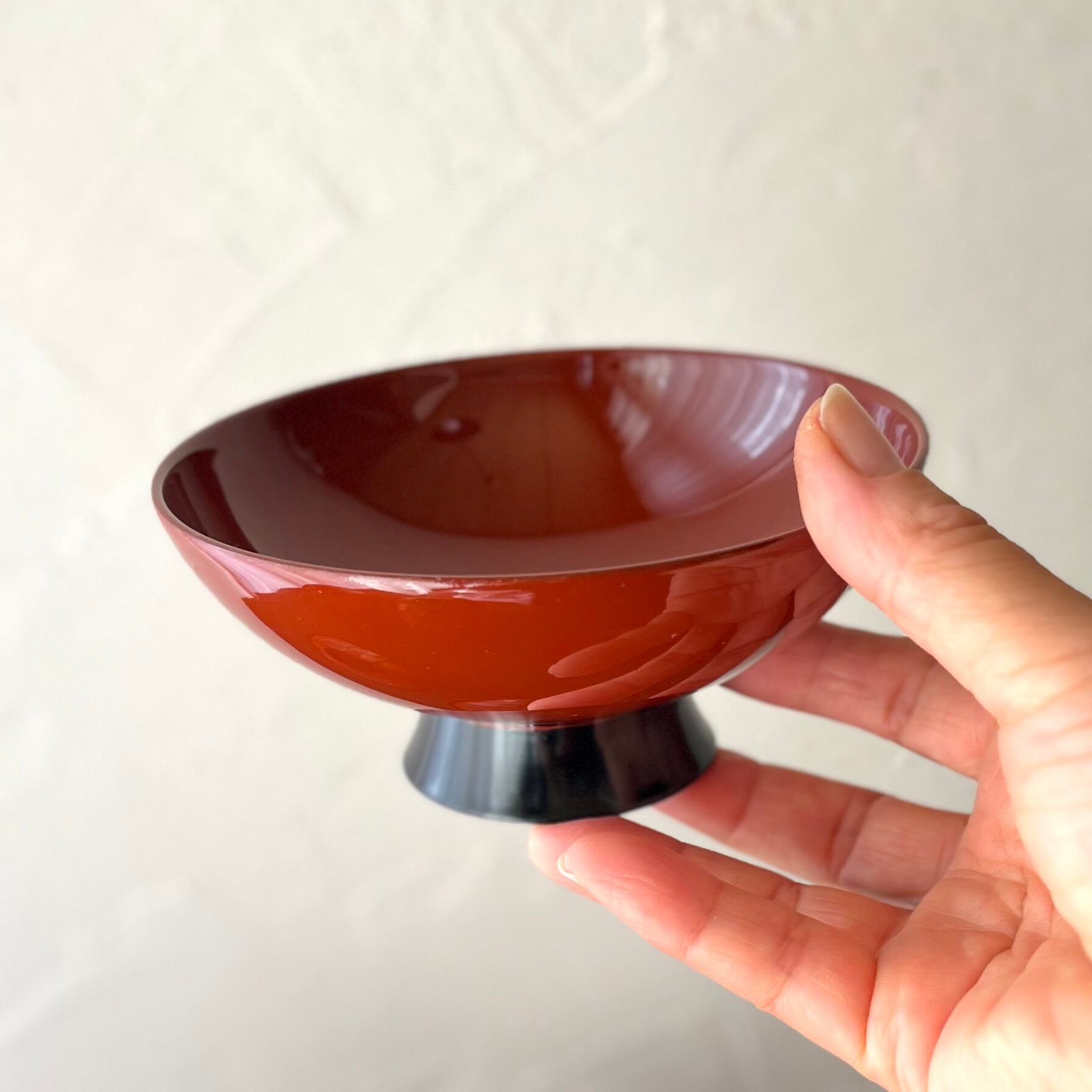 黄色味がかった赤色の蓋付き汁物椀。