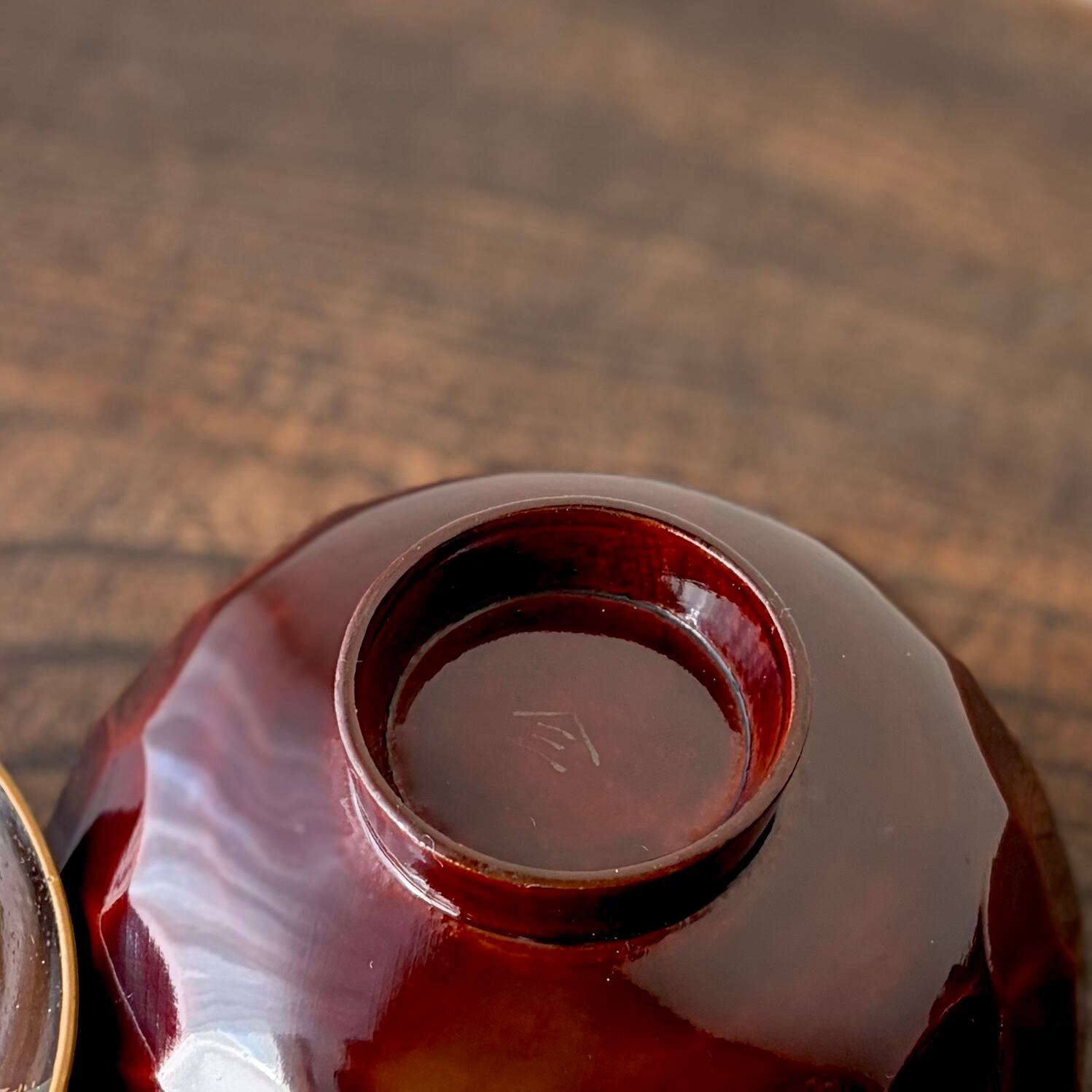 ・高台の裏と蒔絵の絵柄の中に、屋号が記されています。(画像8,9枚目)