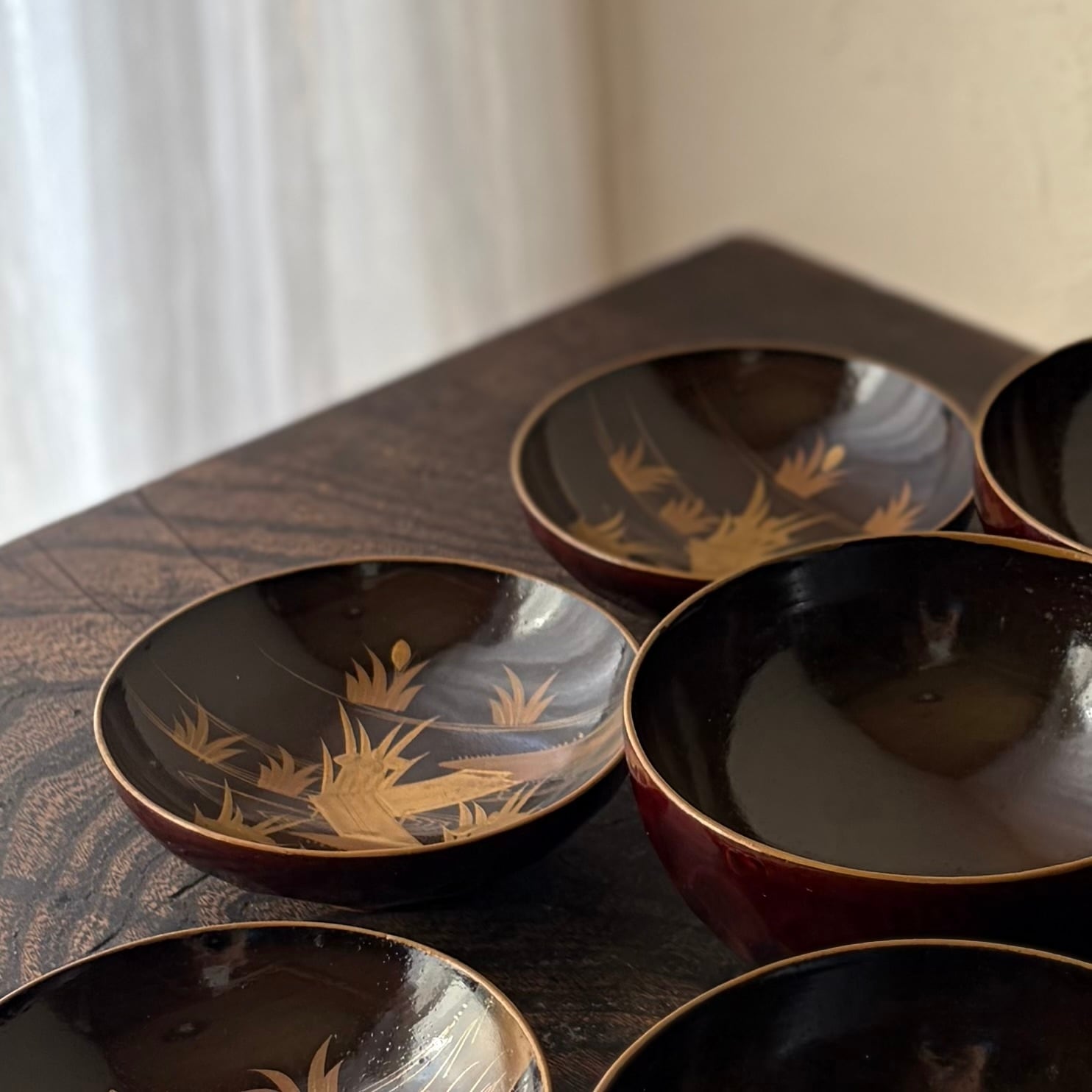 ・口縁や高台の縁、蓋の縁などに、僅かに漆の剥がれが生じているものがございます。(画像19枚目)