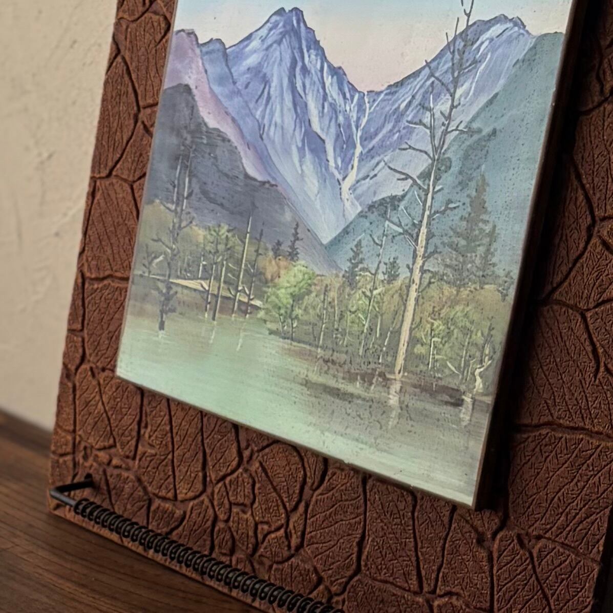 安曇野 大正池の風景を描いたタイルの壁掛け。