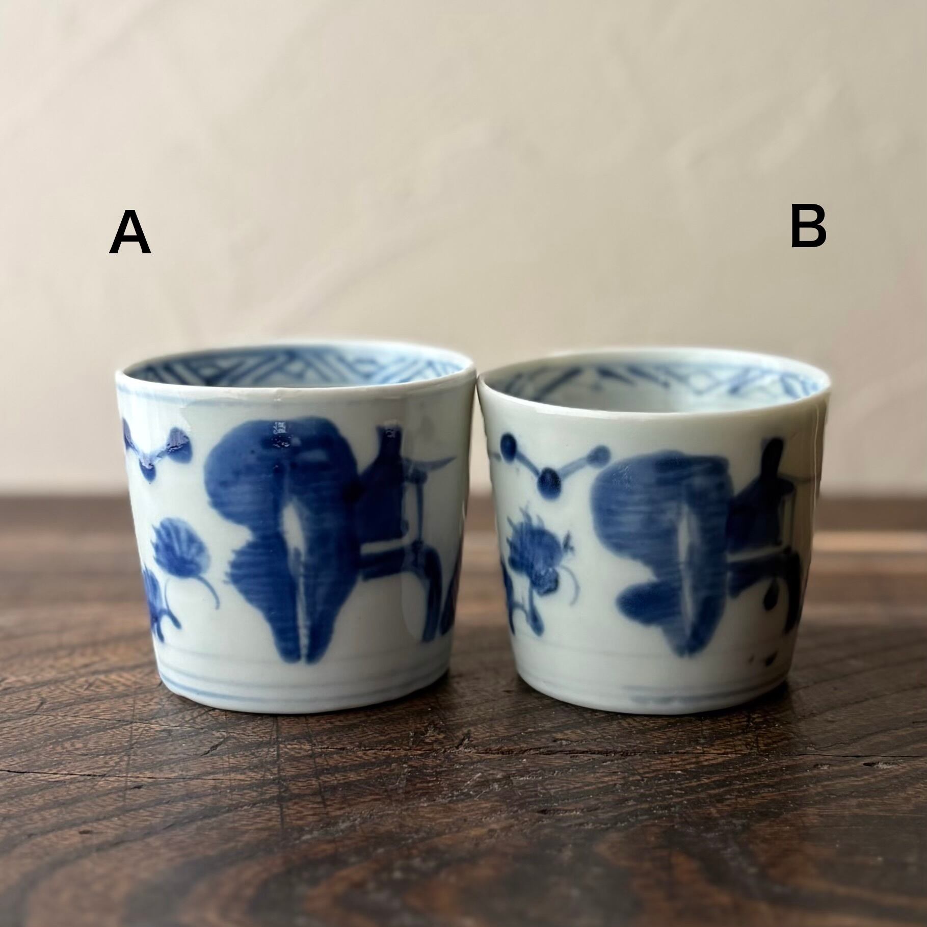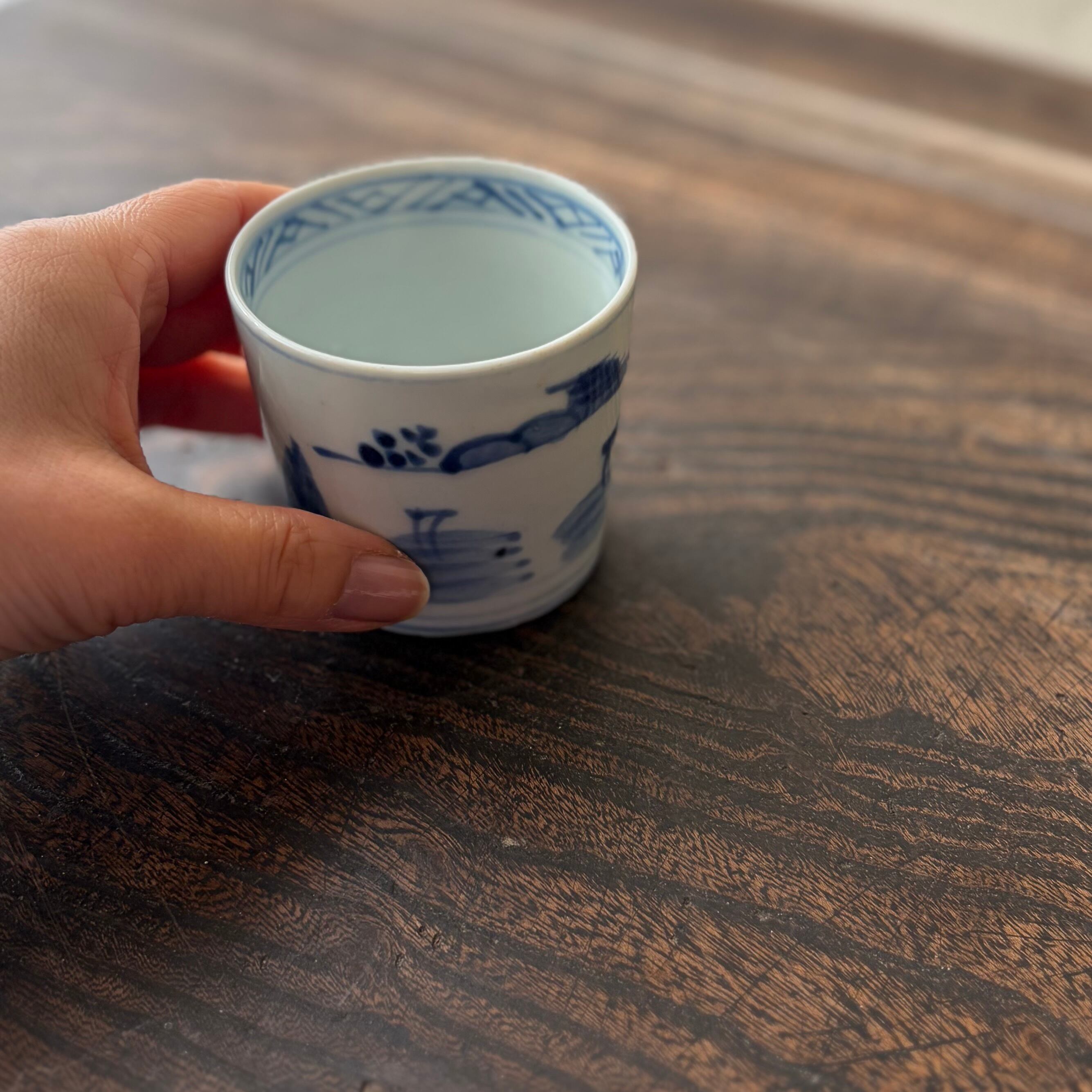 蕎麦猪口 染付山水図 見込みに舟◆明治期 A