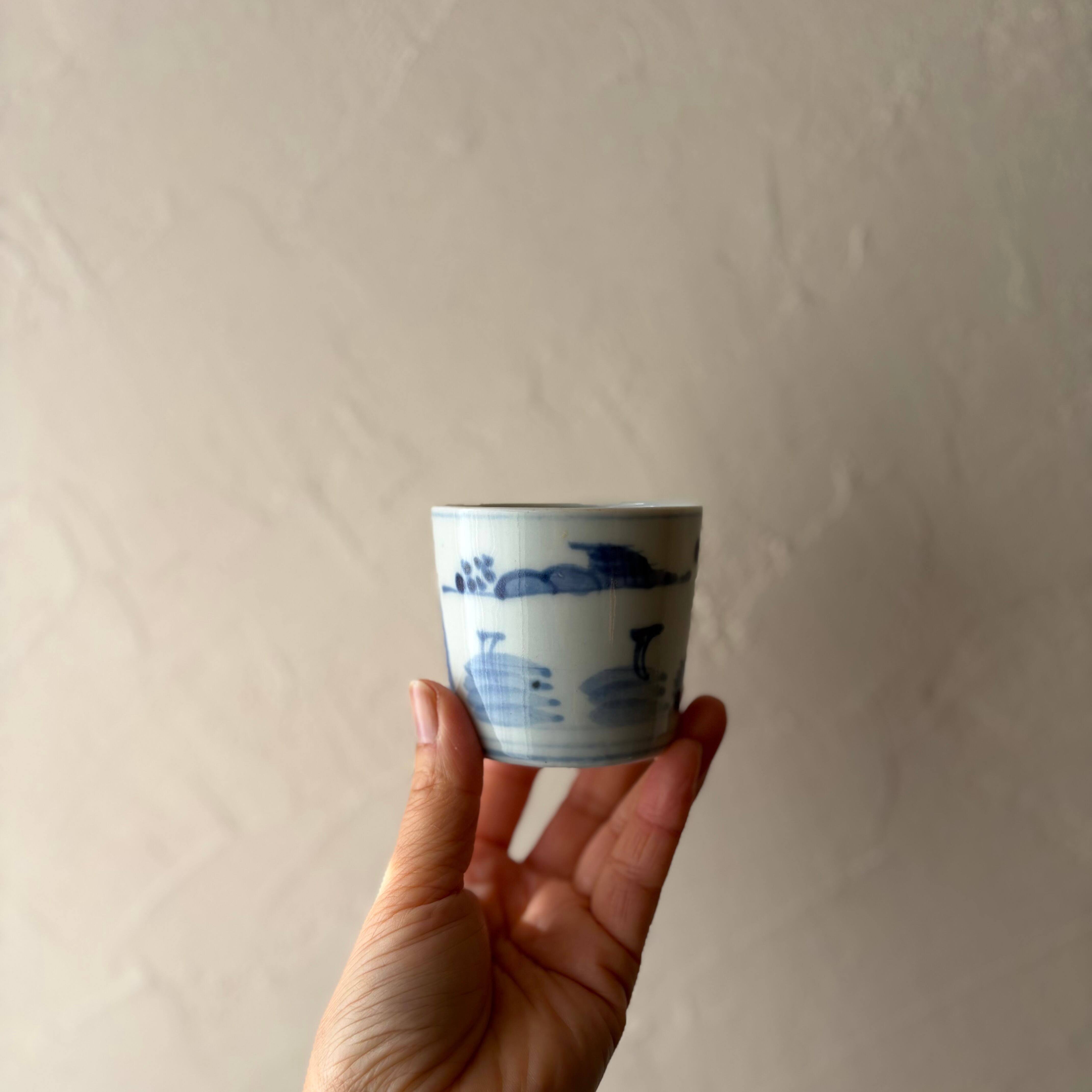【蕎麦猪口 染付山水図 見込みに舟◆明治期 A】