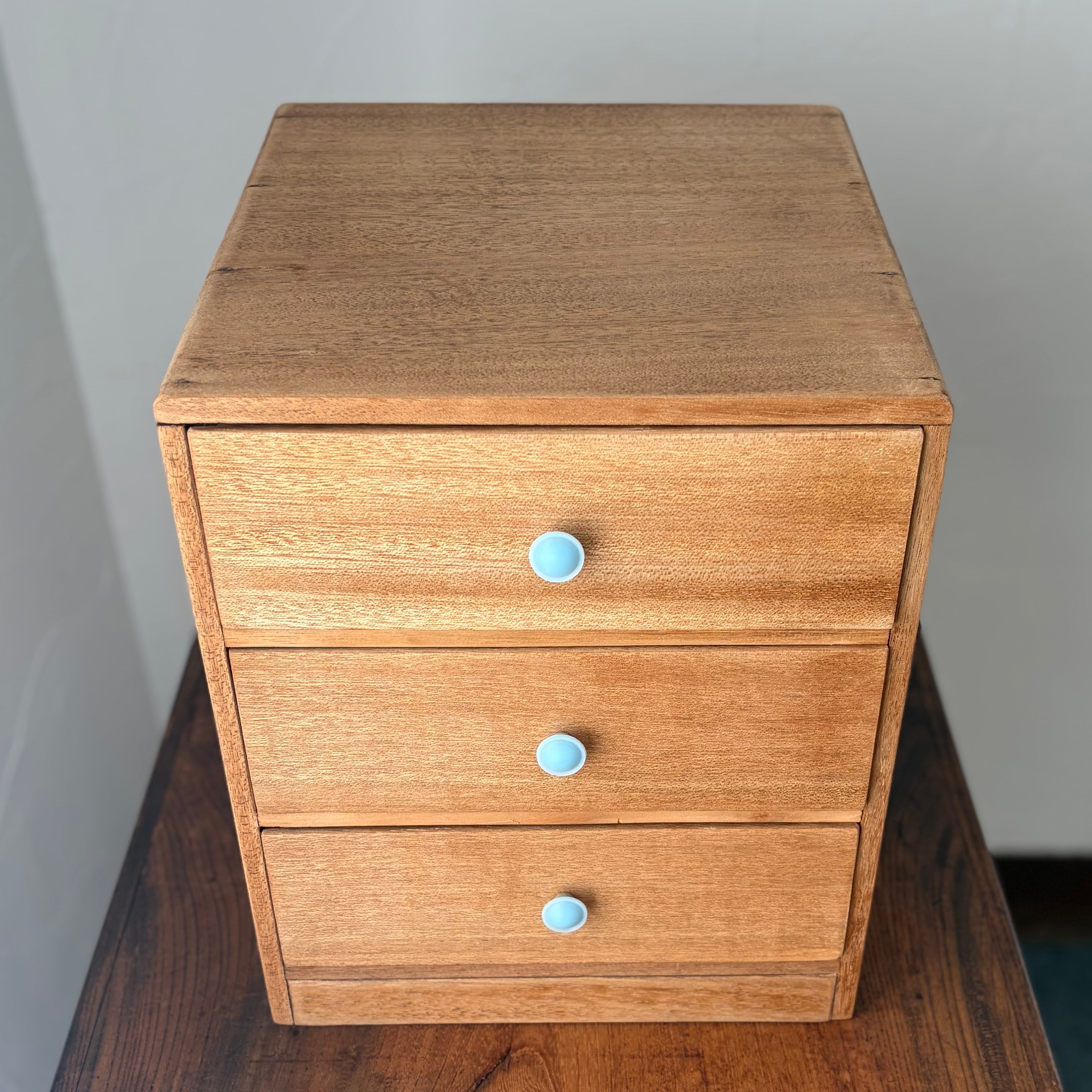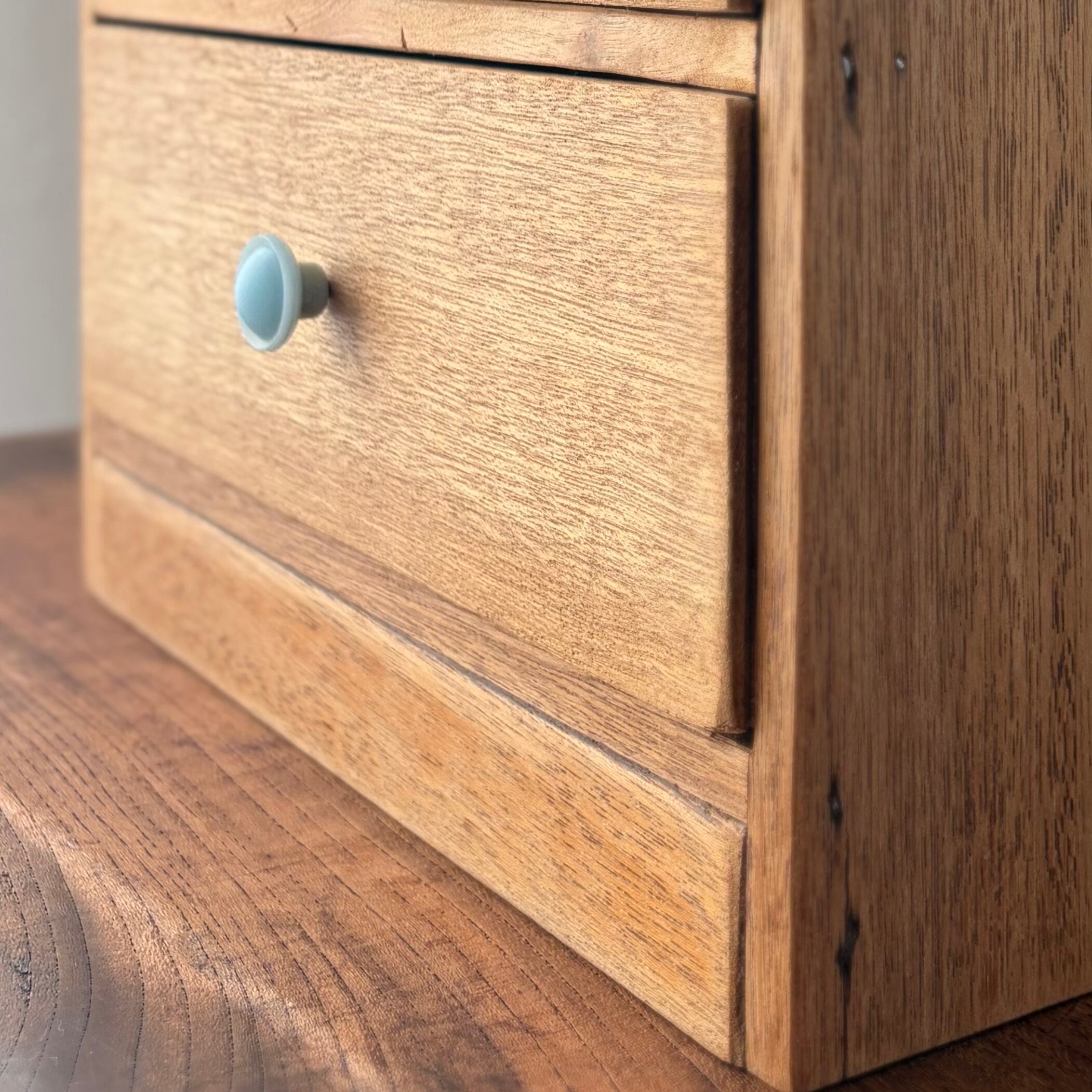 【引出し3杯の小引出し レトロ 水色のツマミ】