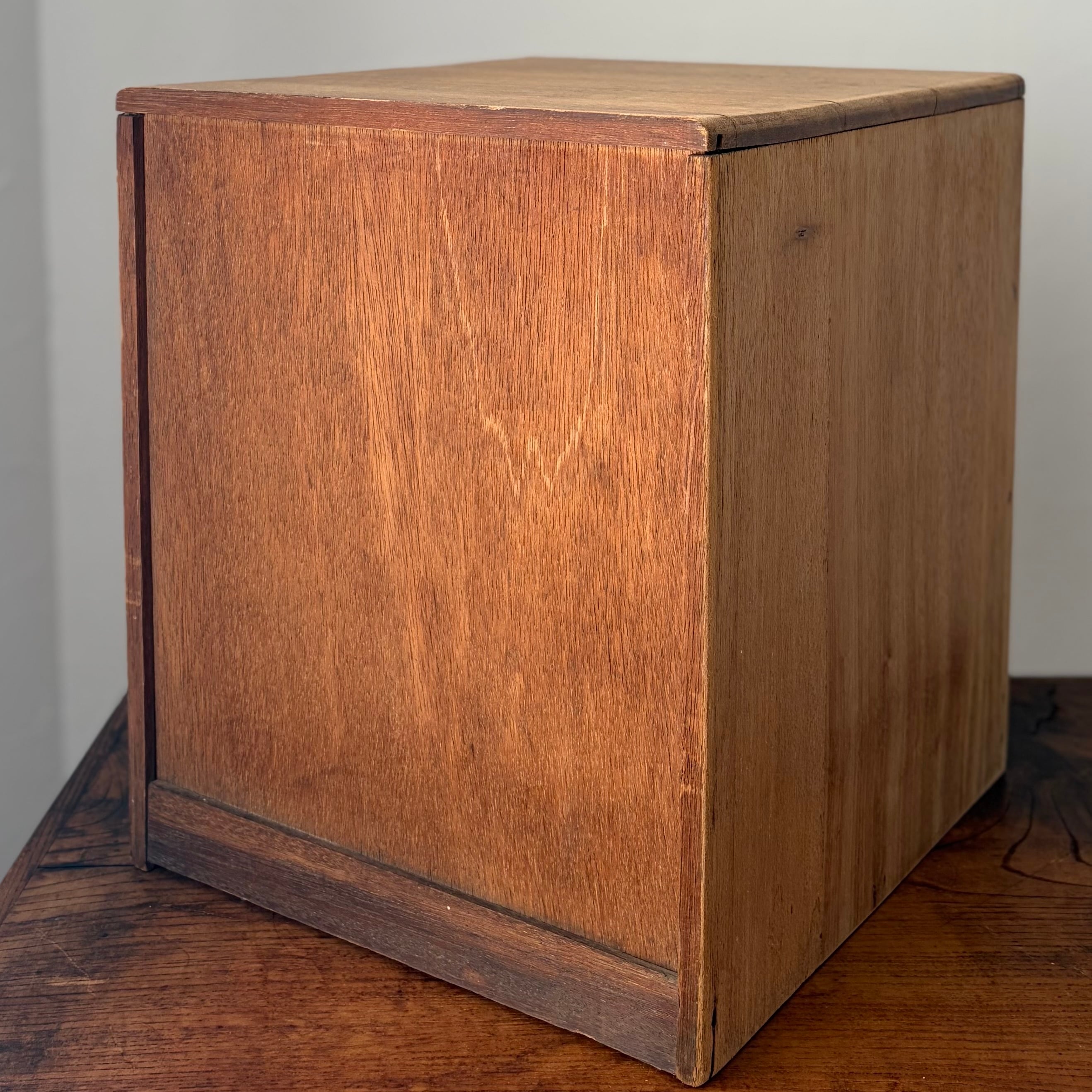・昭和時代に製作された家具です。天板の背面側に少しそり返りがみられますが(画像17枚目)、それほど目立ちませんし、使用に問題はなく引出しの開け閉めもスムーズです。
