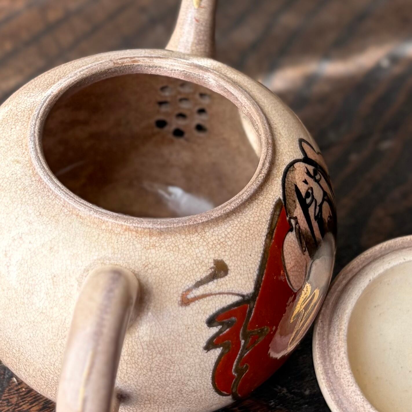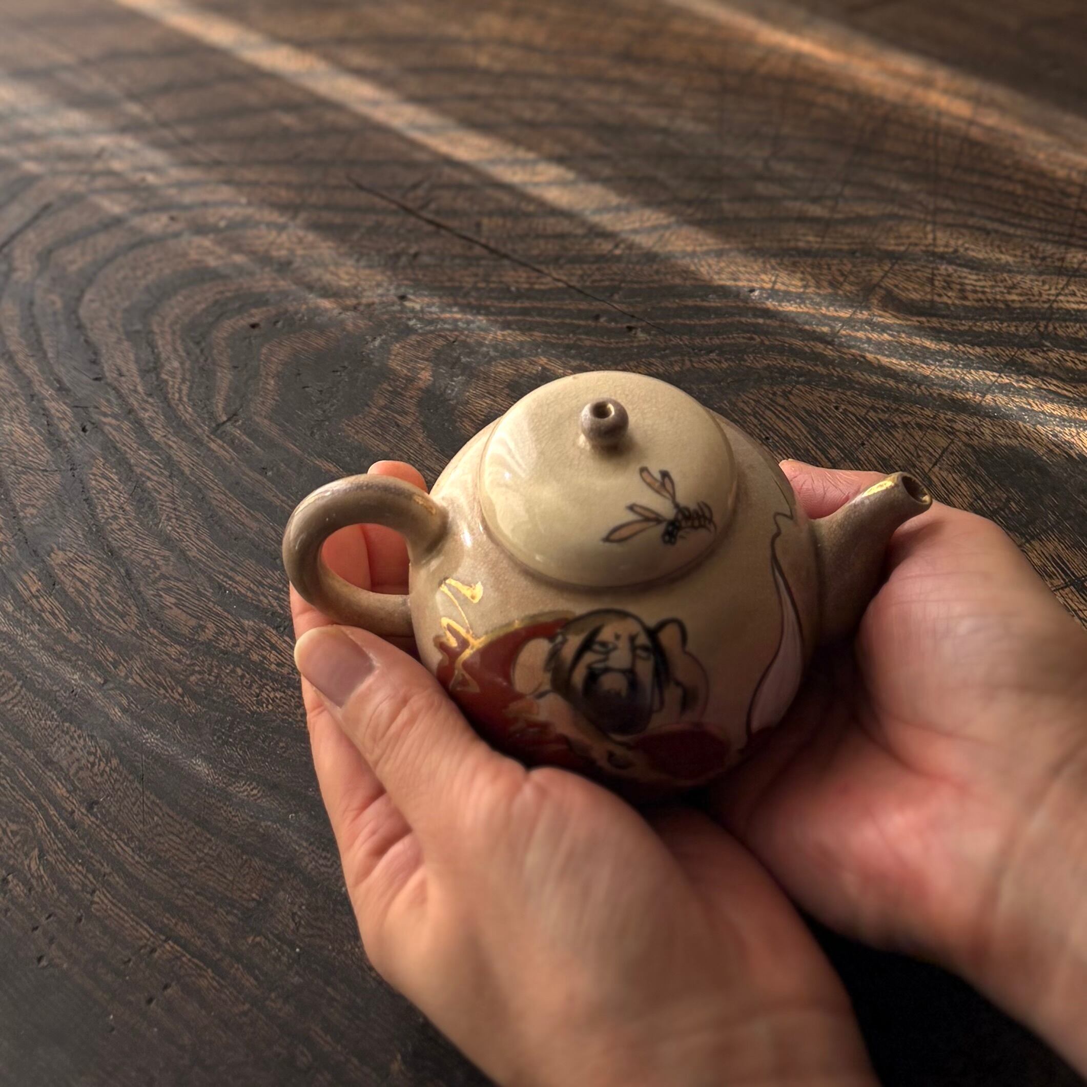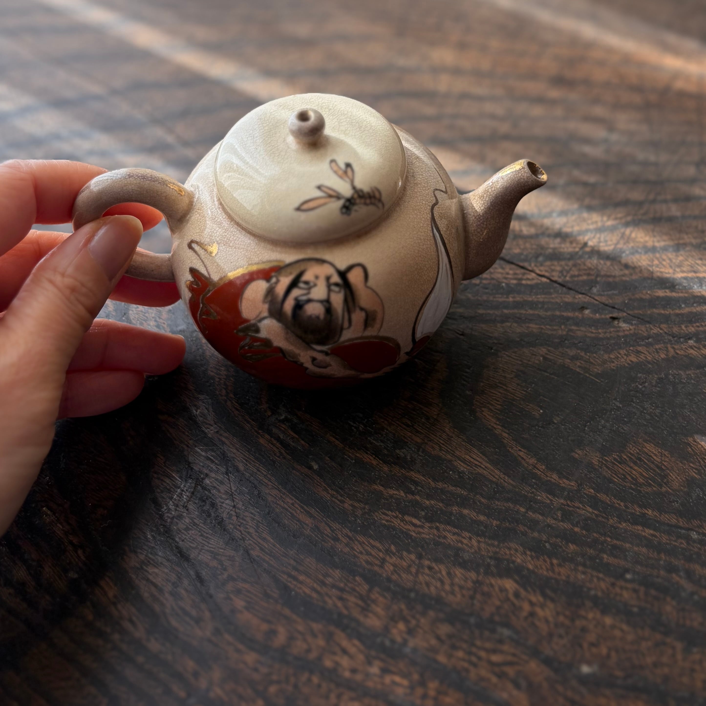 薩摩焼 煎茶器 急須 達磨図 頭上に蜂◆明治期