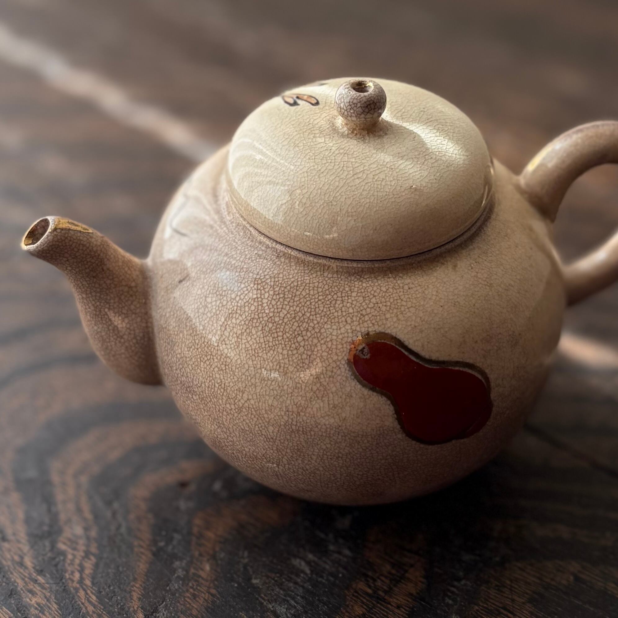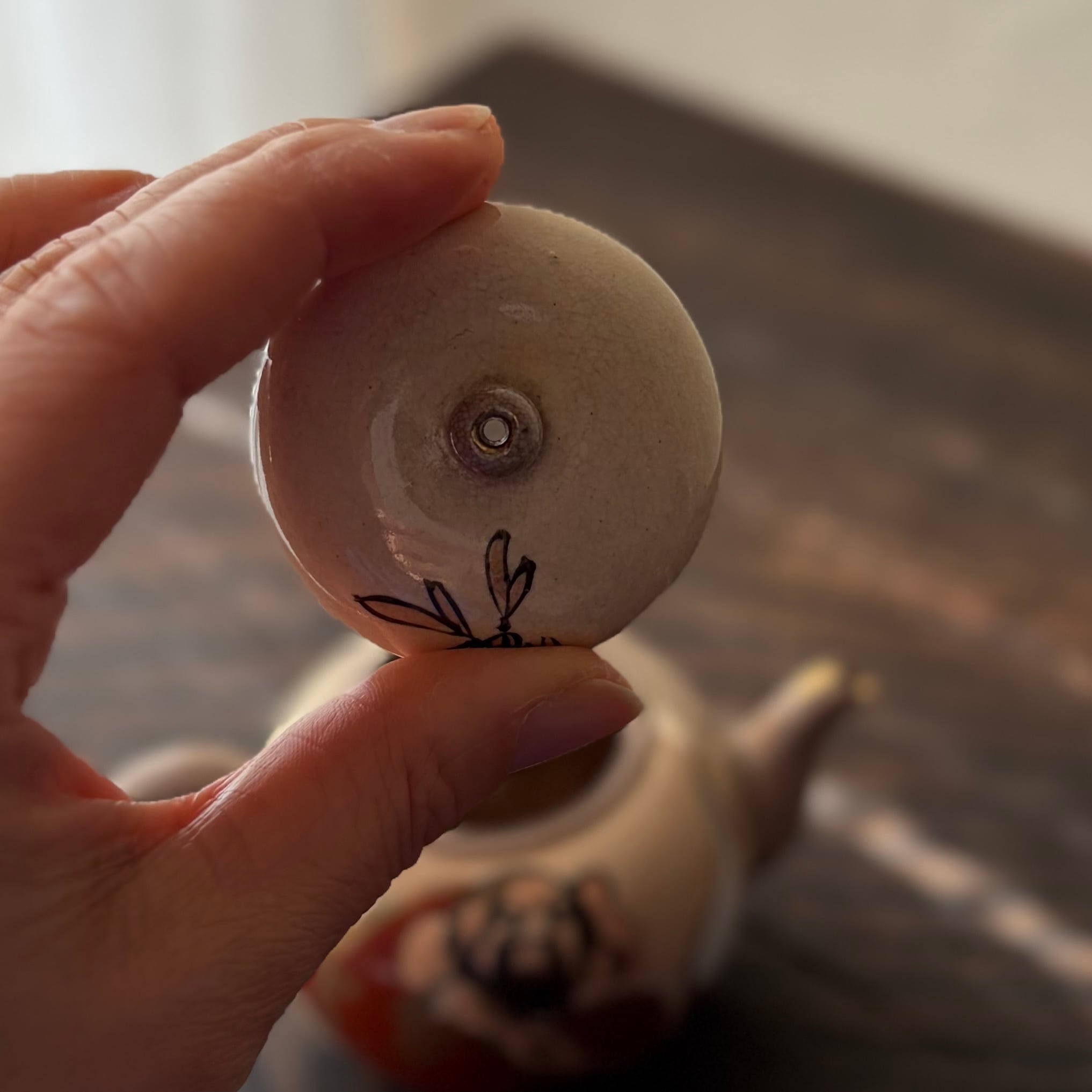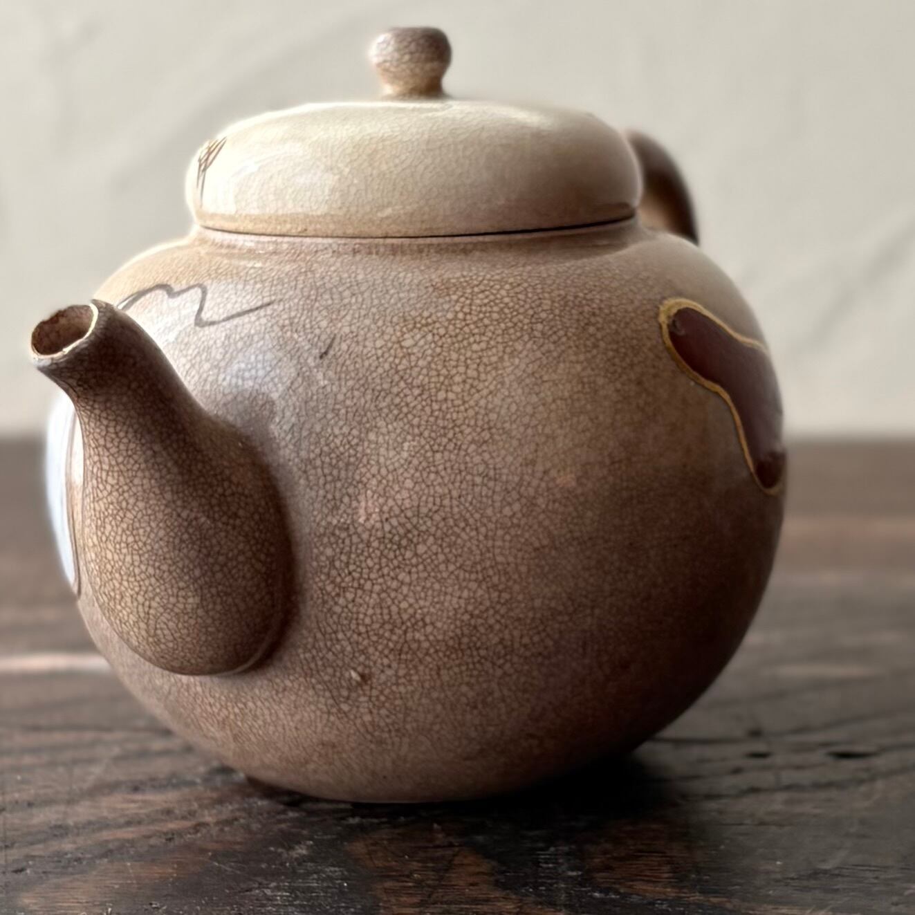 薩摩焼 煎茶器 急須 達磨図 頭上に蜂◆明治期