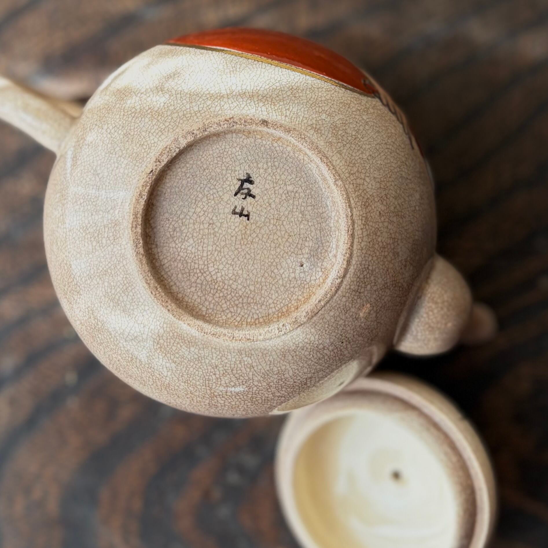 【薩摩焼 煎茶器 急須 達磨図 頭上に蜂◆明治期】