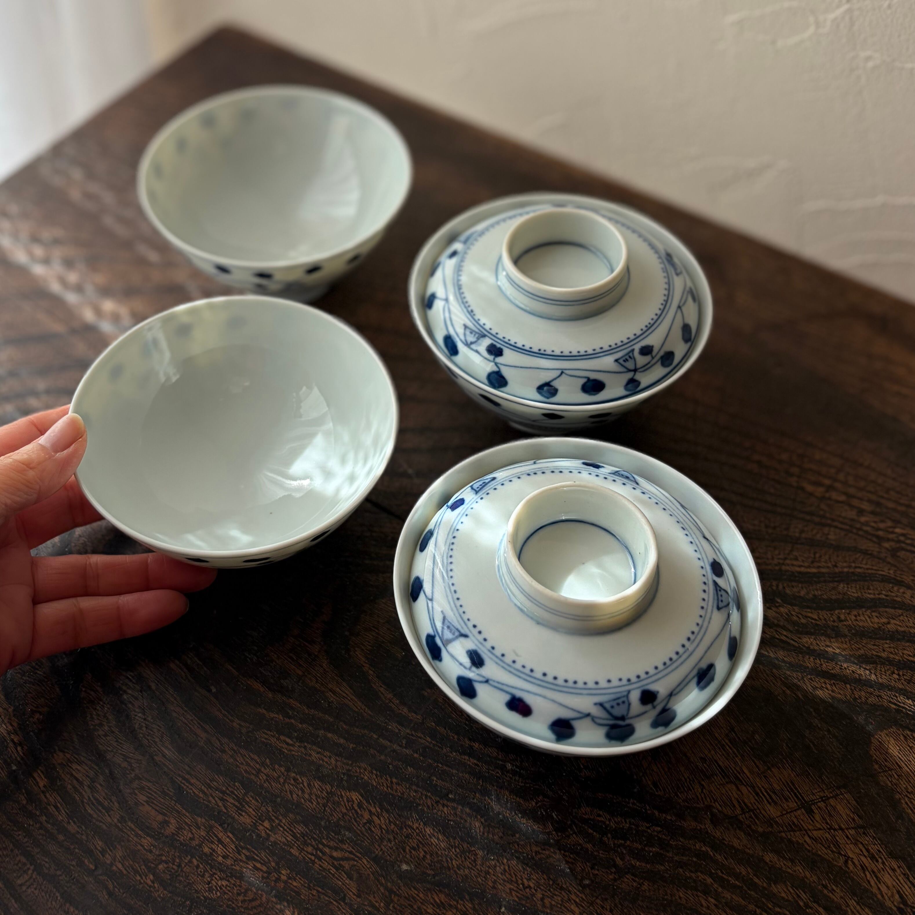【蓋付き飯茶碗2客と蓋なし飯茶碗2客◆大正から昭和初期】