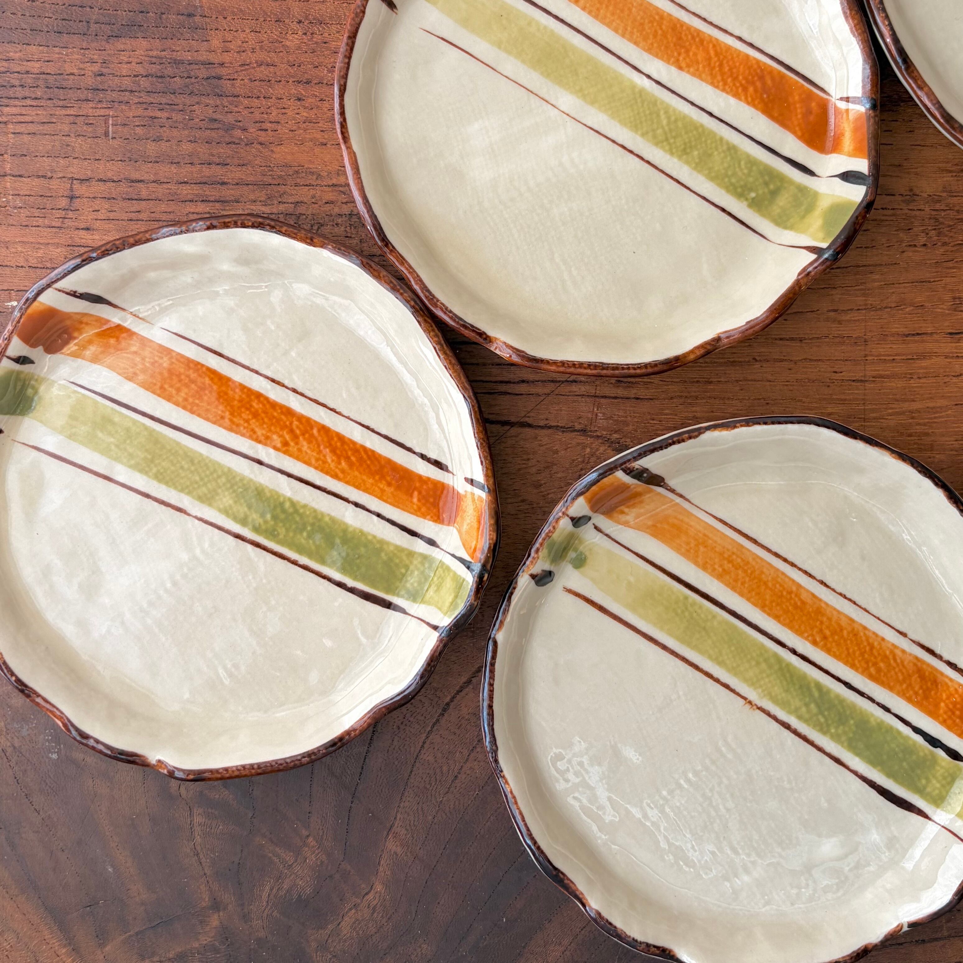 オレンジとグリーンのラインが印象的な小皿。