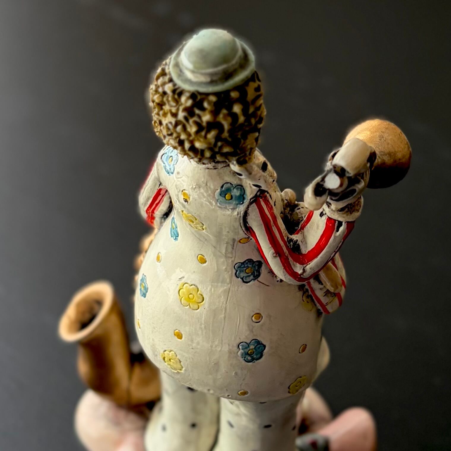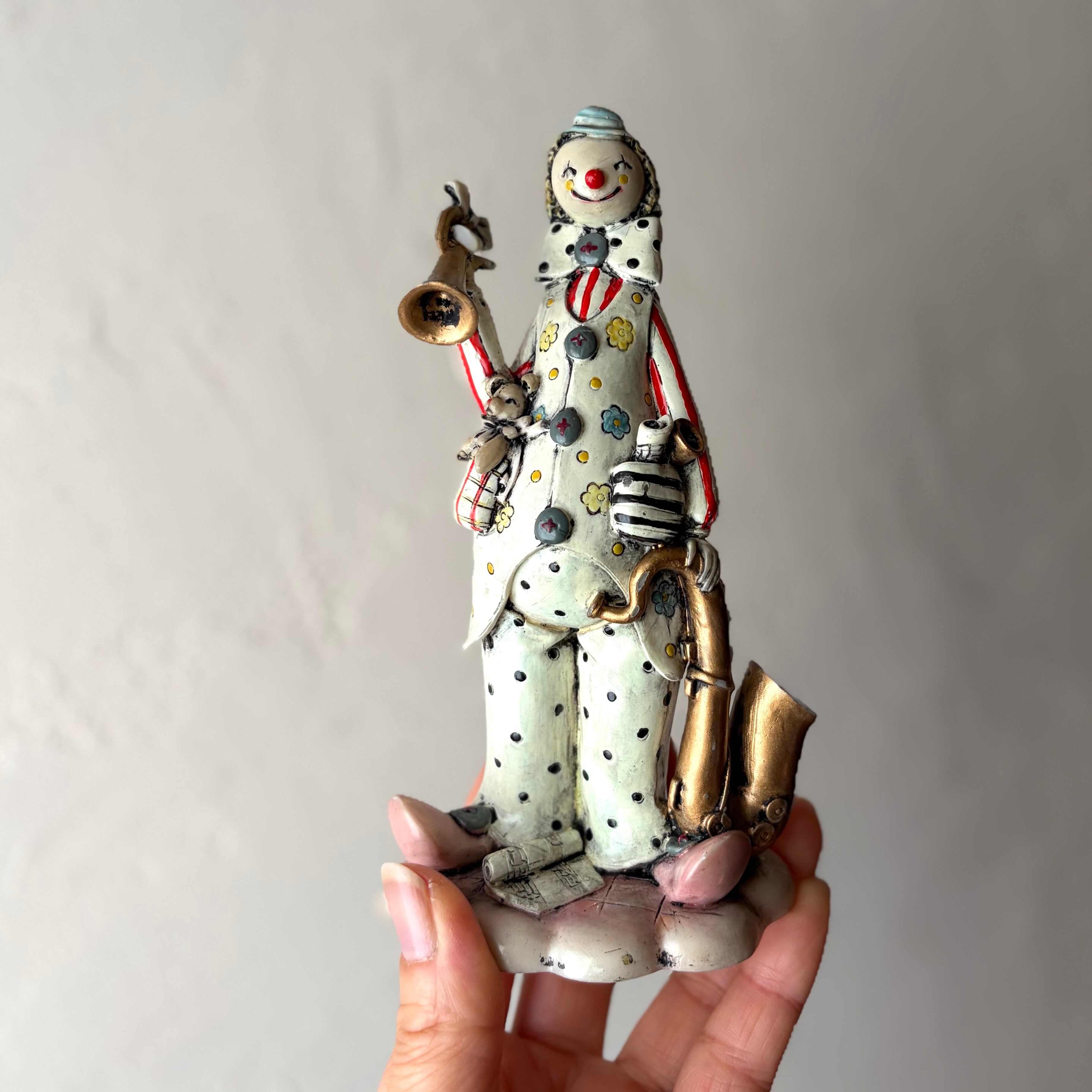 【管楽器を持ったクラウンの置物】