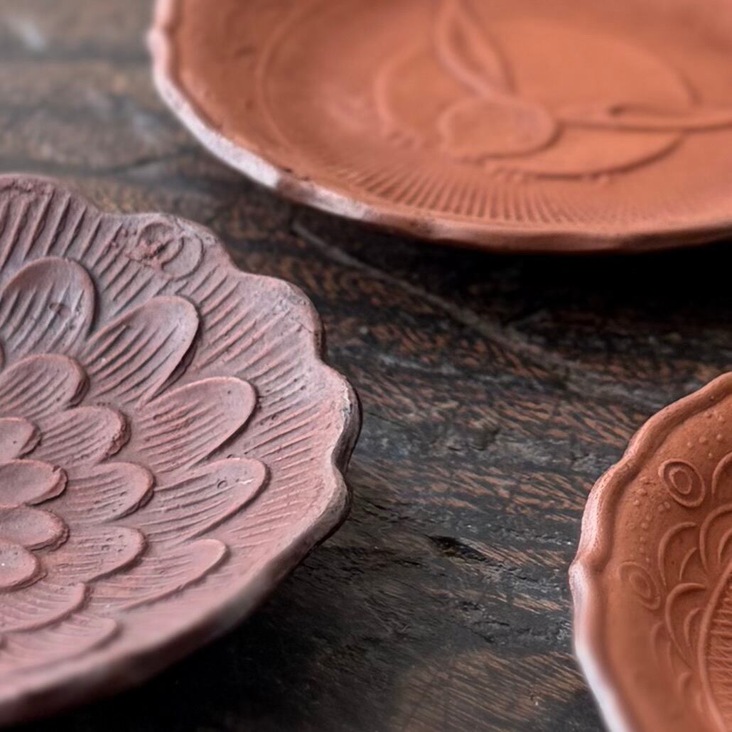 薄くて硬いお煎餅のような質感を持つ小皿。