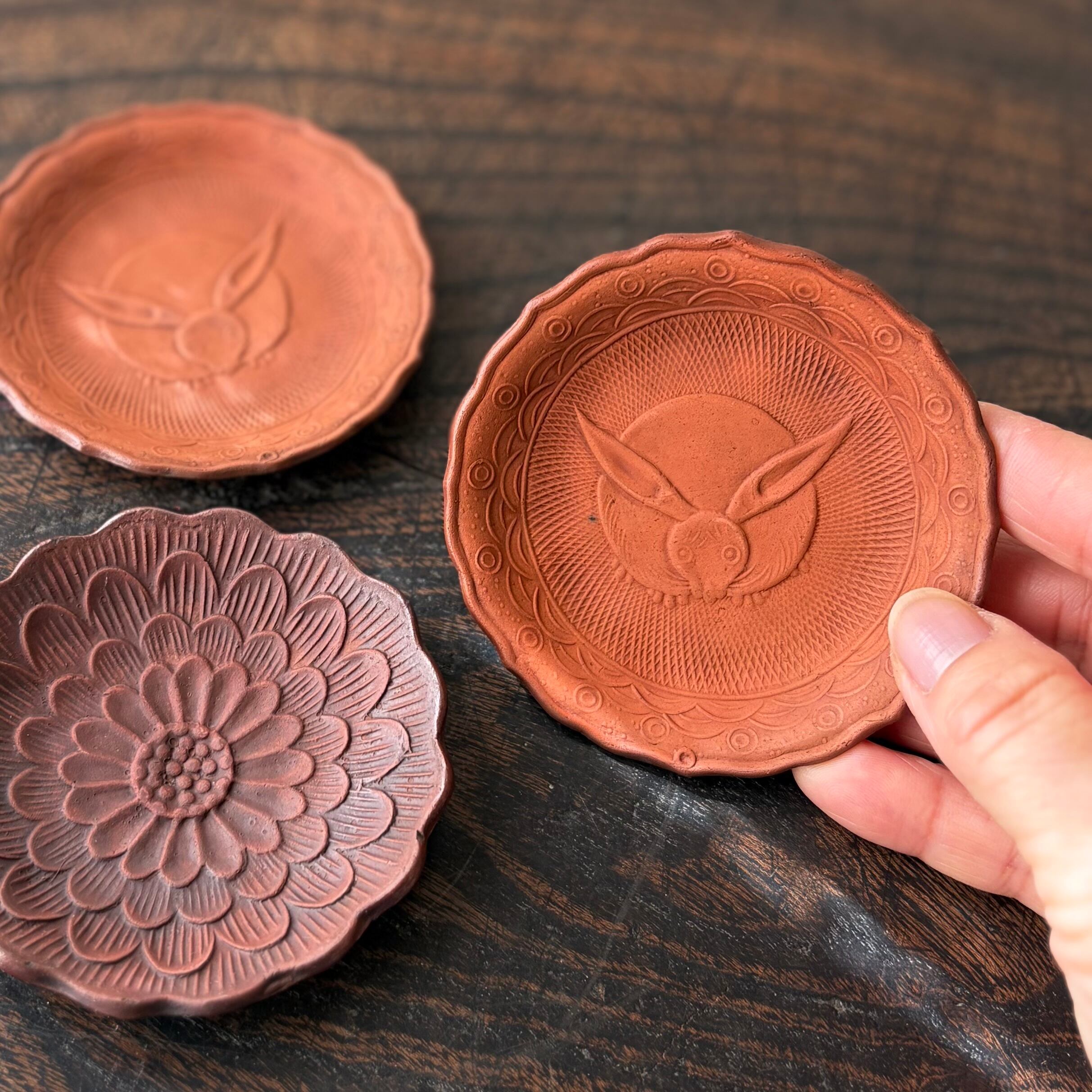 【備前焼 煎餅皿3枚セット 菊花と兎】