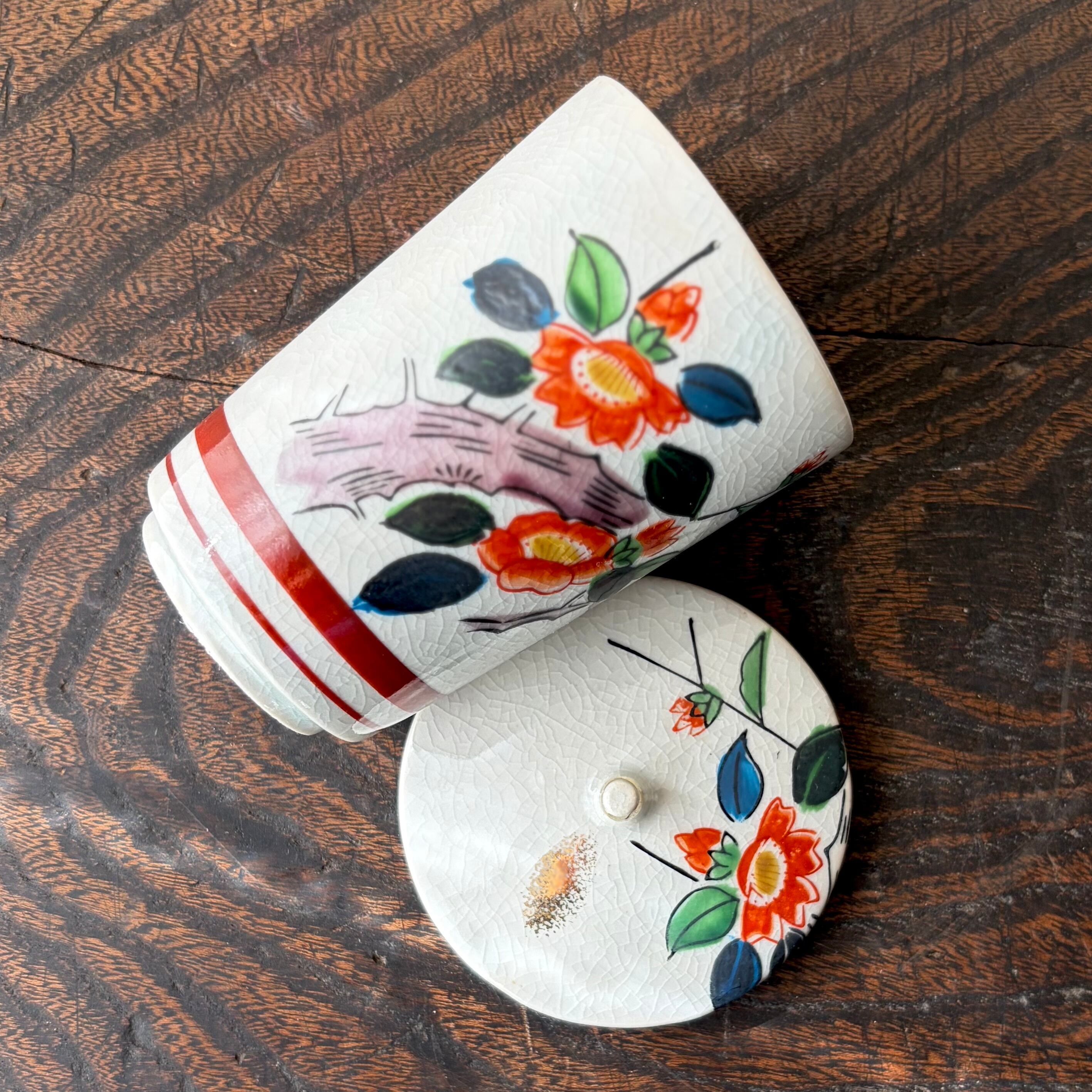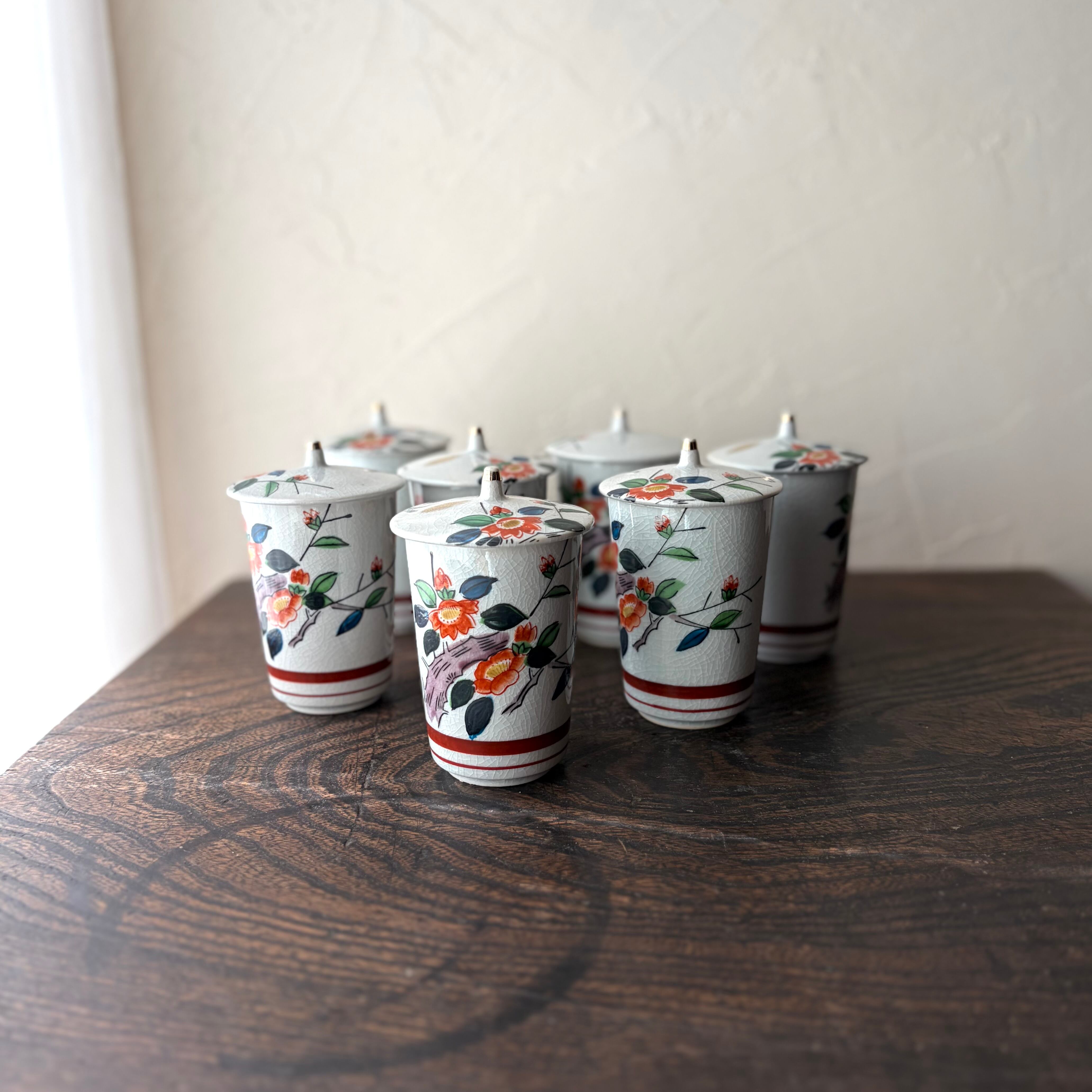 九谷焼 蓋付き湯呑 民芸品 椿◆未使用品 レトロ