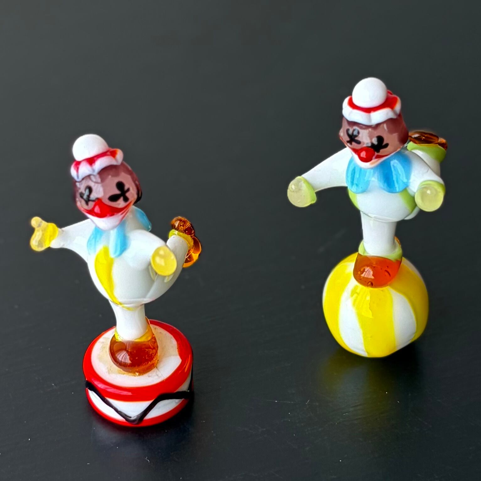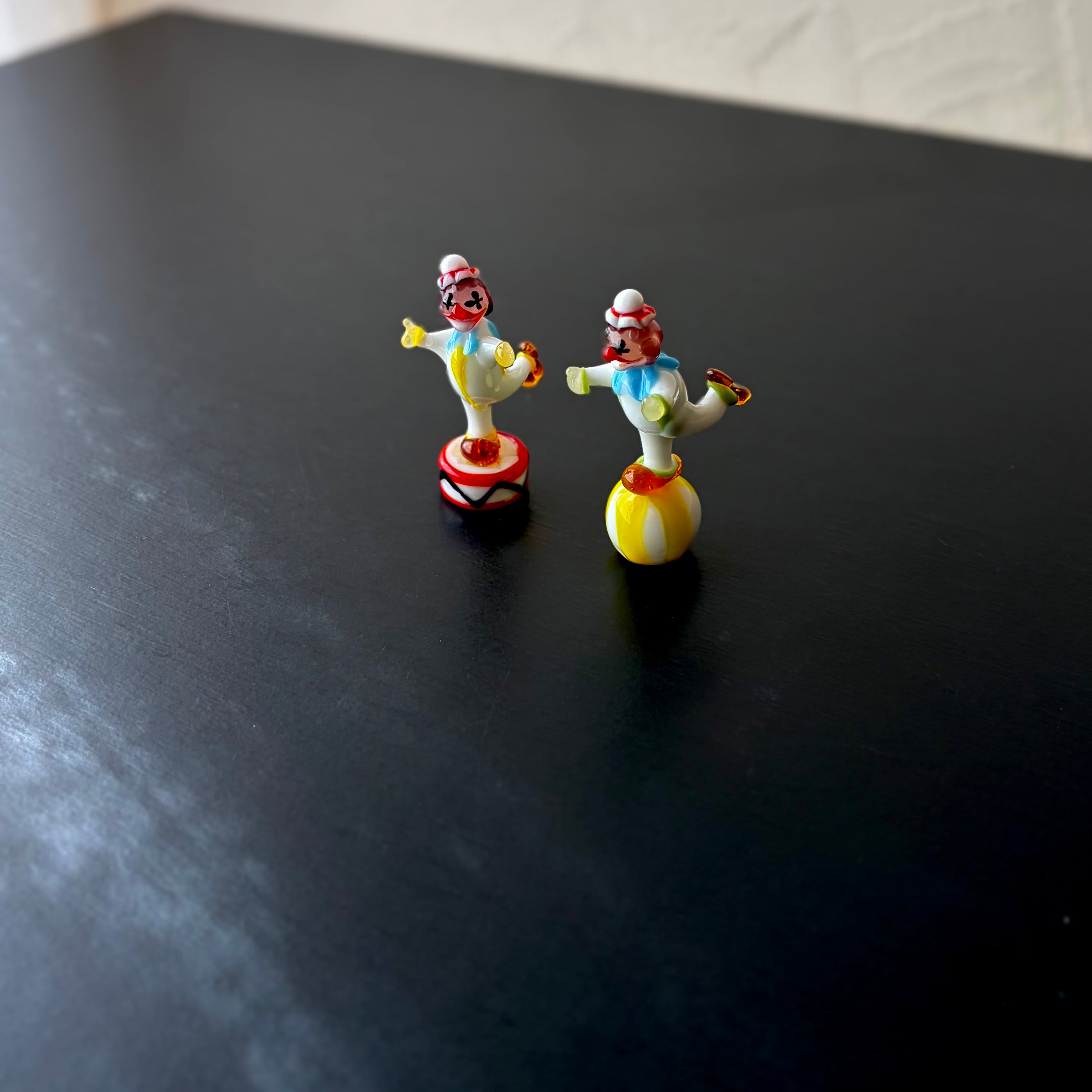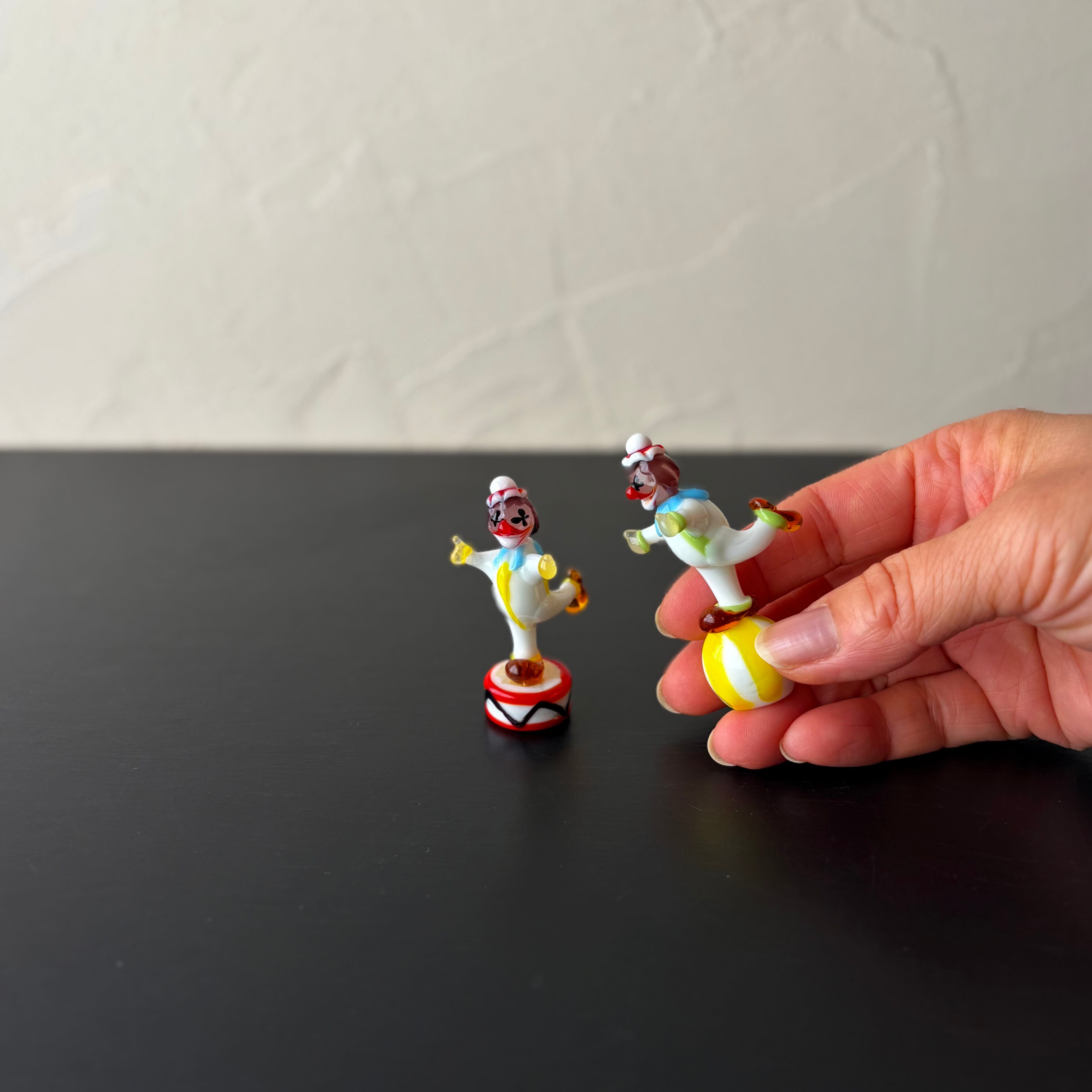 ミニチュア ガラスのピエロ クラウン2体セット