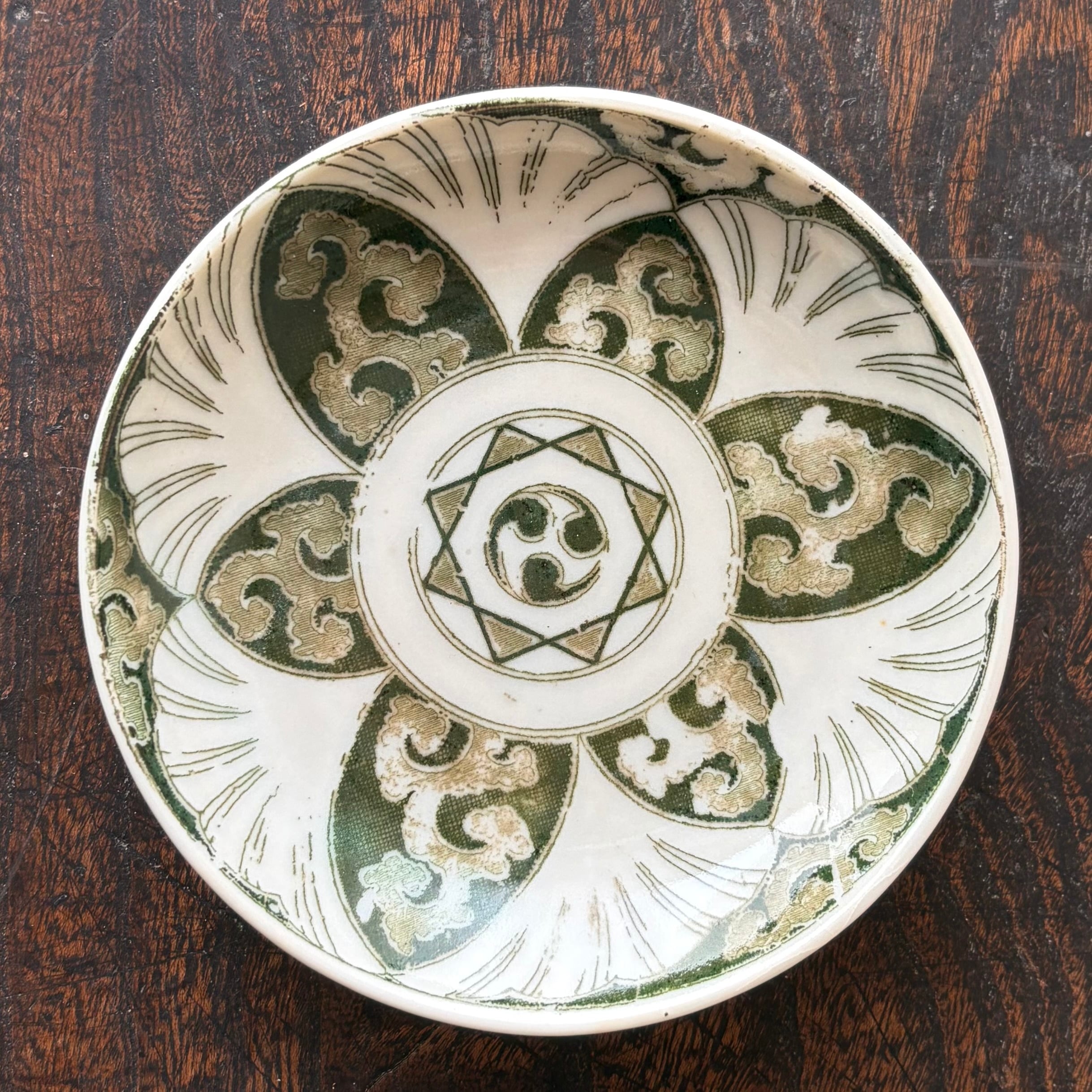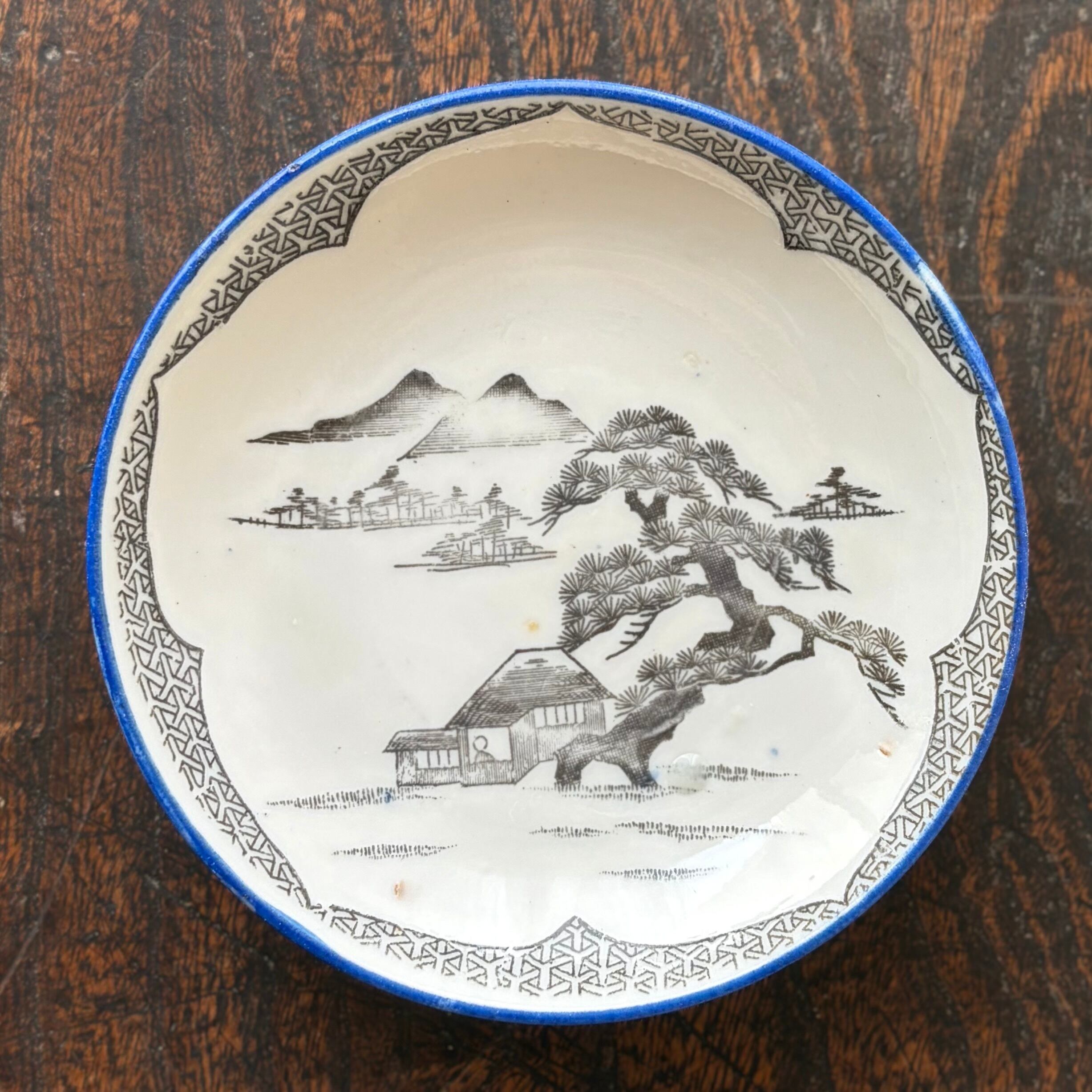 ・全て異なる絵柄が施されています。それぞれに印刷のズレや重なり、色滲みや歪みが見られますが、古い器の手作りならではの魅力ととらえ愉しんでいただけたらと思います。