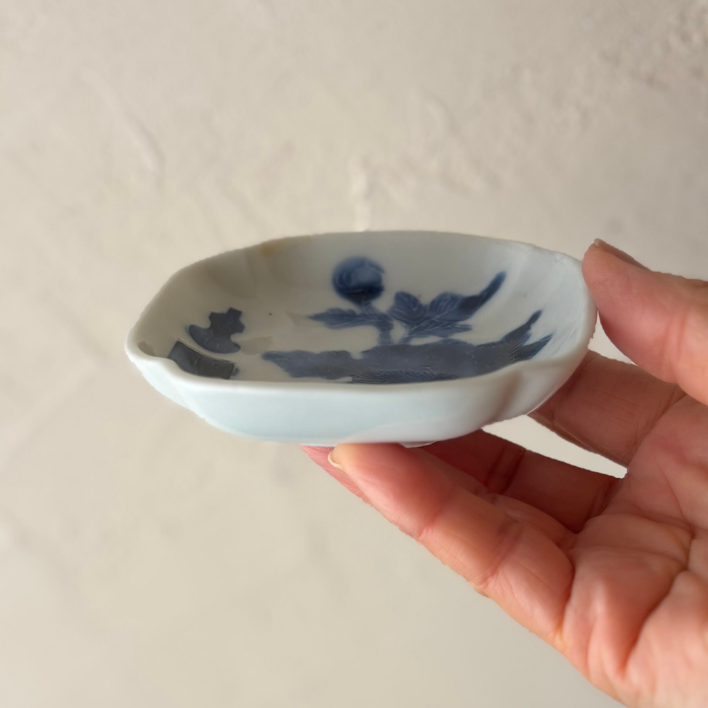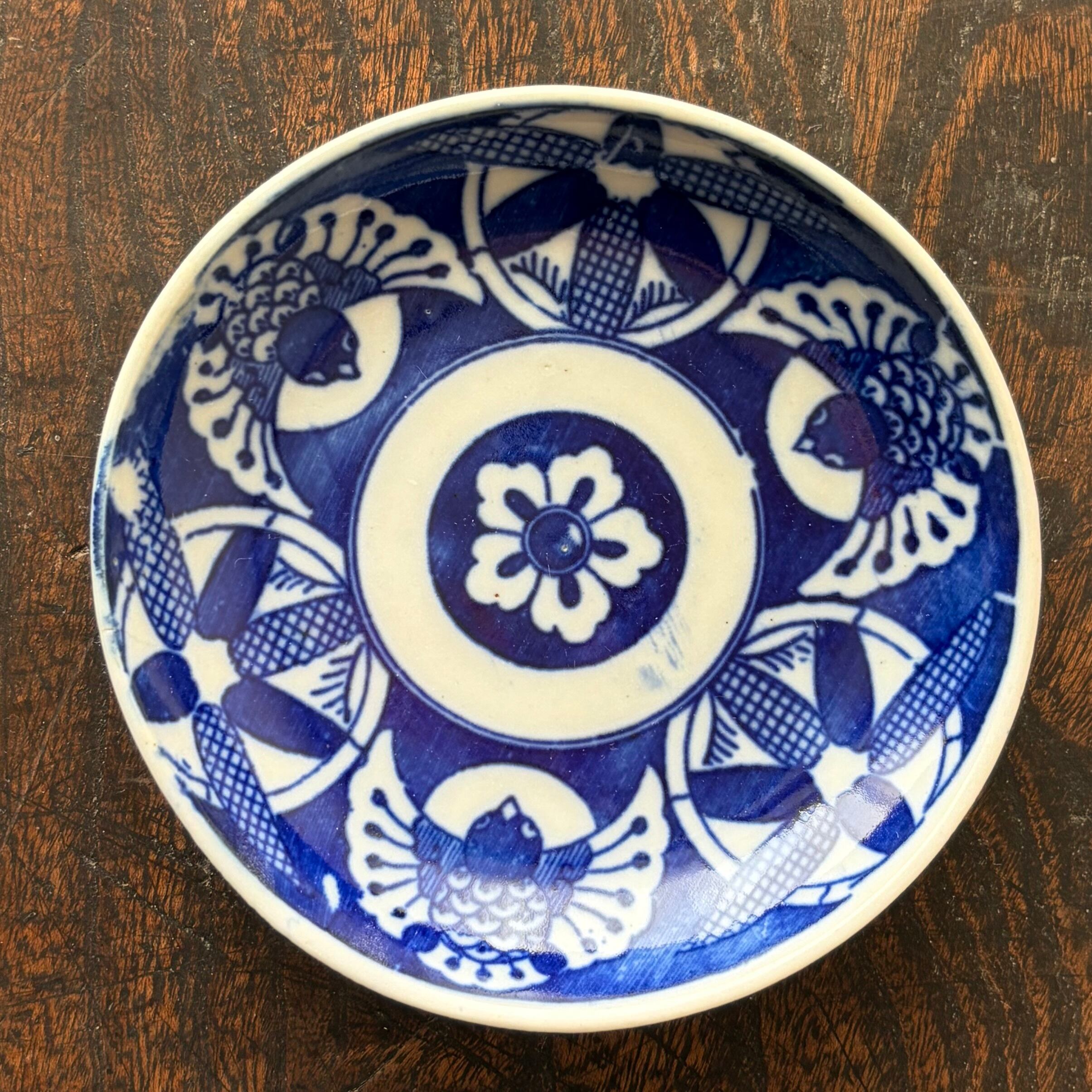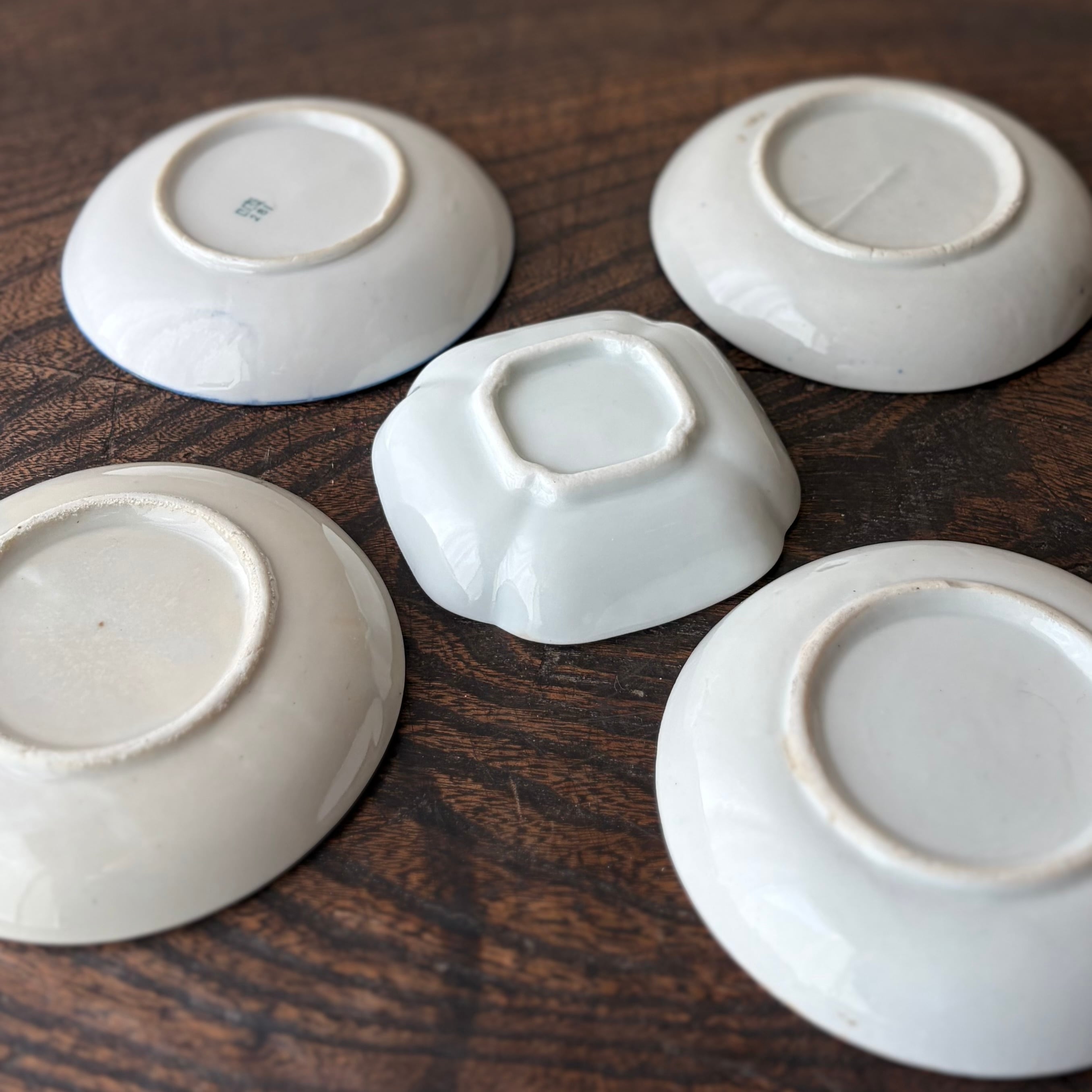 全て異なる絵柄が施された趣ある印判小皿の5枚組。