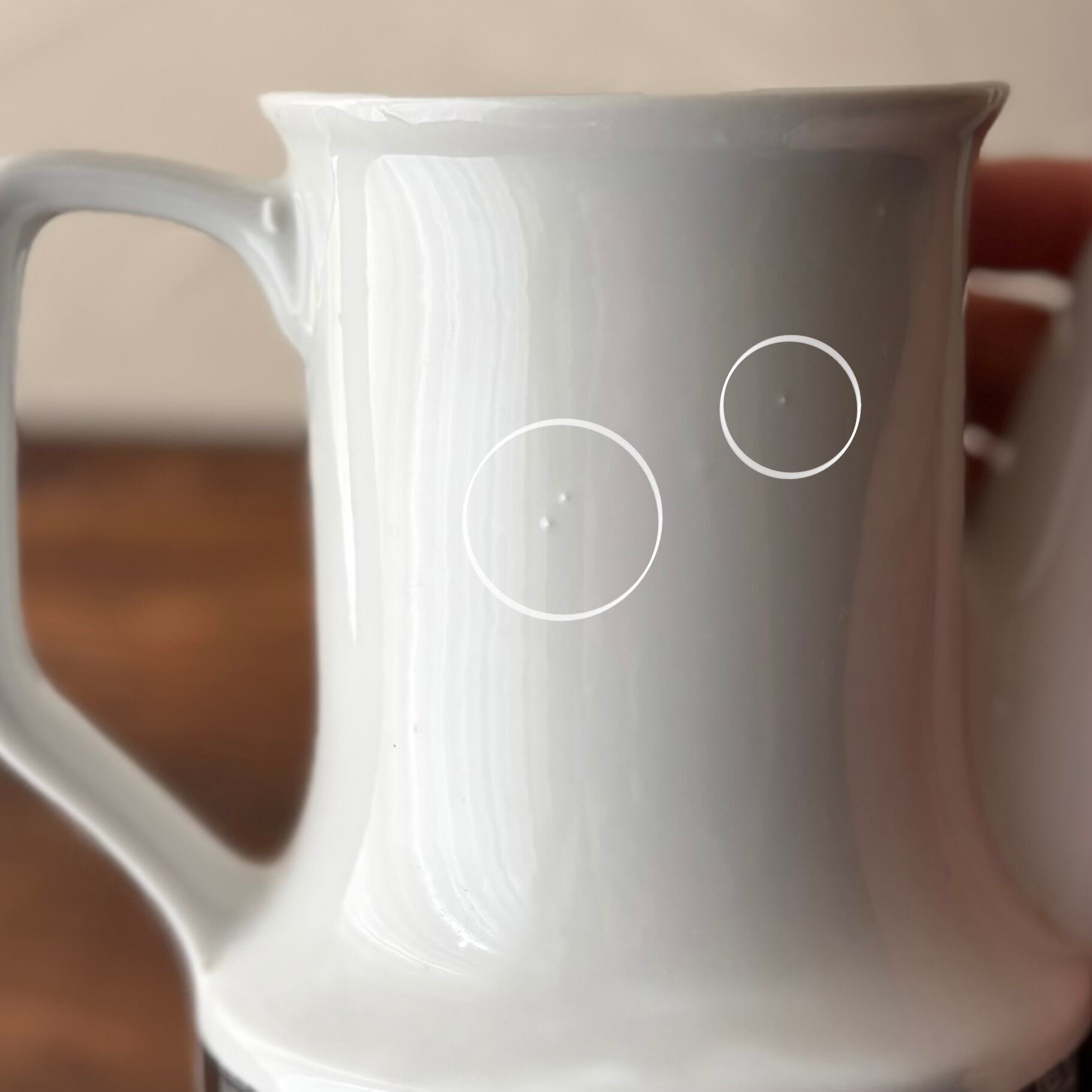 ・製造過程での小さな傷や色ムラ、黒点やフリモノ、ピンホールなどの窯傷(焼成時の傷)が見られます。