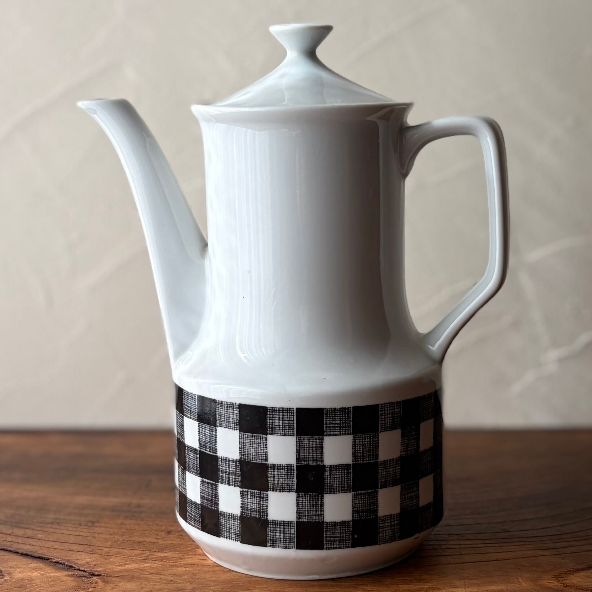 【ティー/コーヒー ポット 1リットル◆ギンガムチェック◆昭和レトロ 輸出用】