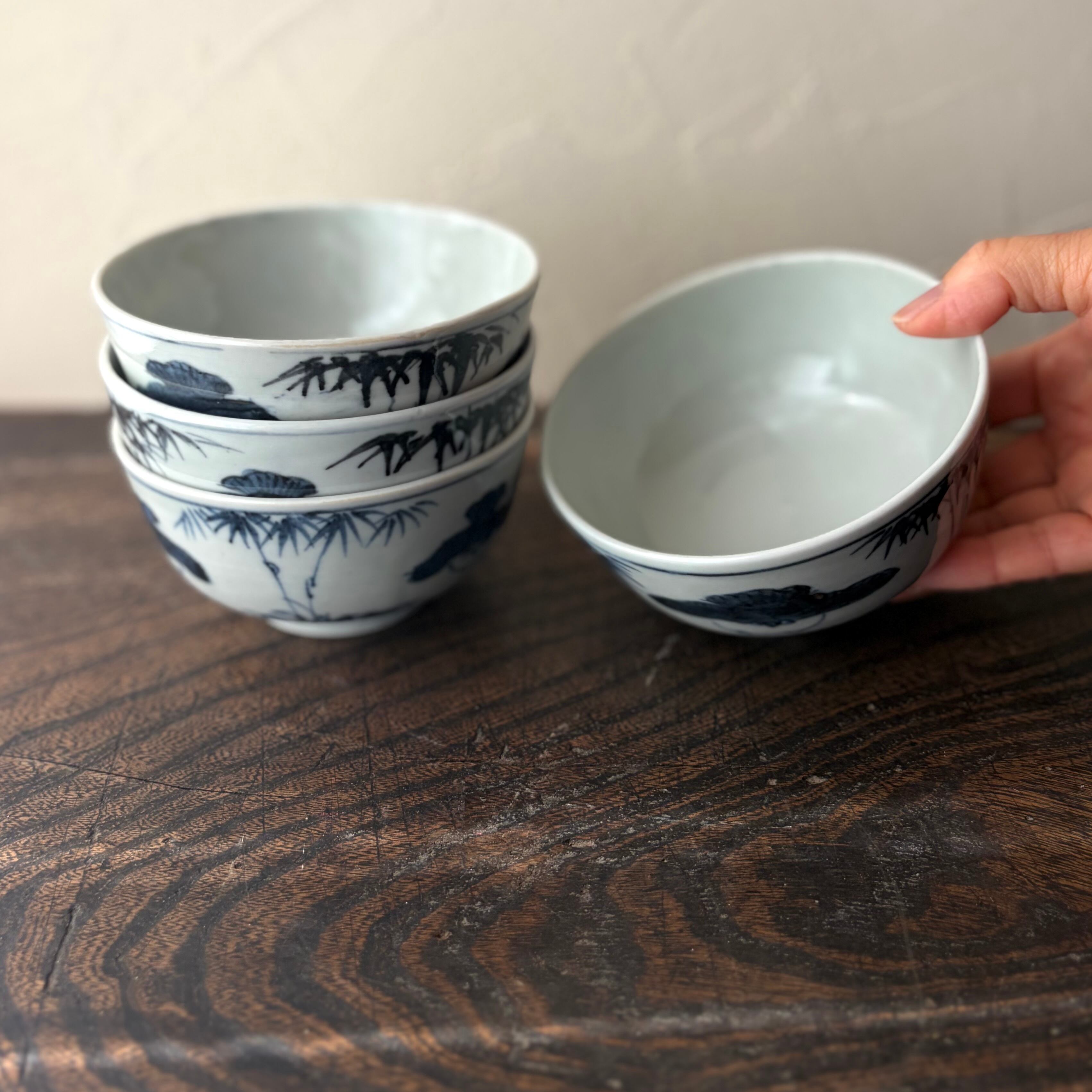 ふくら雀の小丼1点【C】薄墨◆ 染付 明治期