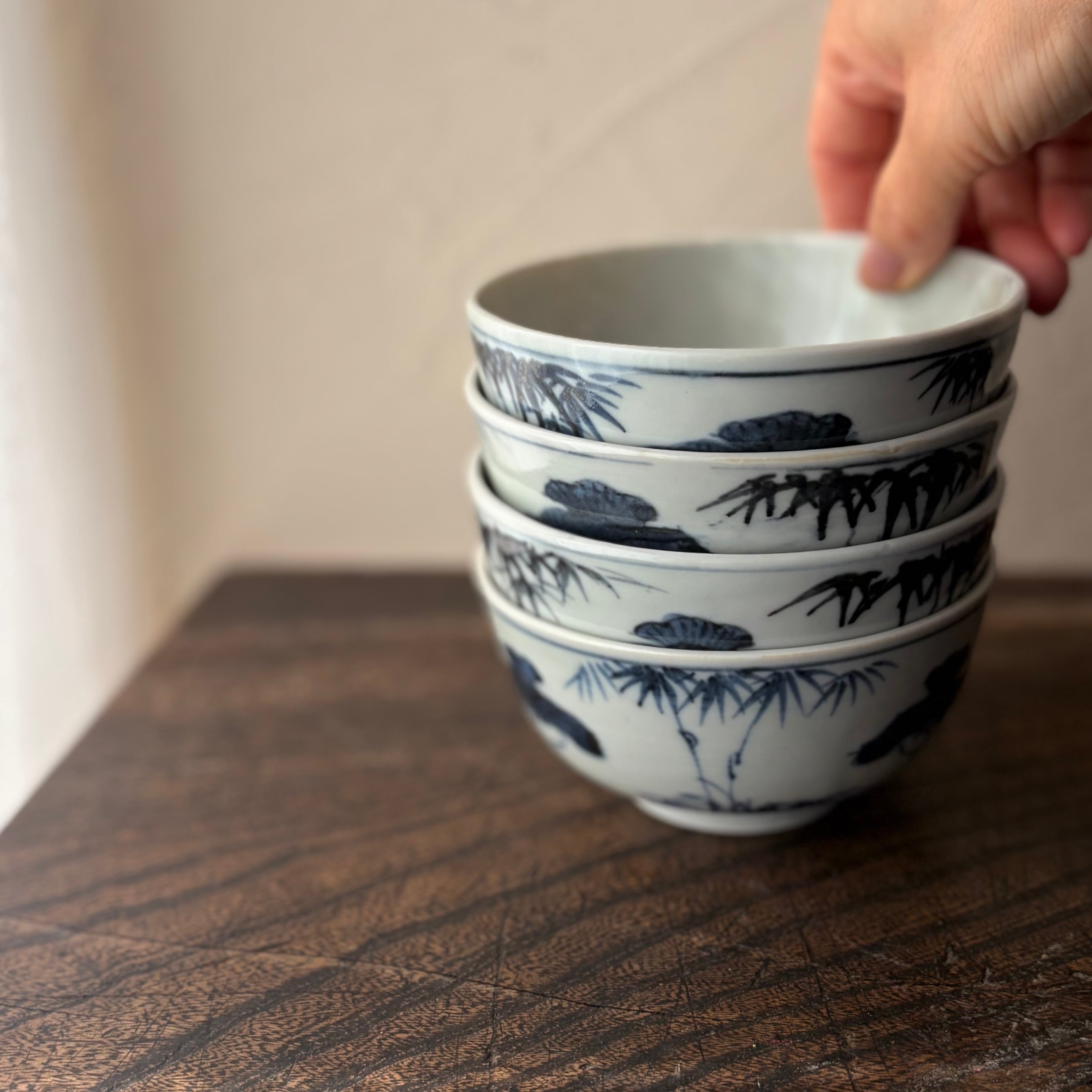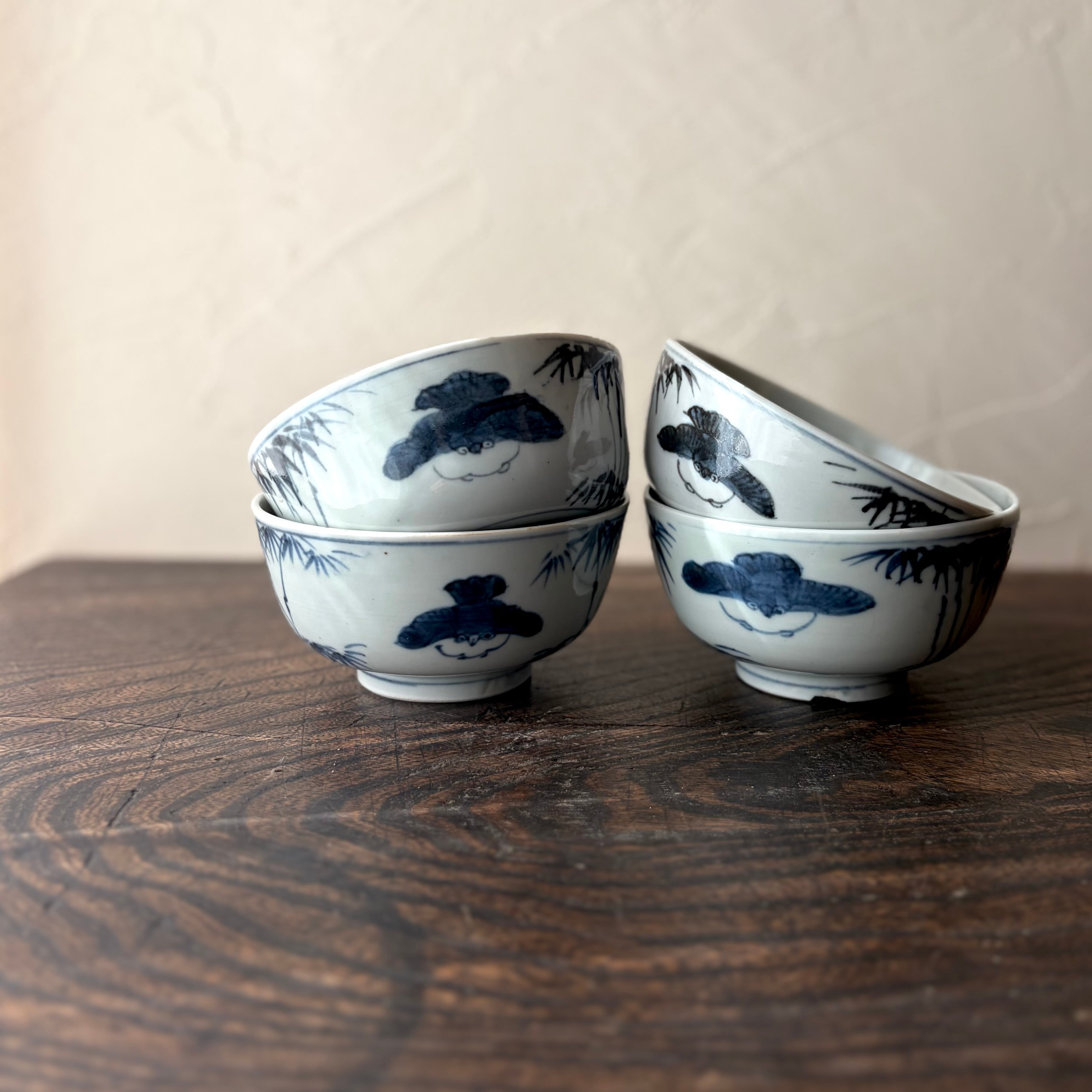 【ふくら雀の小丼《C》薄墨◆ 染付 明治期】