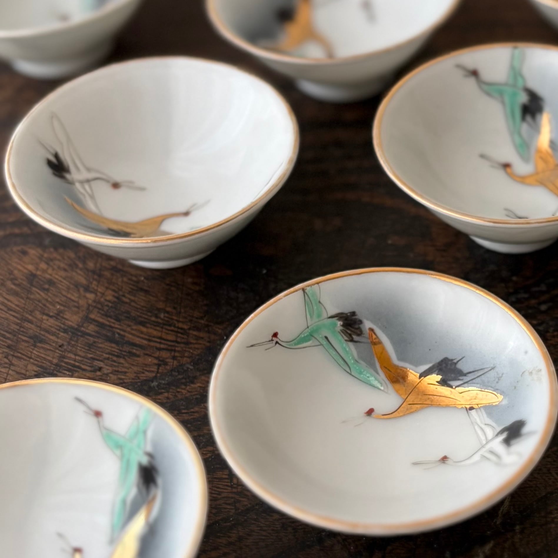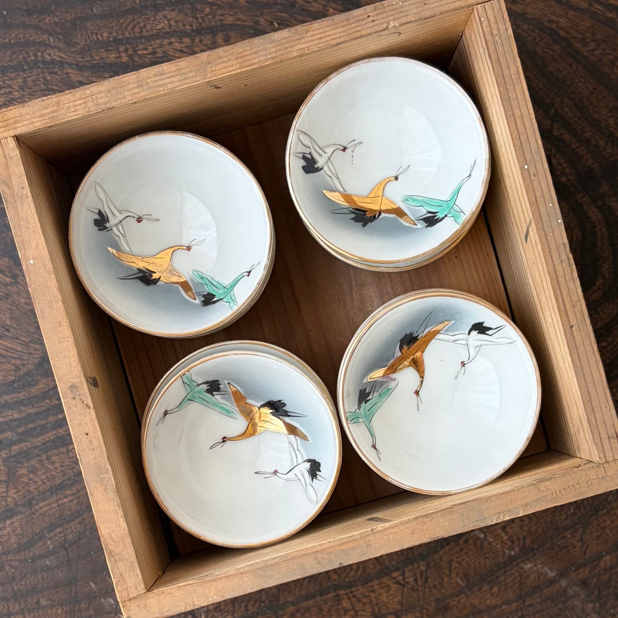 【三羽鶴 盃 16個セット 木箱付 大正期】