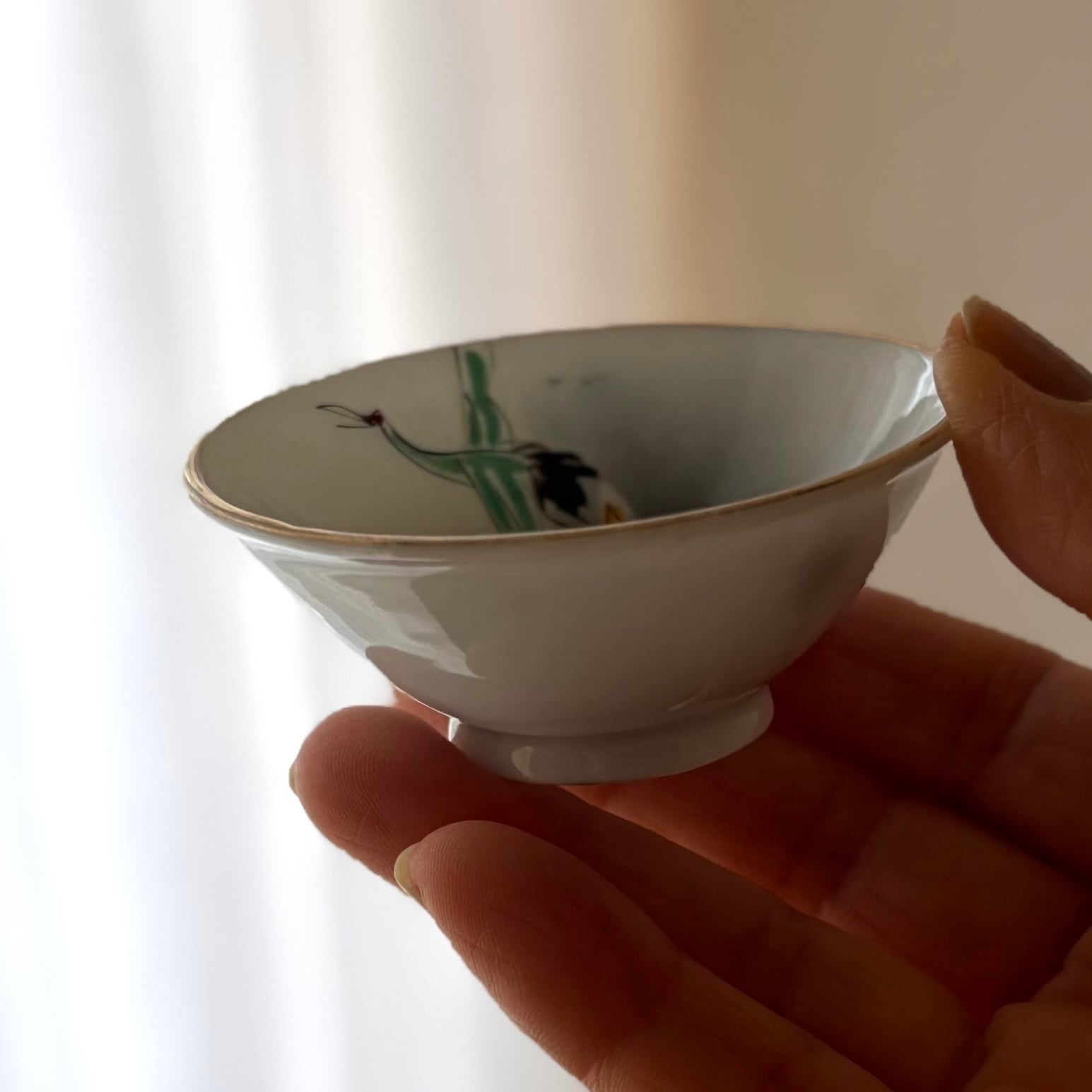 ・大正期に作られた盃です。黒点、ピンホール、ニュウなどの窯傷(焼成時の傷)がある個体がございます。また、すべての工程が手作業で行われているため、サイズや色合いに微妙な違いがございますが、古いものの持つ特性とお愉しみください。