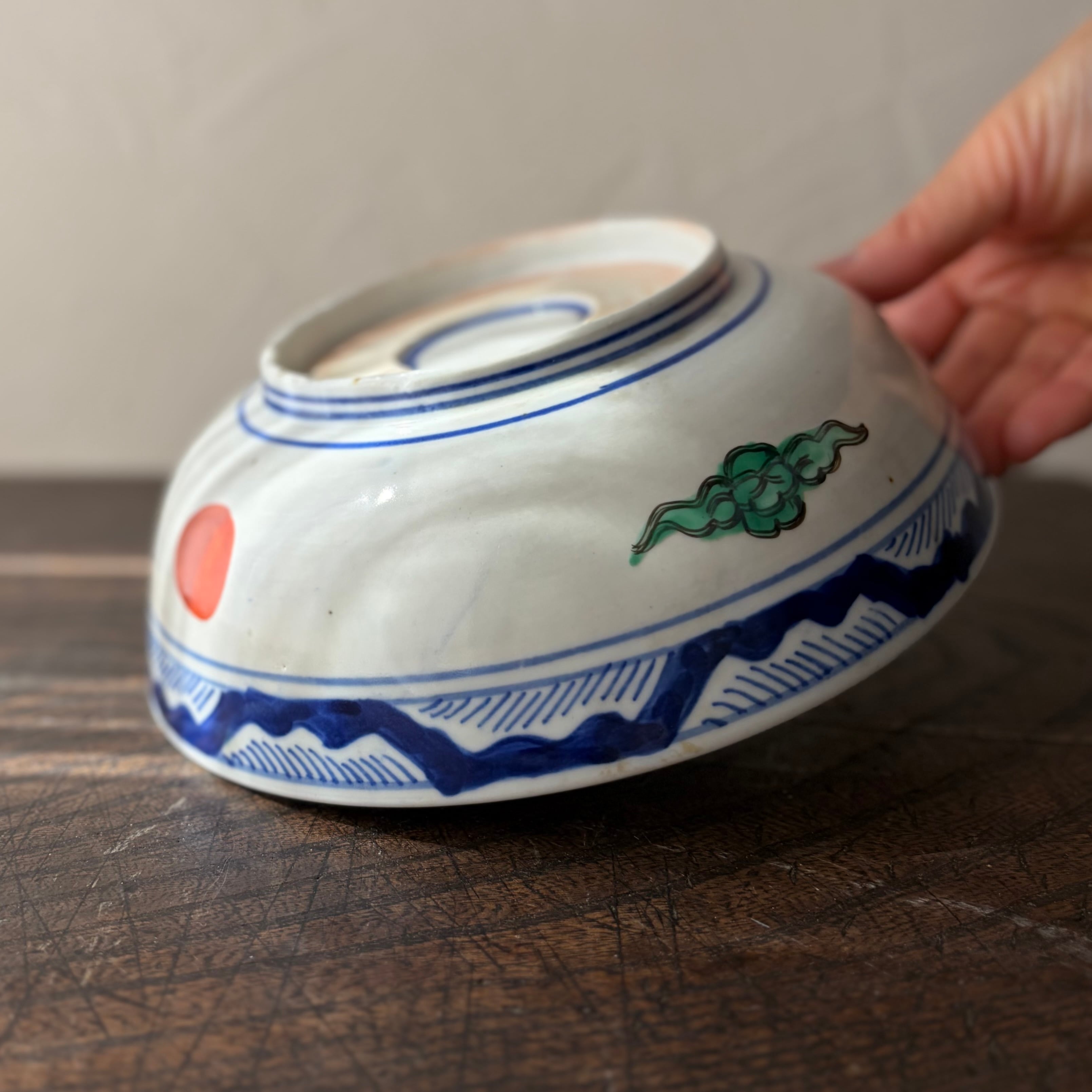 色絵6寸鉢(大)吉祥文様◆明治期 貫入あり