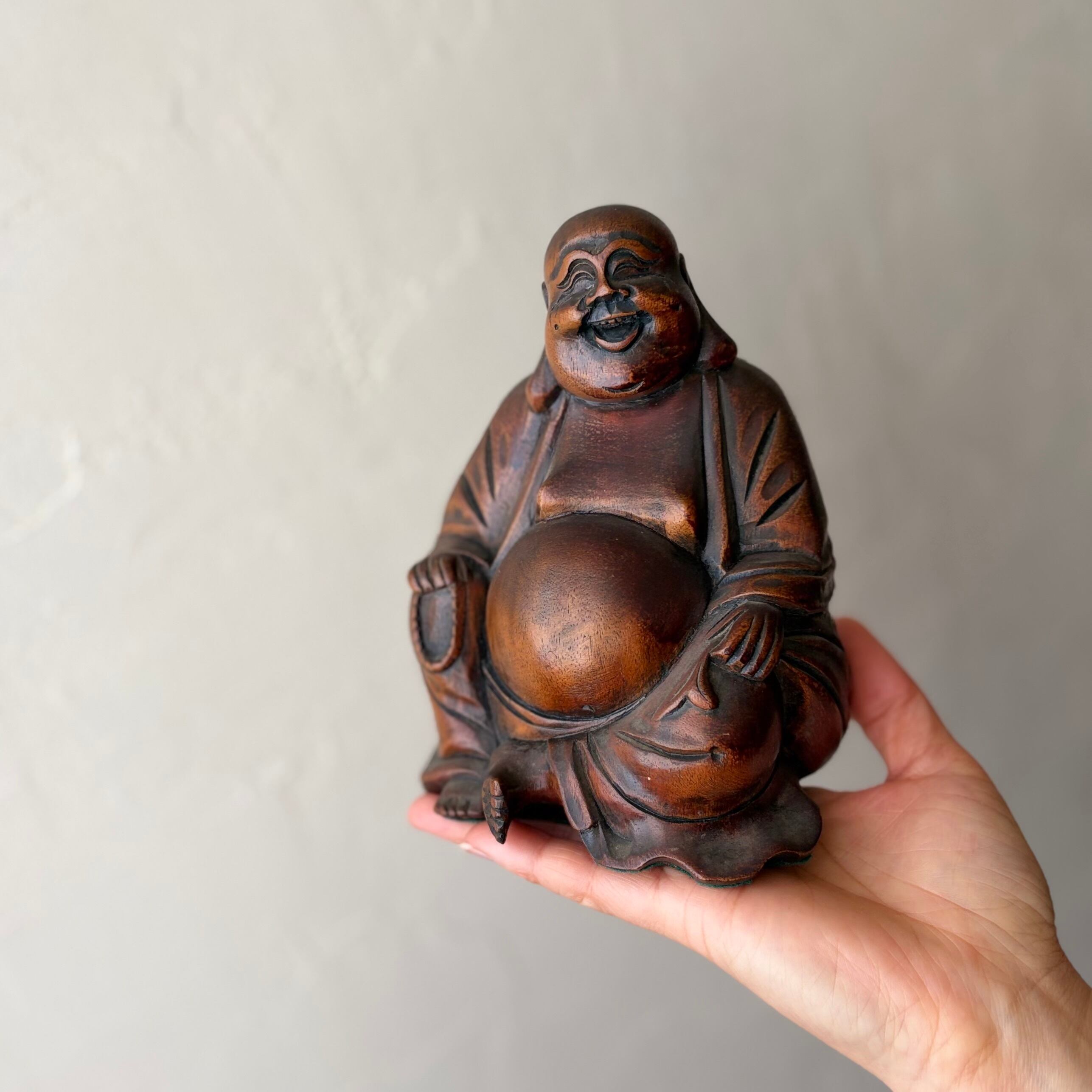 【木彫りの布袋様 七福神 置物 縁起物】