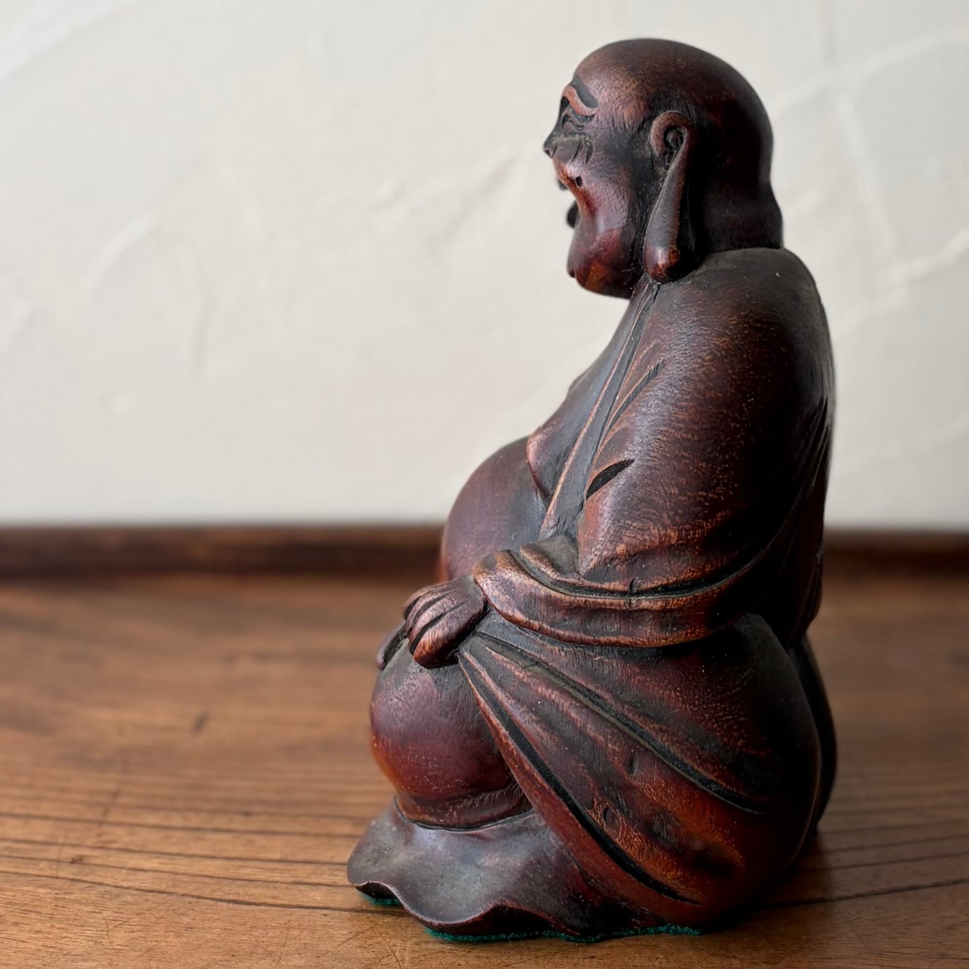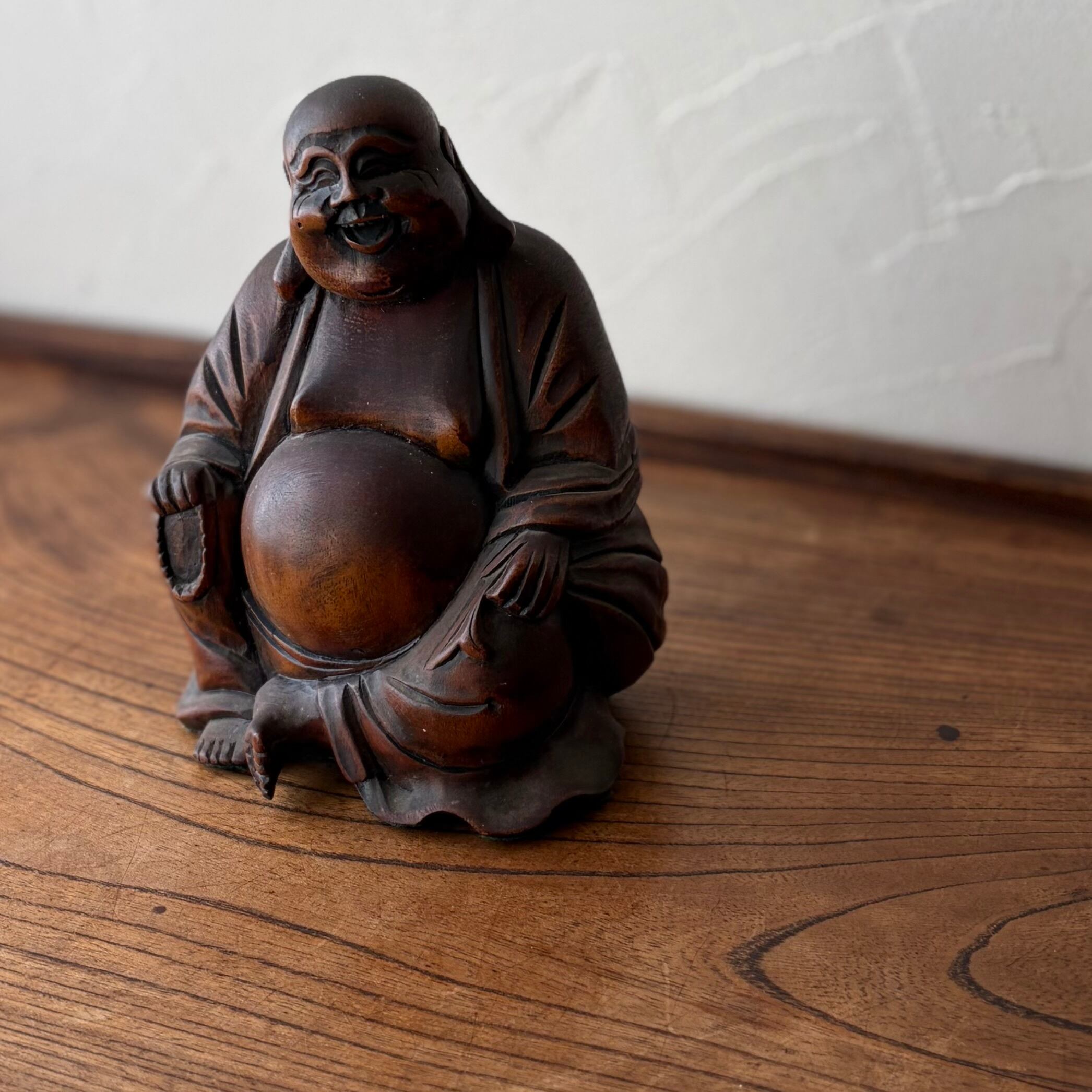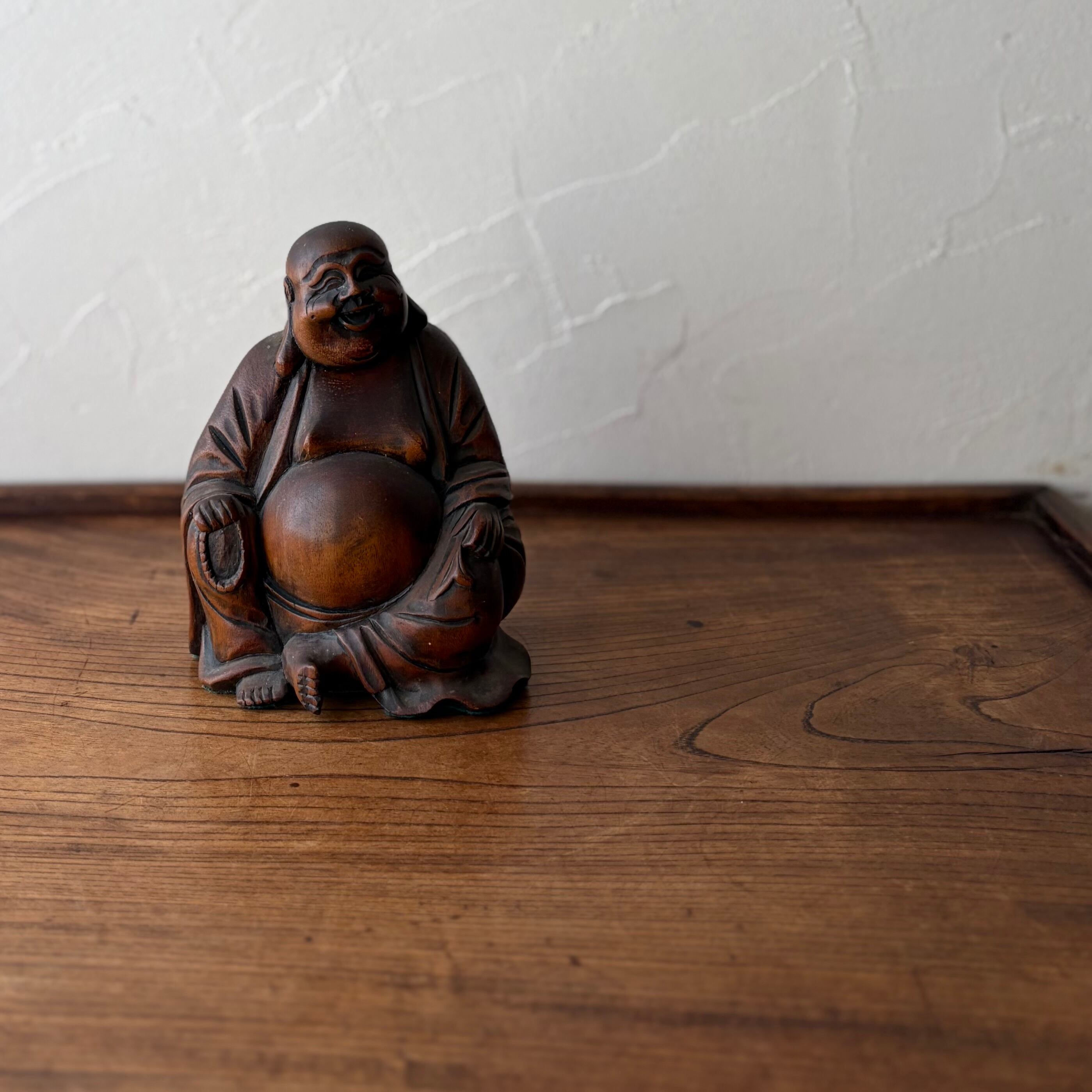 木彫りの布袋様 七福神 置物 縁起物