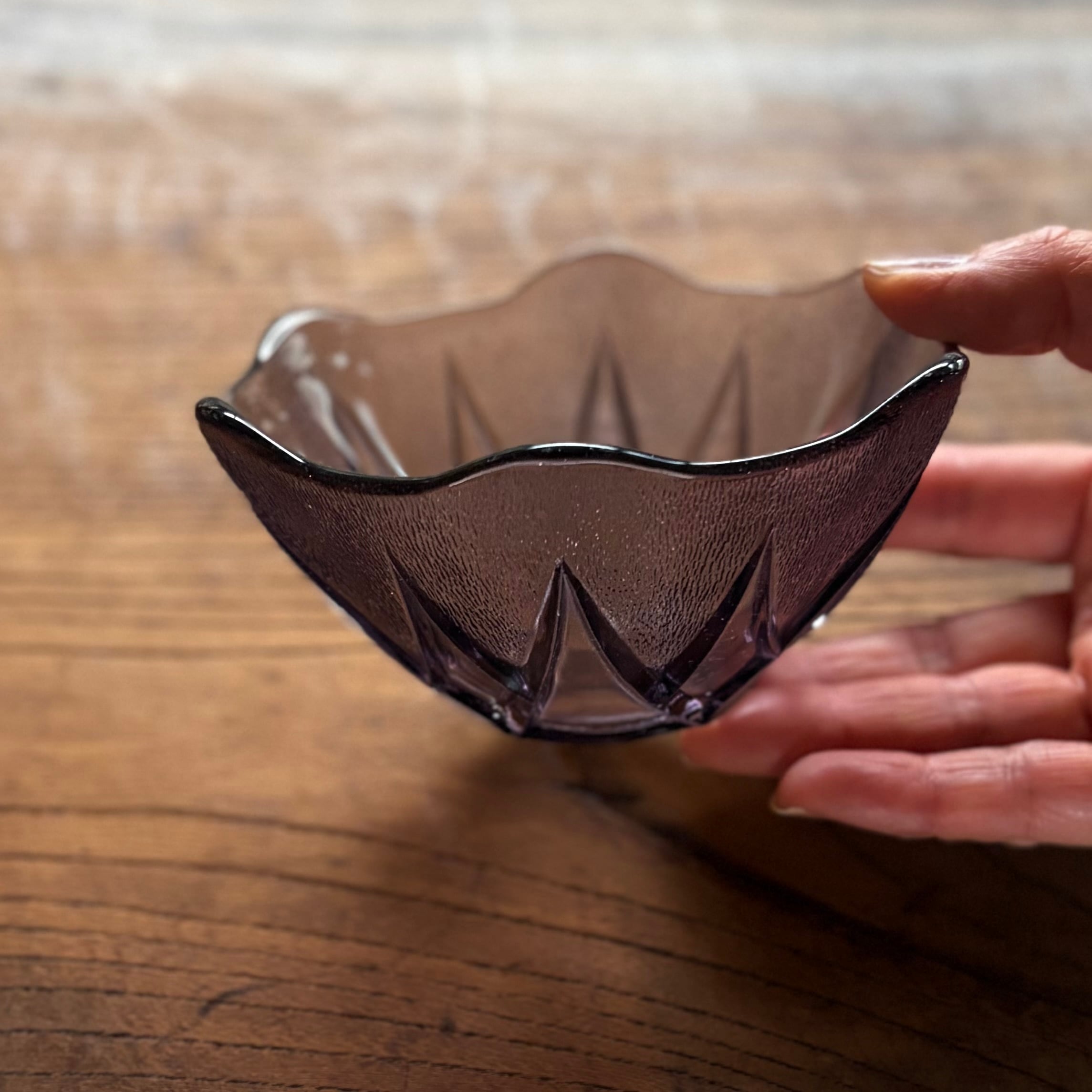 【ガラスの器 6角形 デザートボウル プレスガラス◆昭和レトロ】