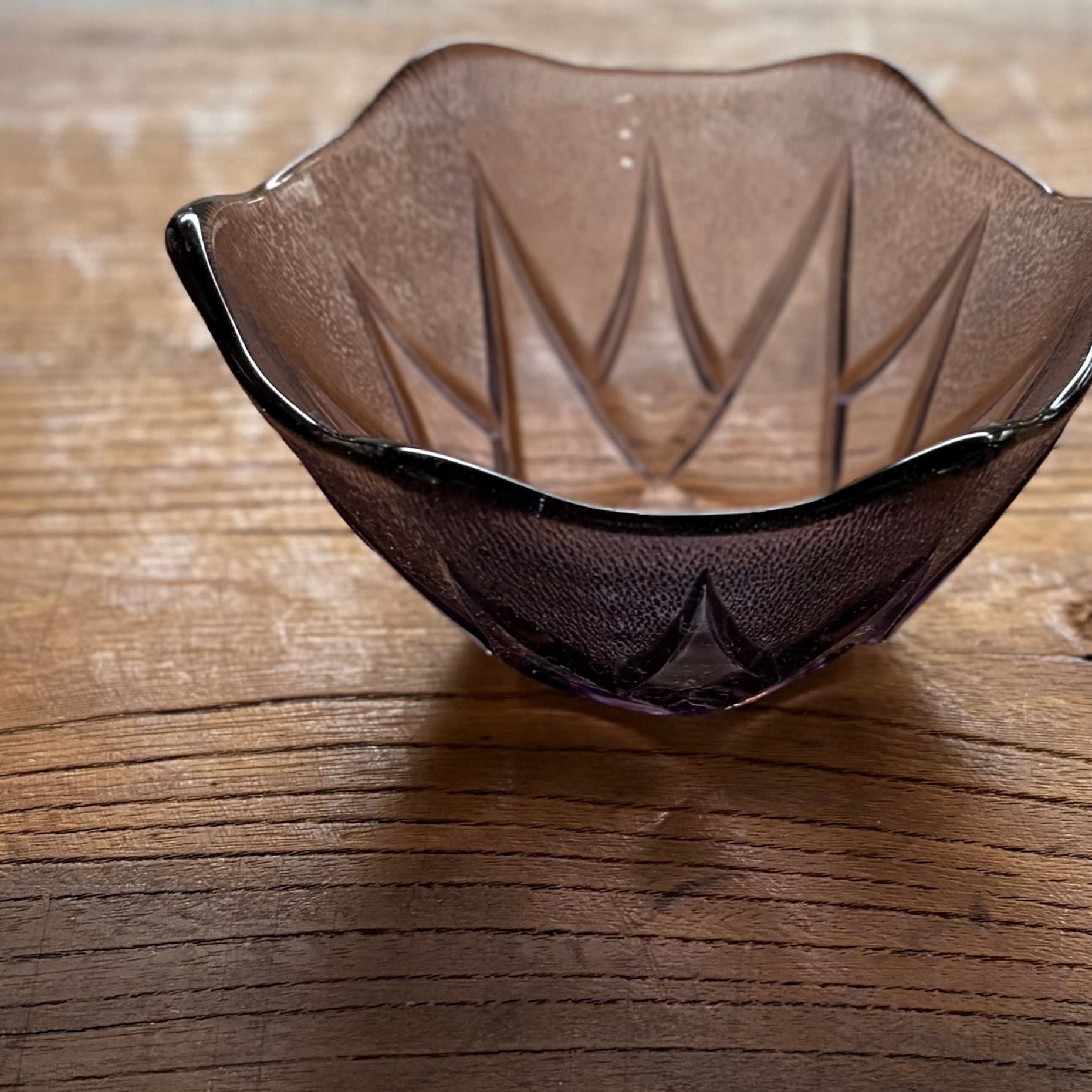 6角形にデザインされた深さのあるガラスの器。