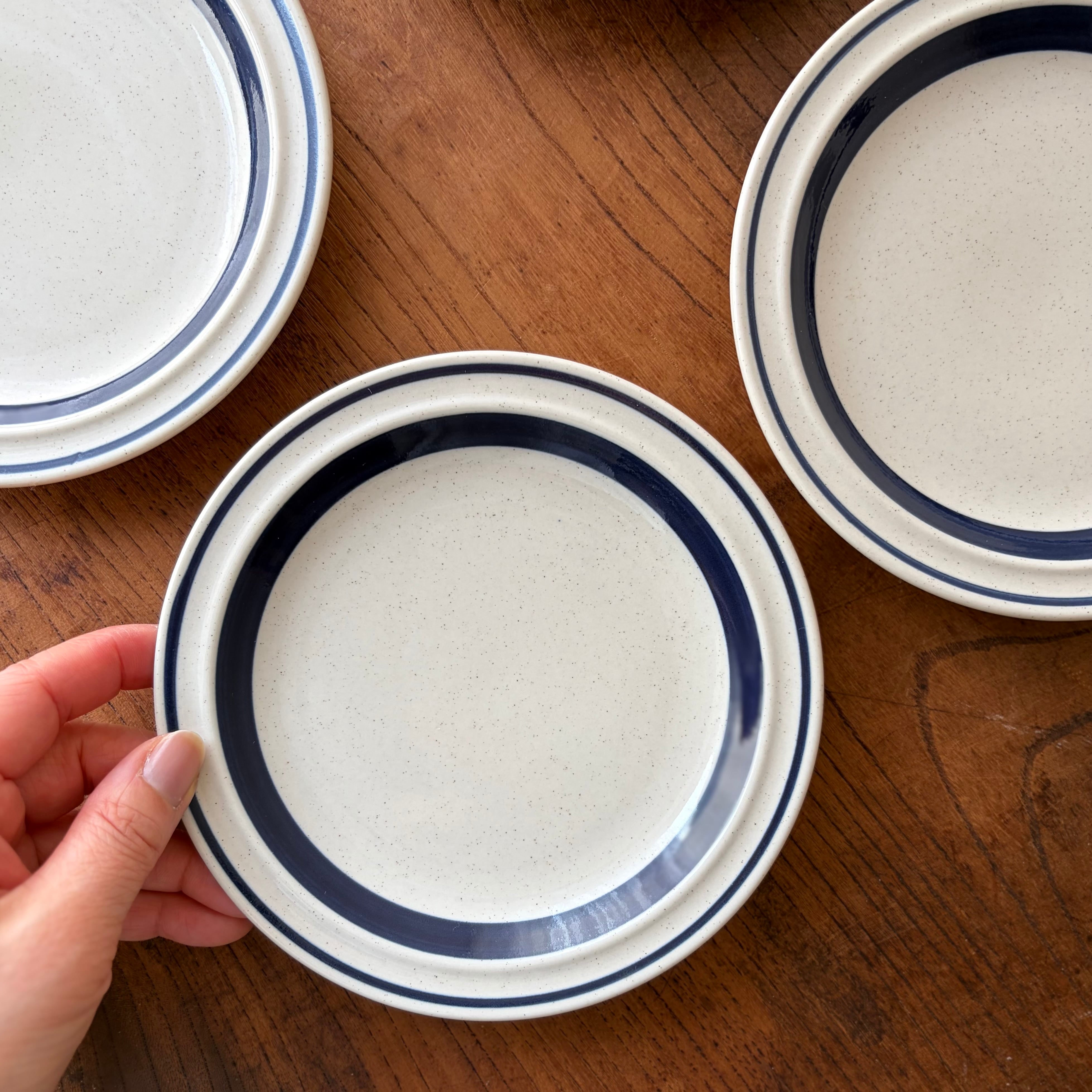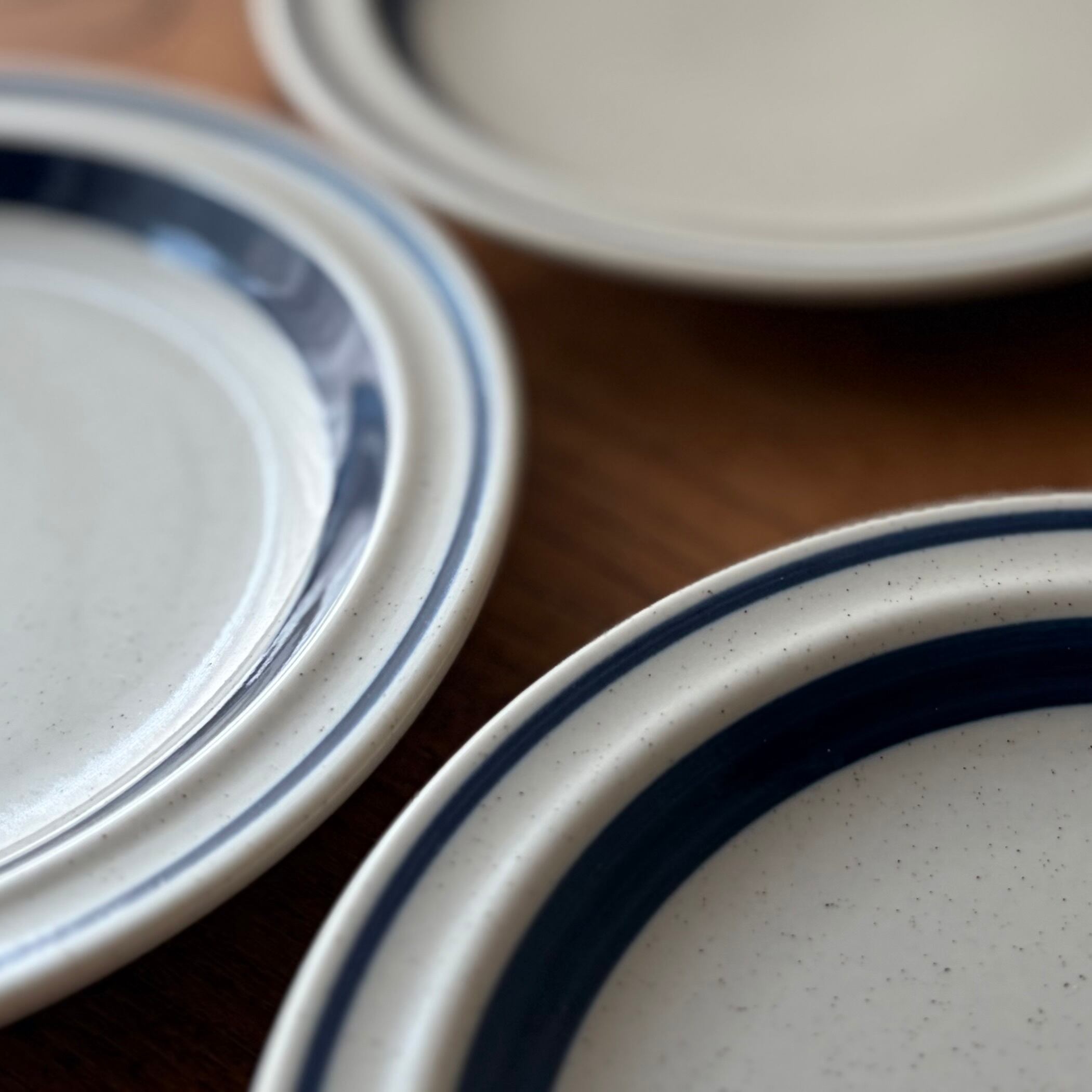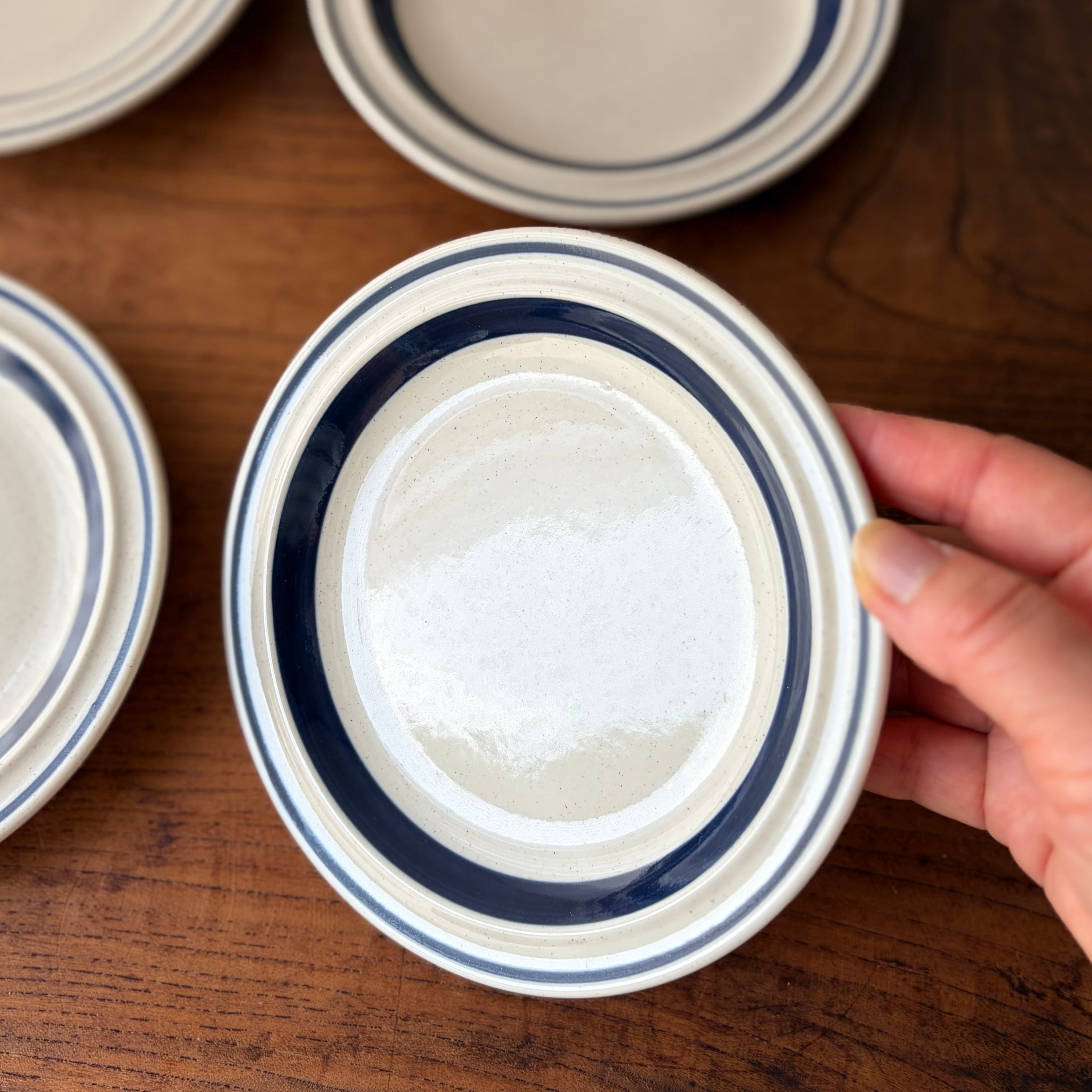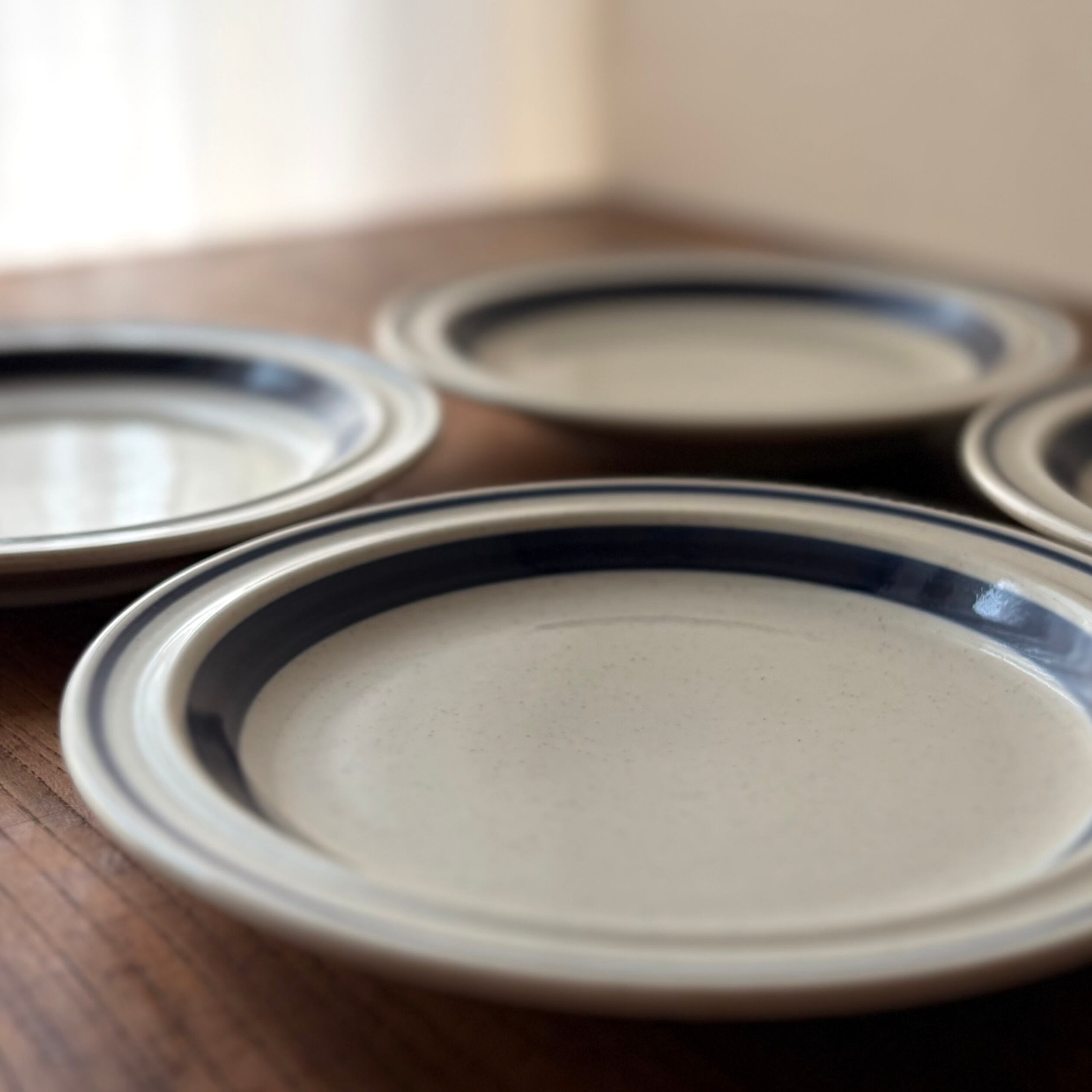 ストーンウェア◆ ケーキ皿4枚セット 紺色ライン