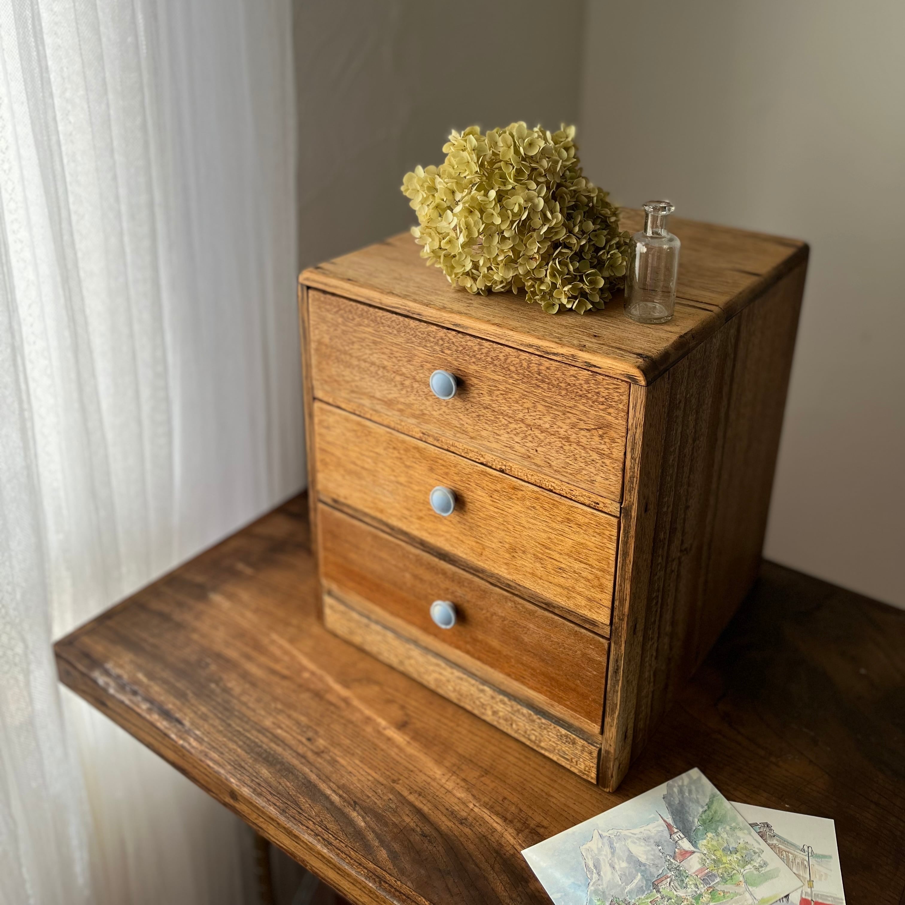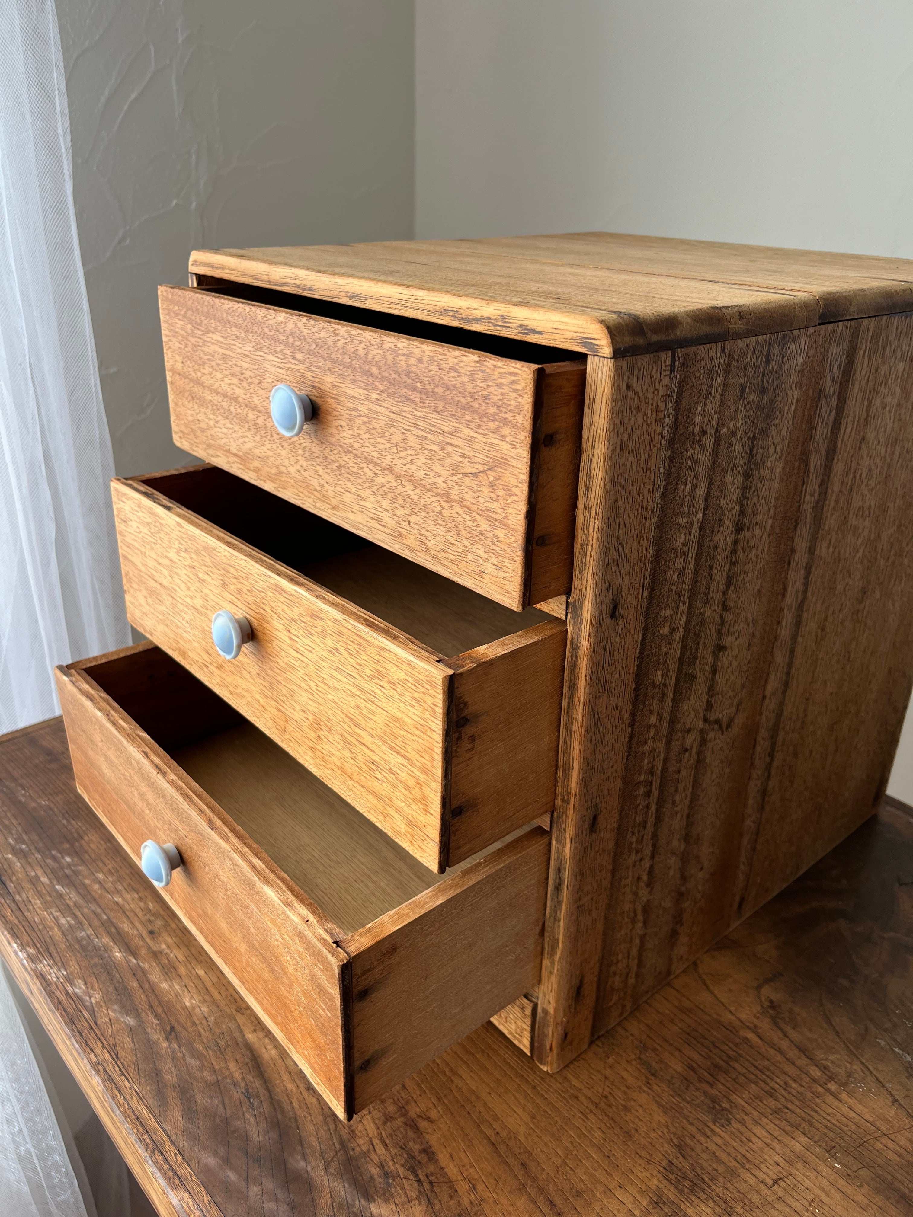 優しい杢目の3段小引出しです。