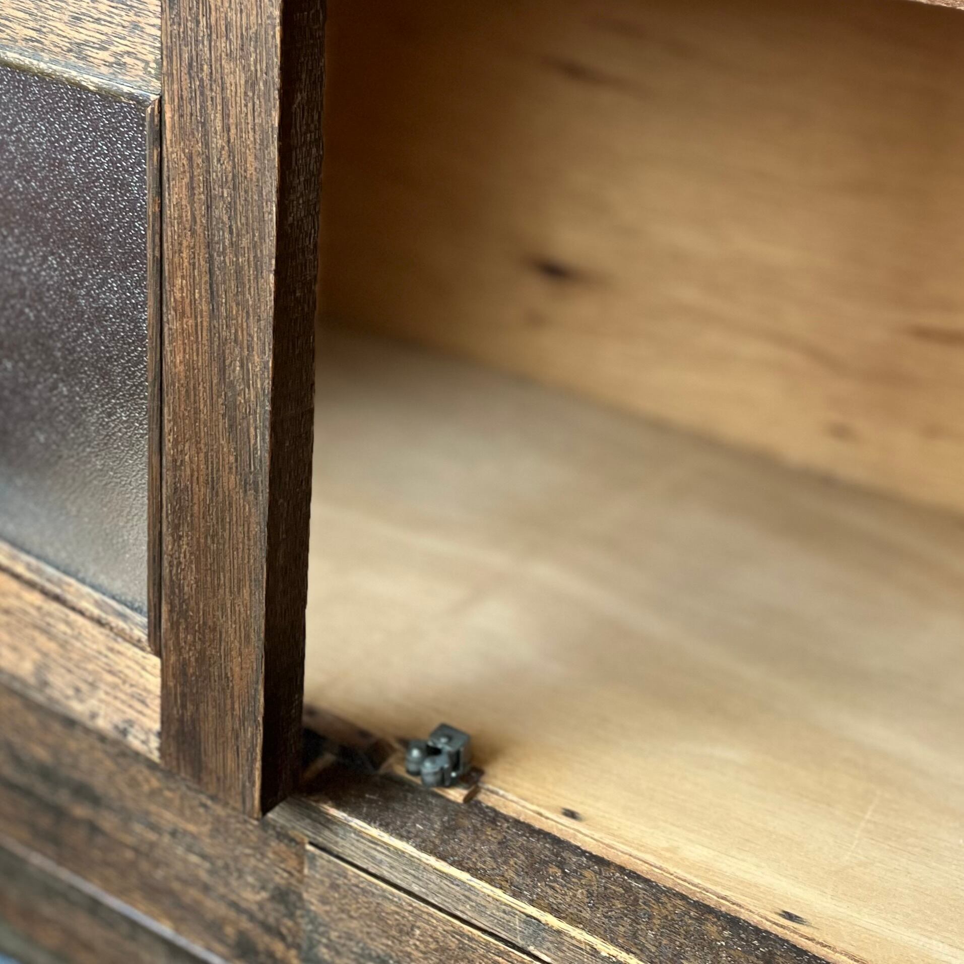 ・引出し2杯は、底のベニヤ板を現代物に張り替えてあります。(画像12枚目)