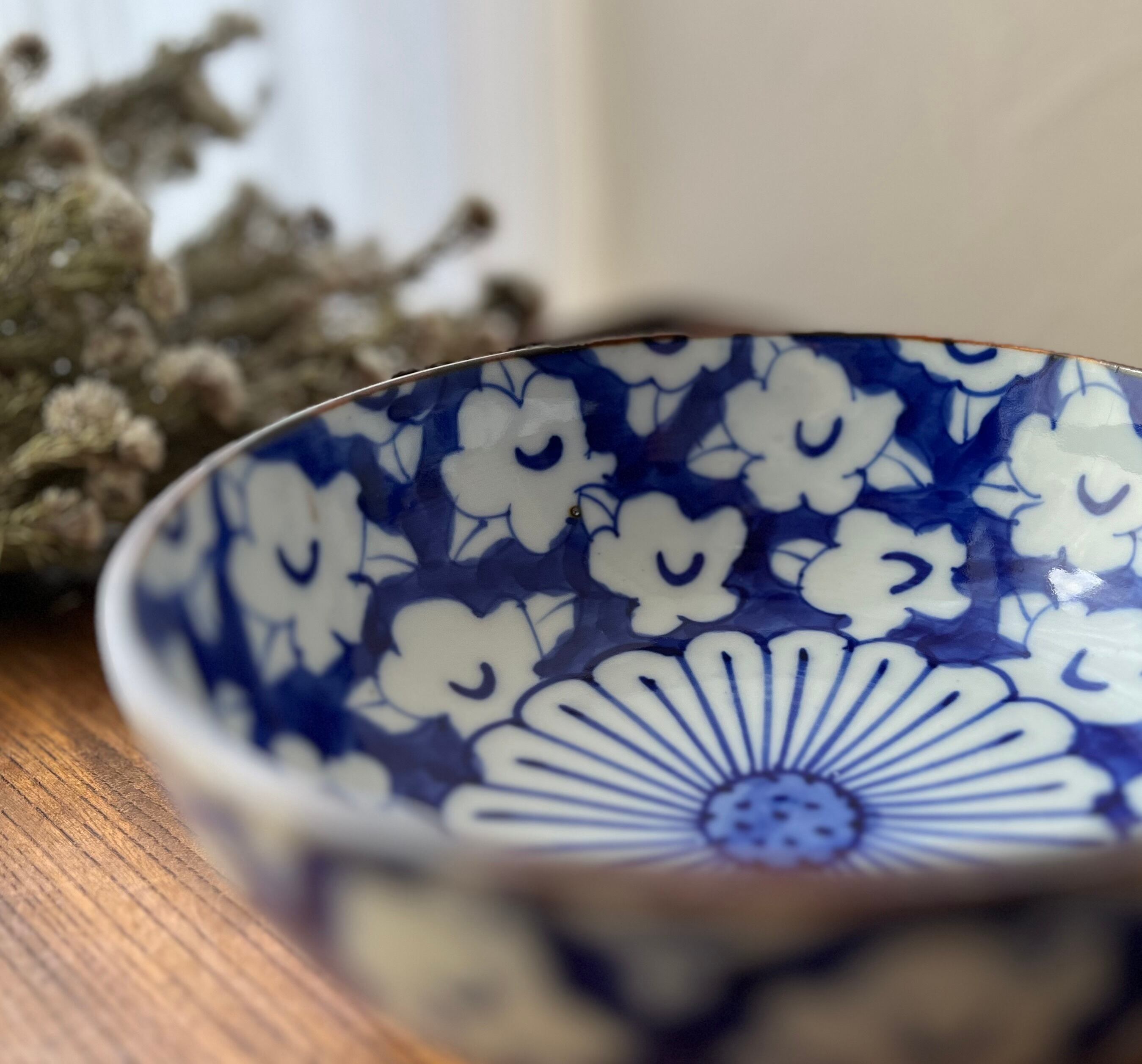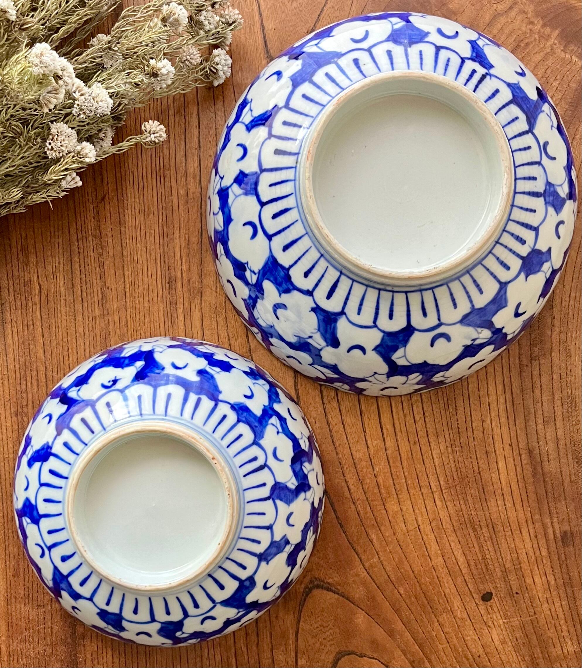 染付鉢 菊花 椿文 大中2サイズセット