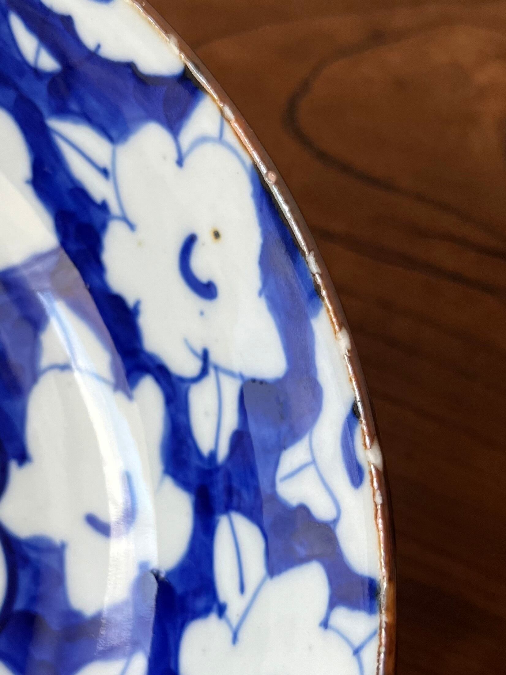 ・染付皿や印判皿は、同じ絵柄でも所々若干色の濃淡や絵柄が違う場合がございます。