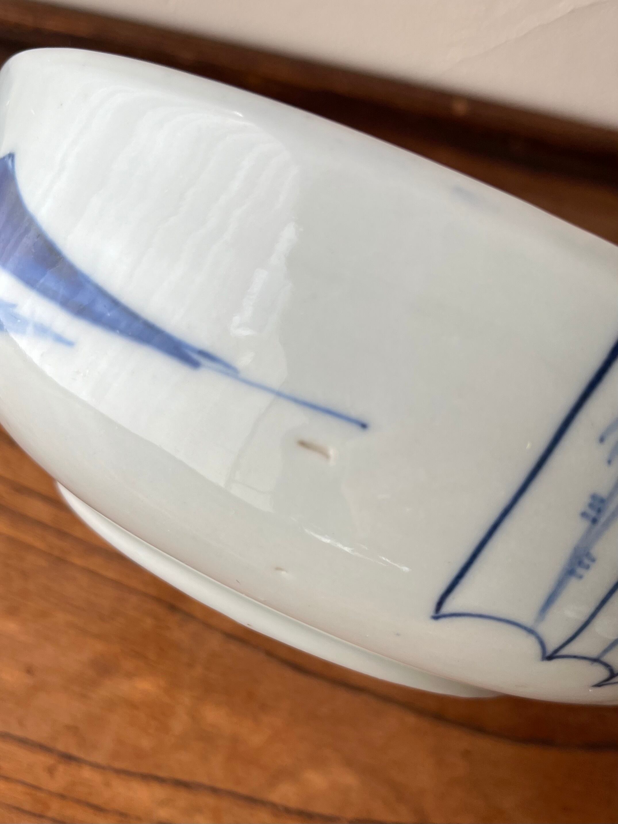 ・手作りの古いものです。窯きず(焼成時にできた傷)、ゆがみ等ございますが、味わい深さ、趣ととらえ楽しんでいただけたらと思います。