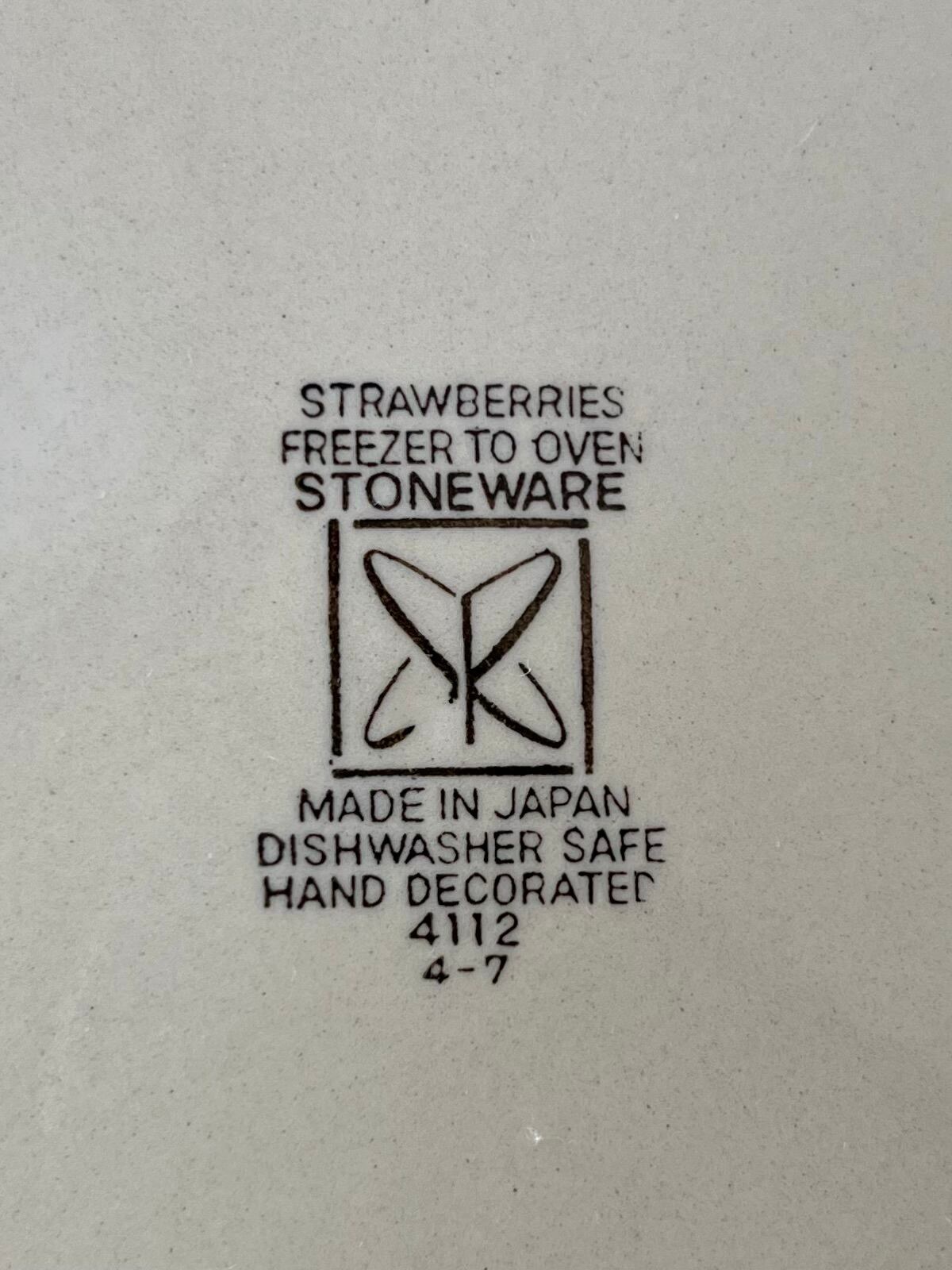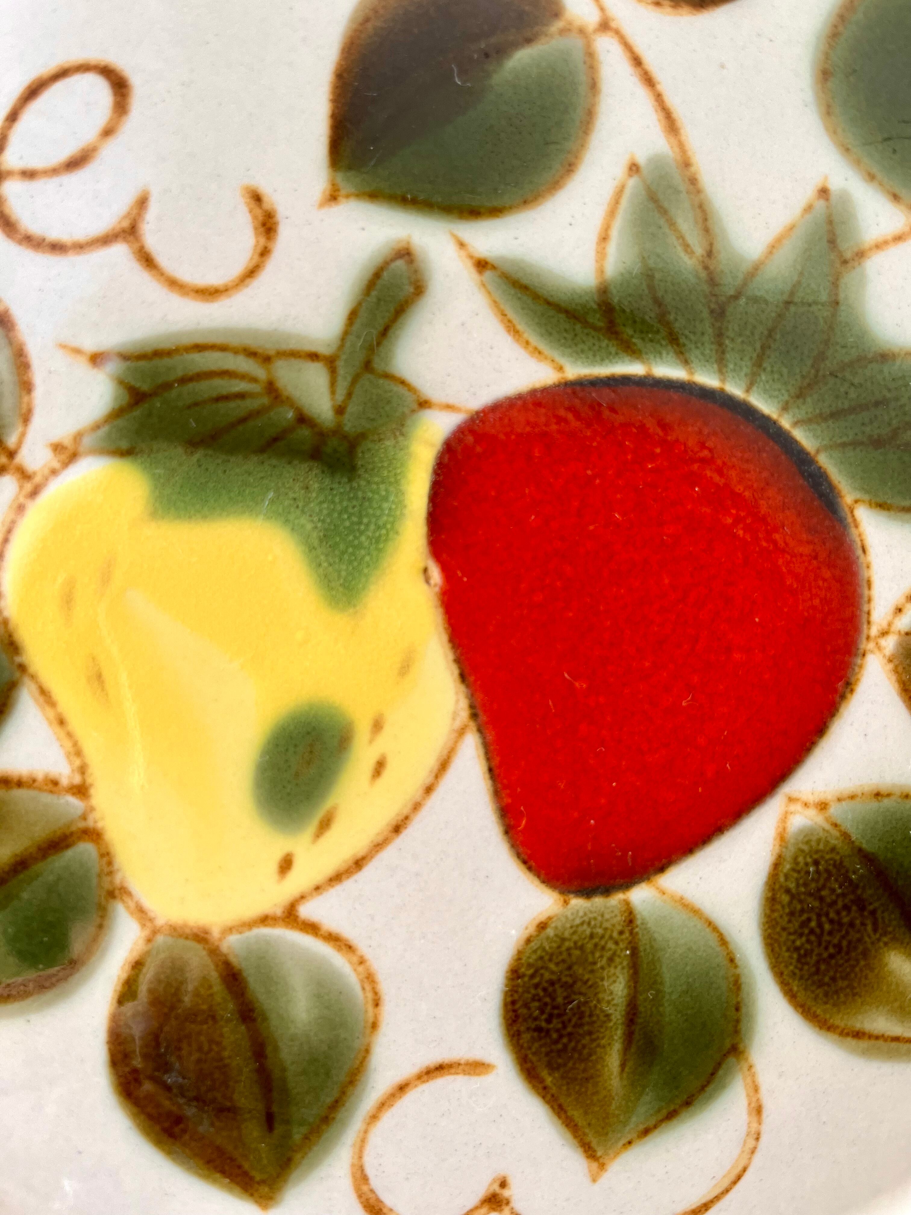 赤と黄色の苺が描かれた27cmのストーンウェア。