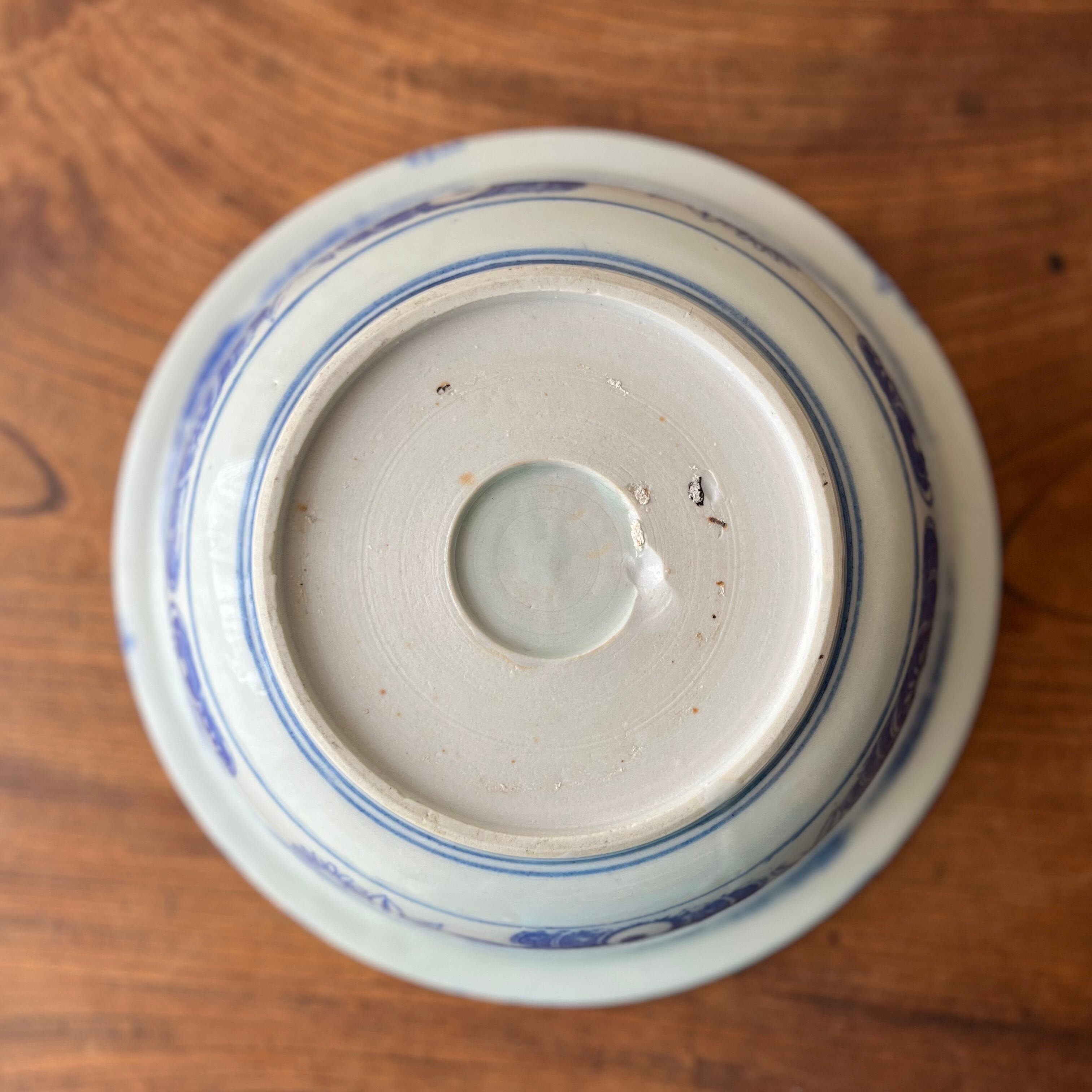 ・印判特有の絵柄のズレや染料の滲み、ムラがございます。
