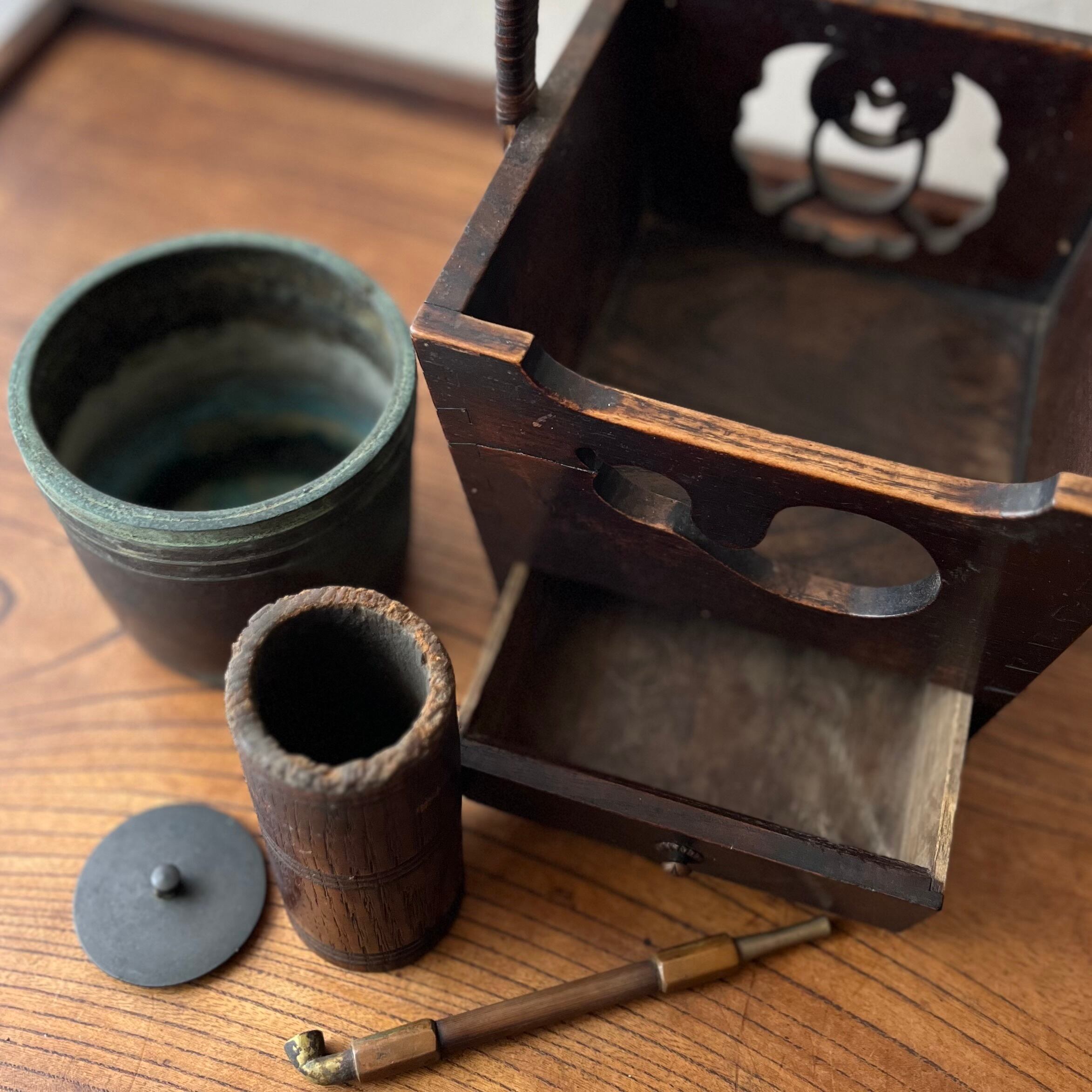味わい深い煙草盆です。