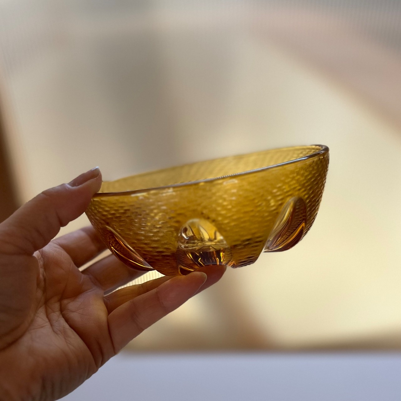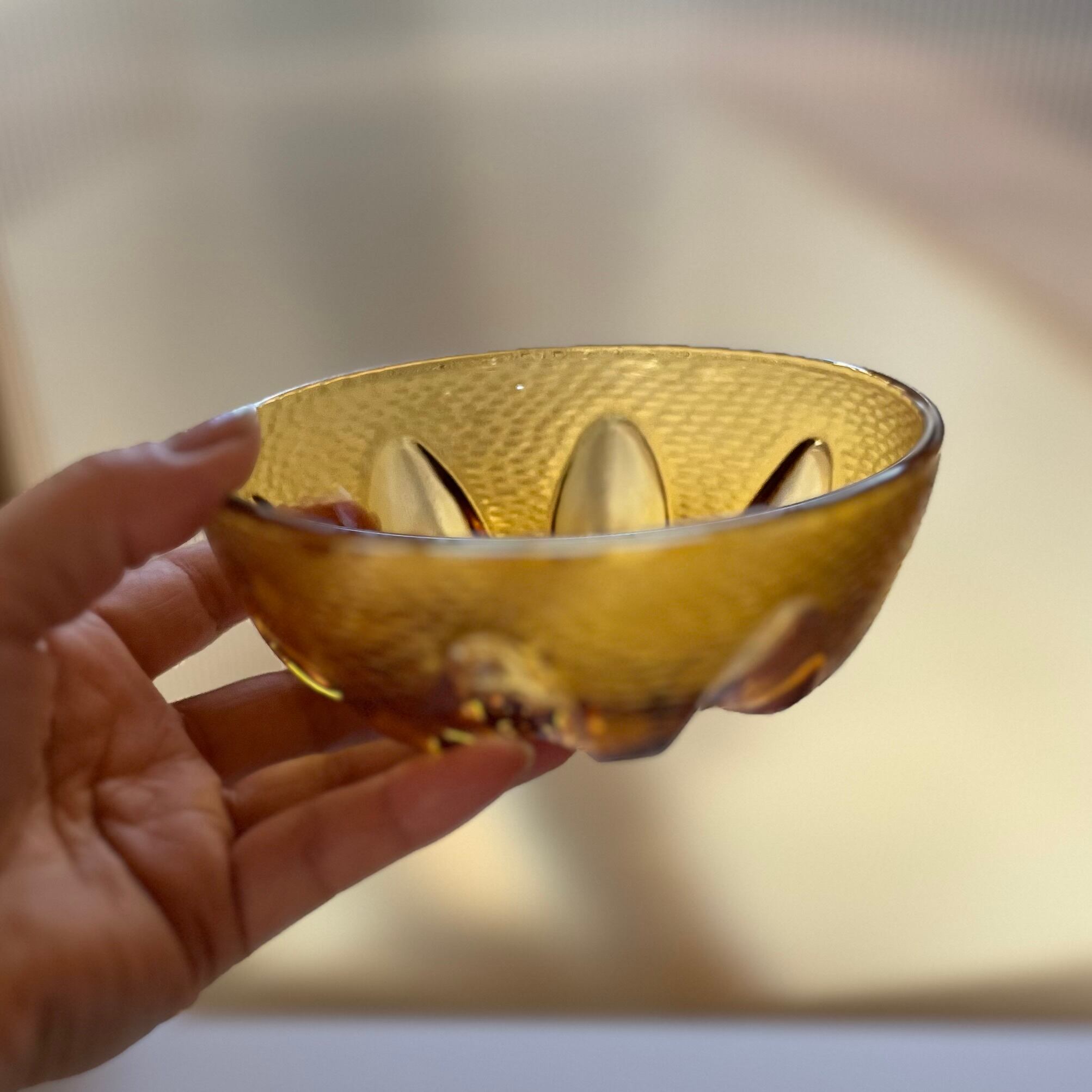 飴色ガラスのデザートボウル。